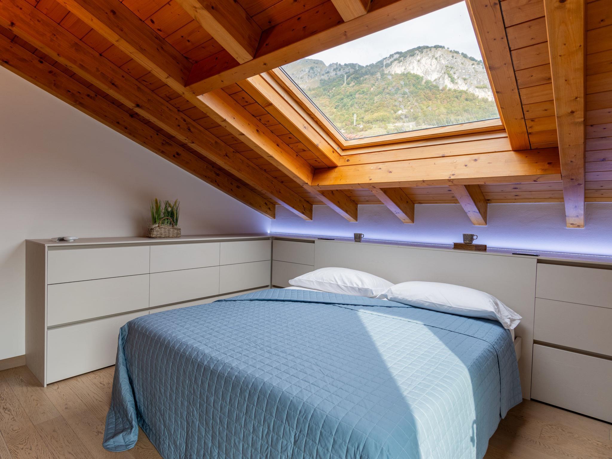 3-room apartment 90 m2, on the upper floor. Spacious and bright, partly with sloping ceilings, comfortable and stylish furnishings: entrance hall. Exit to the balcony. Open living/sleeping room with 1 double sofabed, open-hearth fireplace, TV, satellite TV and digital TV (flat screen), air conditioning. Exit to the balcony. 1 double bedroom with rooflight with air conditioning. 1 room with rooflight, Dressing room with 2 beds and air conditioning. Open kitchen (oven, dishwasher, 4 induction hot plates, toaster, kettle, microwave, freezer, electric coffee machine, Capsules for coffee machine (Nespresso)) with dining table. Exit to the balcony. 2 showers/bidet/WC. Gas heating, air-conditioning, underfloor heating. Heating available only from 15.10. to 15.04. Natural stone floors. 2 large balconies, small balcony, garden. Terrace furniture, balcony furniture, deck chairs (2). Very beautiful panoramic view of the lake and the mountains. Facilities: washing machine, iron, hair dryer. Internet (WiFi, free). Please note: non-smokers only. IT013160C28UUHA8PU