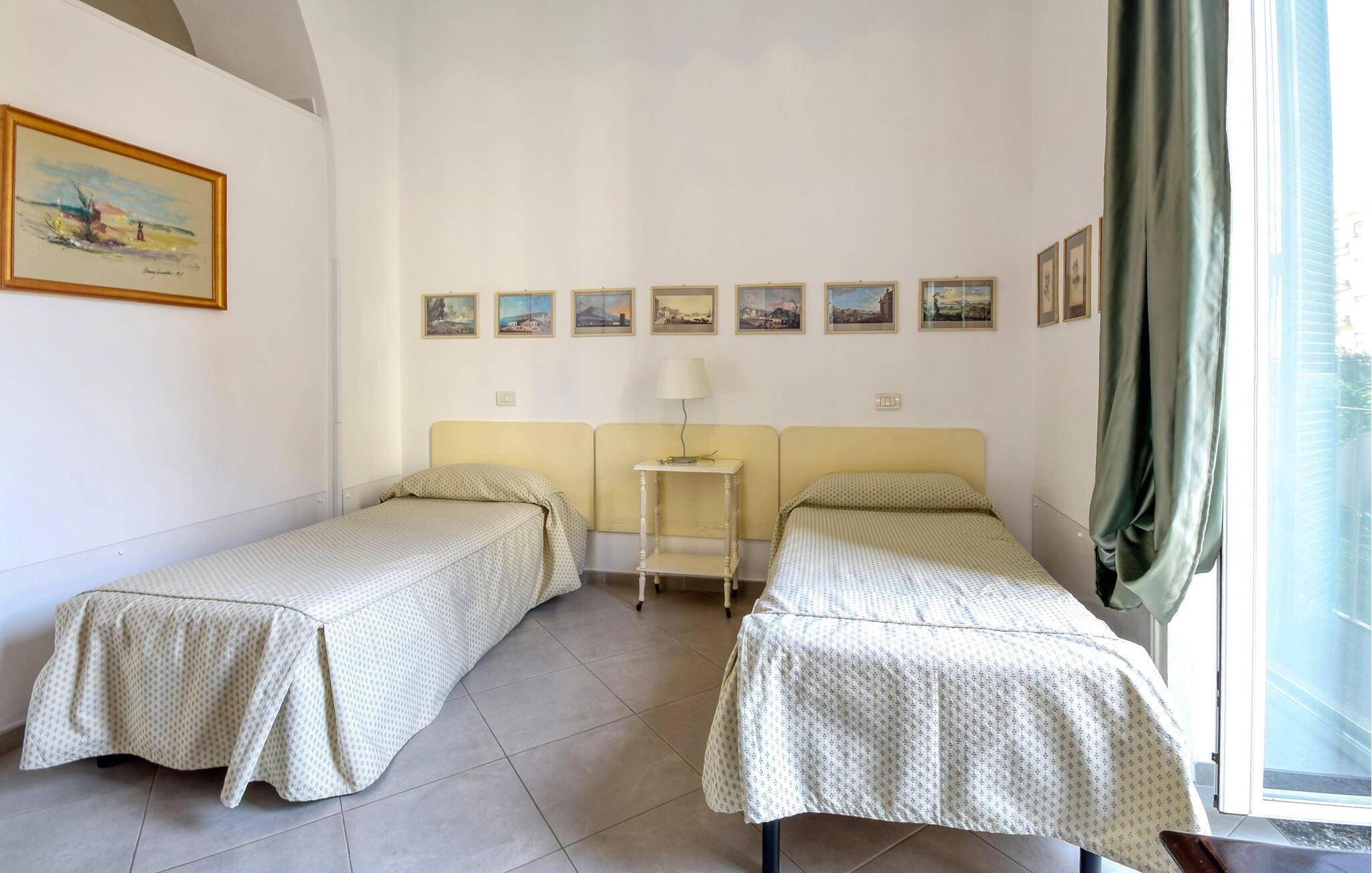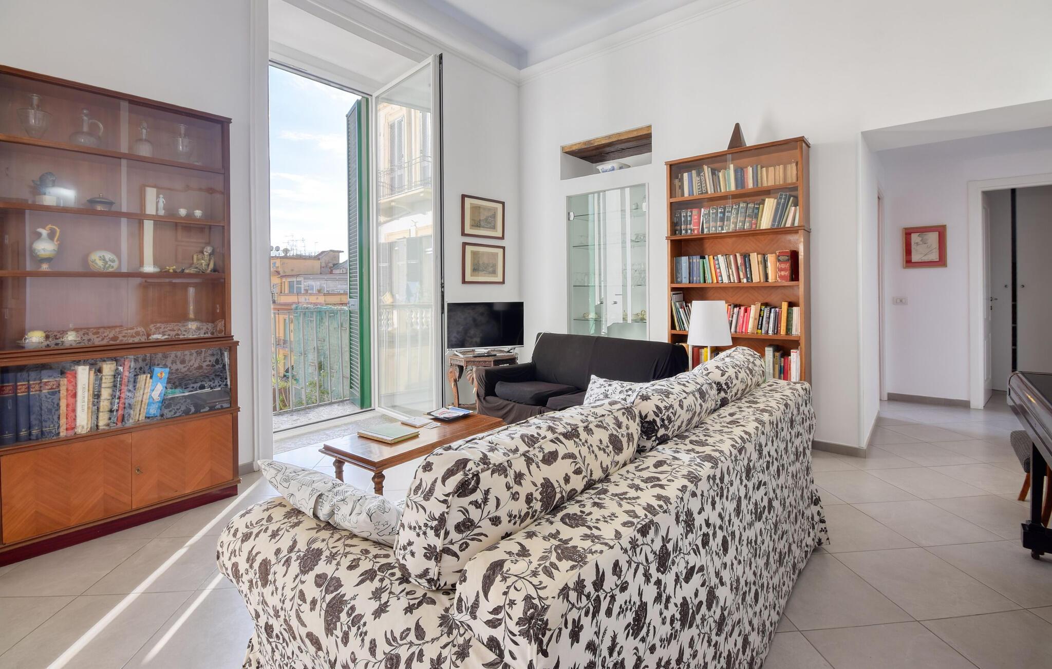 Denne lyse og rummelige ferielejlighed har en smuk udsigt over øen Capri og den gamle bydel. Her er I i gåafstand fra de mange charmerende seværdigheder i denne historiske by. Tryll lækre måltider frem med friske råvarer fra markedet i det moderne køkken, planlæg jeres aktiviteter i fred og ro, og slap af med en god bog i den behagelige sofa efter en lang dag.