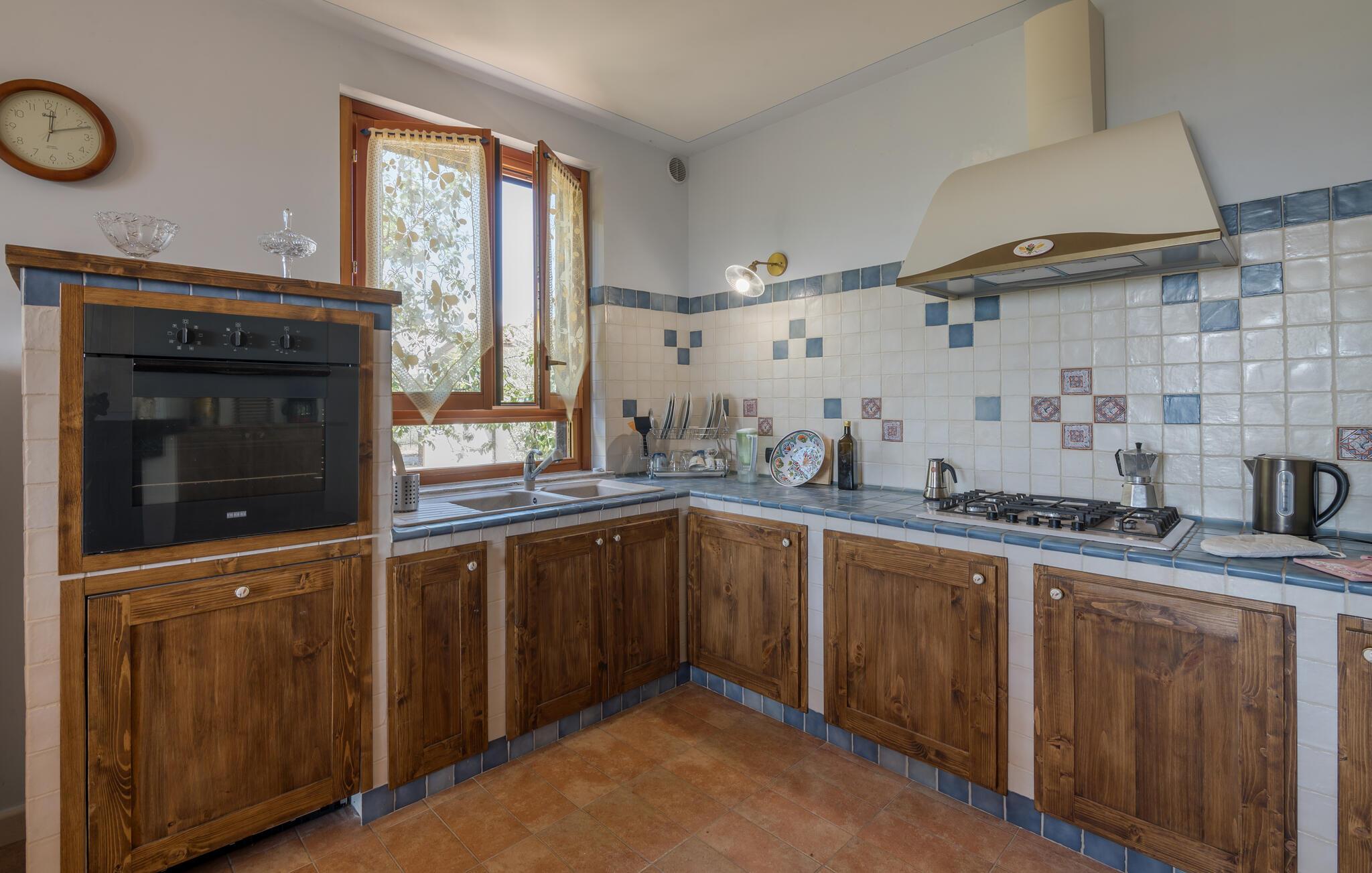 På de varme dage, og dem er der mange af her, kan I nyde solen lige fra morgenstunden på den store veranda. Herfra har I en mageløs udsigt til det smukke landskab, og poolen er lige for jeres fødder for mange friske dukkerter i løbet af dagen. Lad børnene lege frit i haven og nyd det gode vejr, mens I lægger planer for de kommende udflugter.