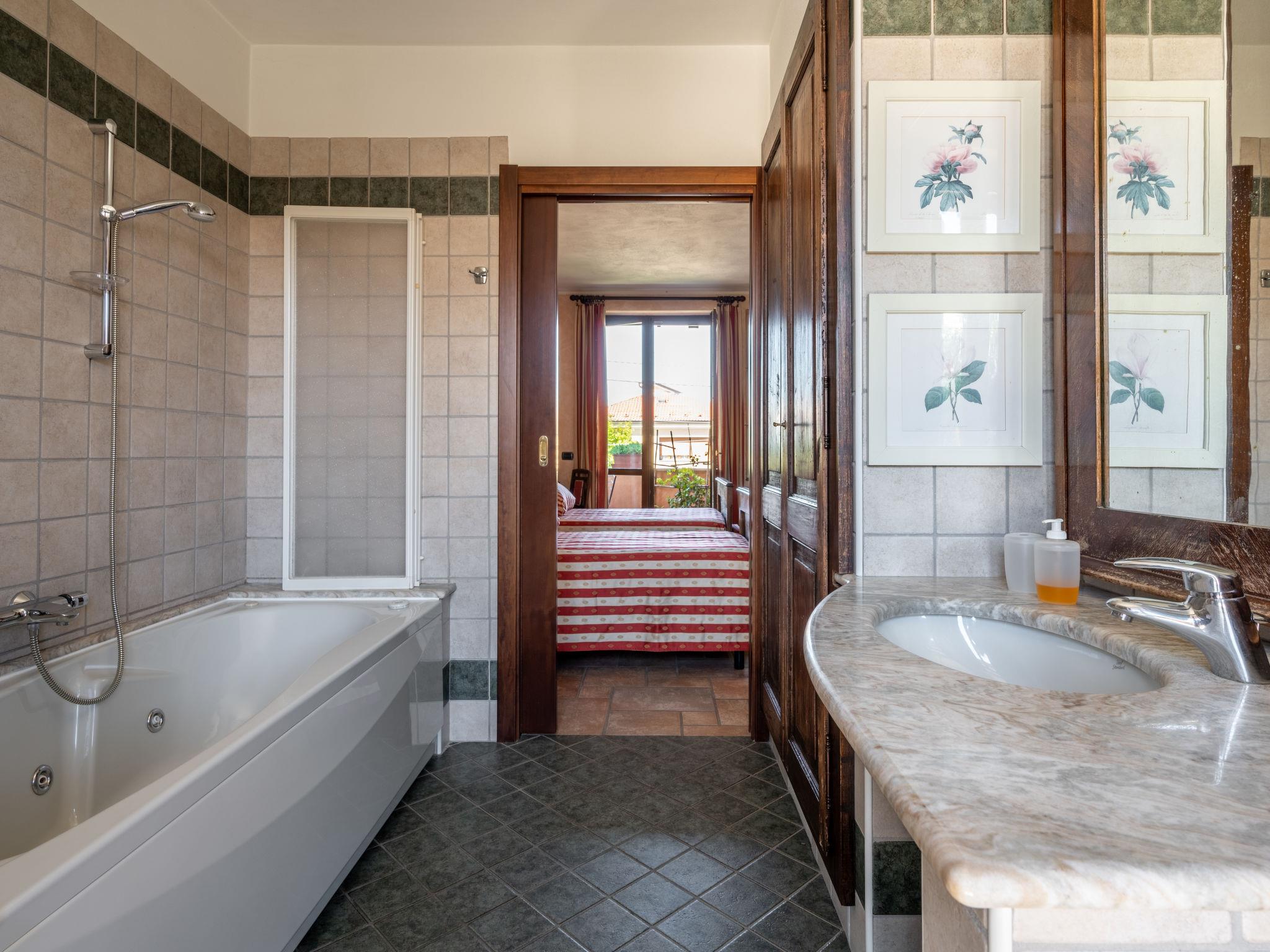 6-room semi-detached house 240 m2 on 2 levels. Comfortable and tasteful furnishings: large living room with open-hearth fireplace, satellite TV, radio, CD-player and hi-fi system. Open dining room with dining table. Exit to the terrace, to the swimming pool. 1 room with 2 beds, shower/WC and satellite TV. Exit to the terrace. Kitchen (oven, 3 gas rings, toaster, kettle, microwave, freezer, electric coffee machine). Exit to the terrace. Sep. WC. Upper floor: 1 room with 2 beds, separate WC, hydro massage bath and satellite TV. Exit to the balcony. 1 room with 2 beds, open-hearth fireplace, shower/WC and satellite TV. Exit to the balcony. 1 room with 1 french bed (160 cm, length 200 cm), shower/WC and satellite TV. Exit to the balcony. Heating, air-conditioning. Heating available only from 01.10. to 30.04. Natural stone floors. 2 balconies, 2 terraces covered. Terrace furniture, balcony furniture, barbecue. Facilities: washing machine, mosquito net, children's high chair, baby cot. Internet (WiFi, free). Please note: non-smoking house. When there are less than the maximum number of guests staying at the property, not all of the bedrooms will be available for use. IT004147B4P8EH5YU2