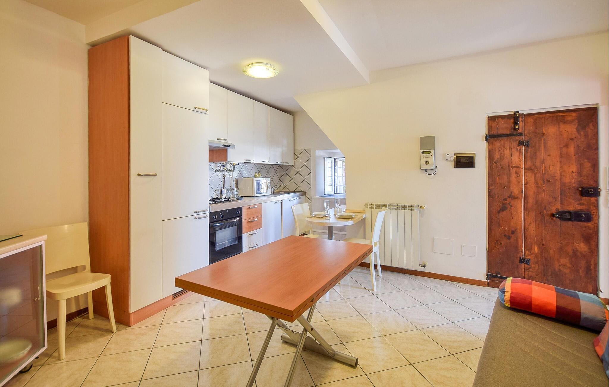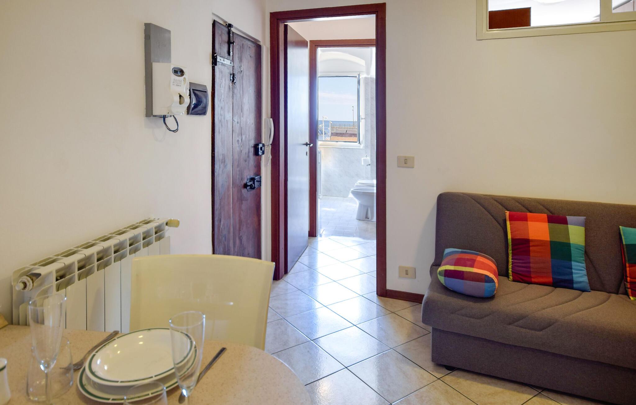 kun nogle få skridt fra Middelhavet tilbyder denne velholdte ferielejlighed jer en komfortabel base for begivenhedsrige dage på den liguriske kyst. Gør nogle lækre ferieretter klar med friske markedsprodukter i det åbne køkken, og brug det indbydende spisebord til at planlægge dagens aktiviteter med et glas vin. Slap af om aftenen i den komfortable sofa og afslut dagen med en bog eller et brætspil.