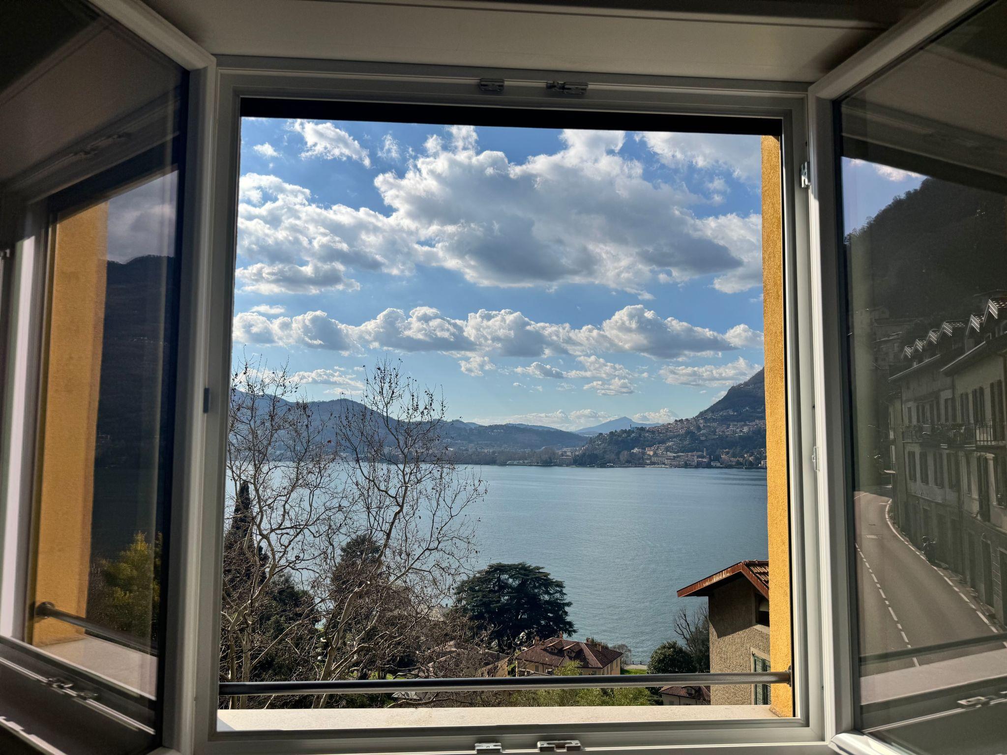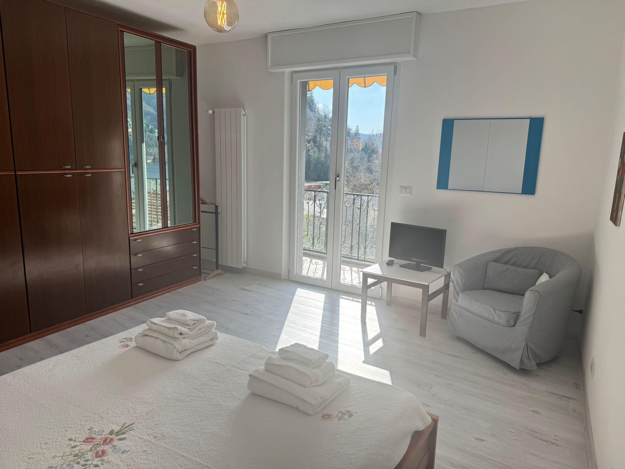 Breva e Tivan is a comfortable and practical flat located in one of the most picturesque and peaceful locations on Lake Como, Blevio. This location offers a spectacular view of the lake and a tranquil atmosphere, ideal for those seeking an elegant and modern retreat, without sacrificing the surrounding natural beauty. L'appartamento è caratterizzato da una zona giorno open space, che include un soggiorno e un angolo cottura. La finestra offre una vista mozzafiato sul lago, che arricchisce l'environment with plenty of natural light. This spacious and bright space is perfect for enjoying moments of relaxation, dinners with friends, or simply admiring the beauty of Lake Como. L'appartamento dispone di due bagni, uno con doccia, entrambi situati in prossimità dell'entrance, for convenient accessibility. Next to the living area, we find a small study area with desk, ideal for those who need a quiet space to work or study, separate from the relaxation area. This area is located next to the master bedroom, and offers an intimate and refined corner. The master bedroom has a private balcony, which offers a panoramic view of the lake, making it the perfect place to relax or enjoy the sunset. Finally, there is a cosy and functional bedroom, ideal for optimising space. In the middle of the room is a single bed, elegant and practical, with a pull-out bed.