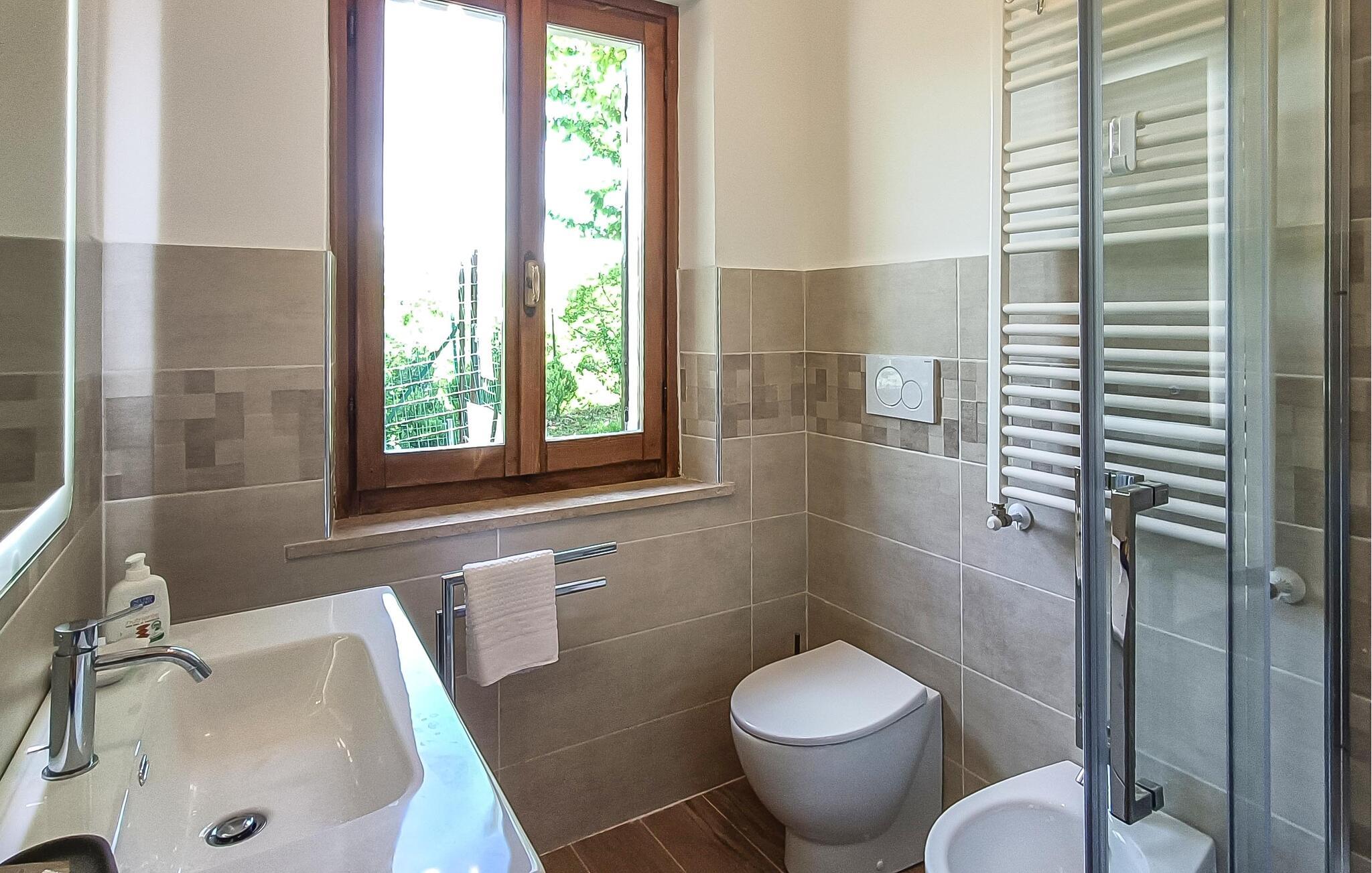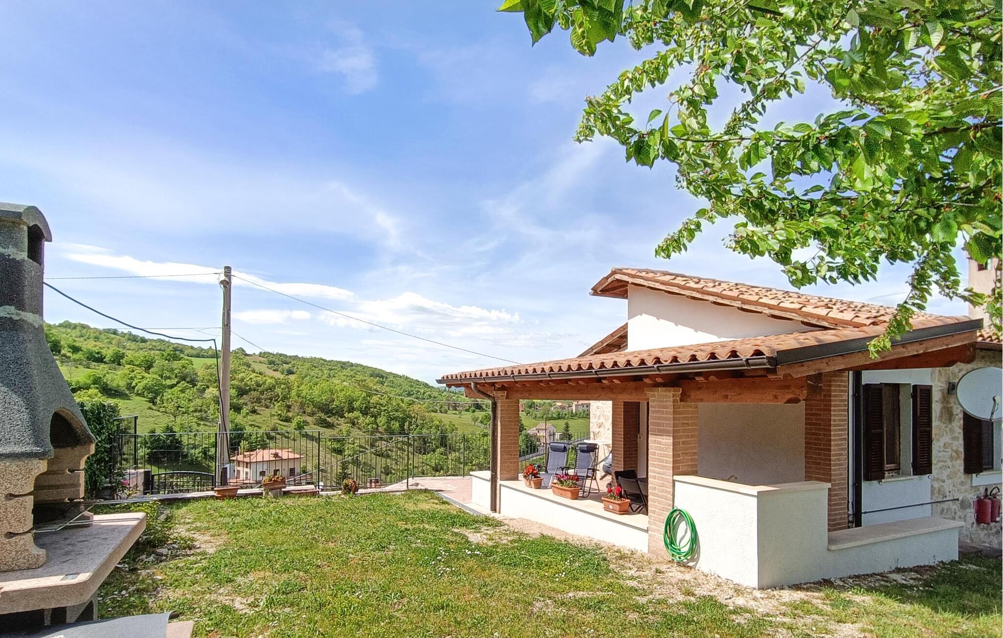 Udendørs finder I en møbleret overdækket terrasse, en have med grill og en spektakulær panoramaudsigt over Sibillini-bjergene. Her kan I tilbringe dejlige stunder sammen med familien og opleve smukke dage i et utroligt landskab. Slap af i solen, spis morgenmad og aftensmad sammen, lær den italienske livsstil lidt bedre at kende og glæd jer til en ubekymret ferie.