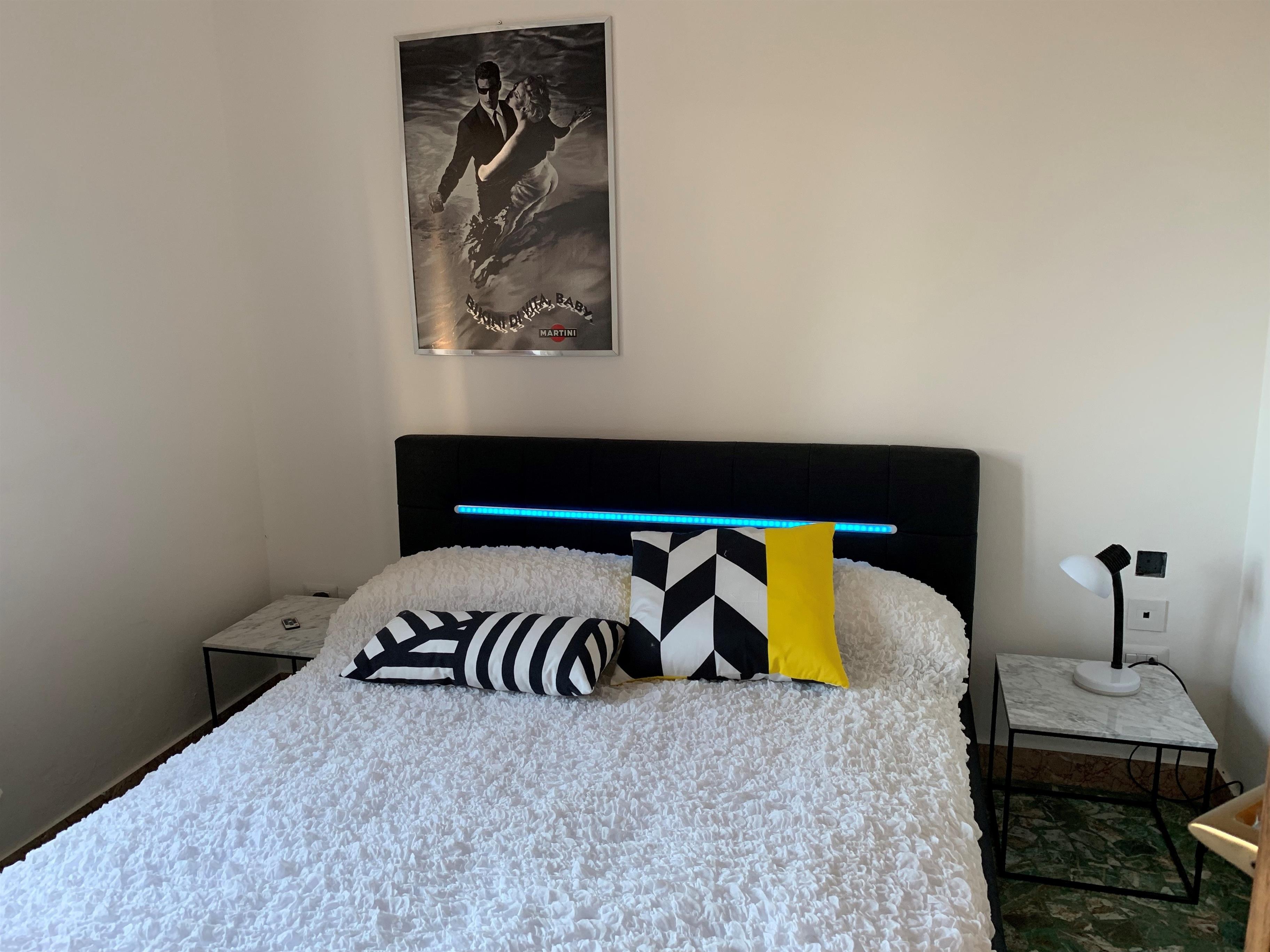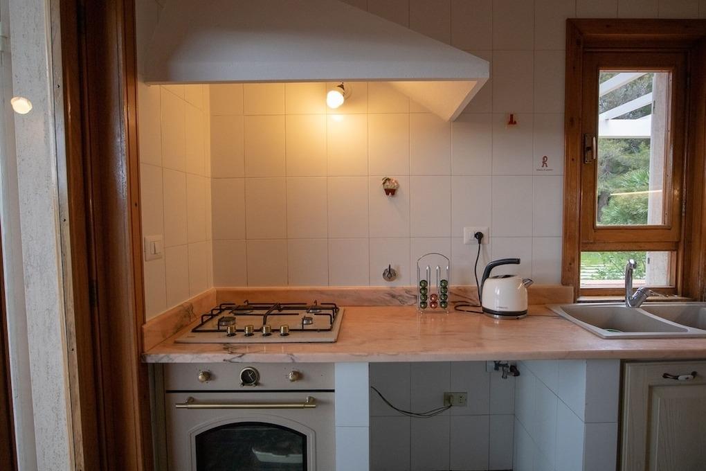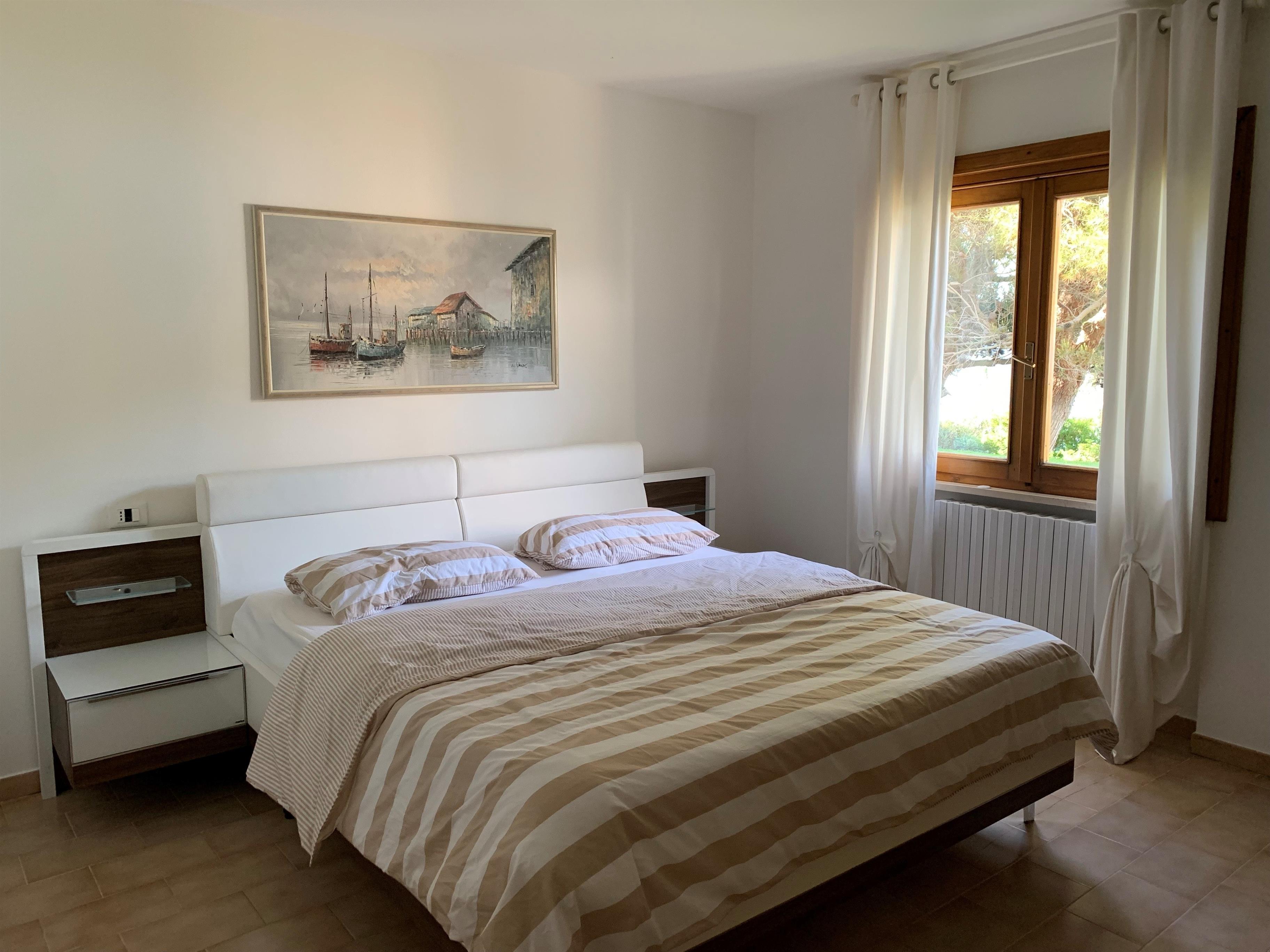 Die Einliegerwohnung mit getrenntem Zugang lädt zur Außenterrasse mit Markise, einer Außendusche und einer Außenküche/Grill. Der Wohnbereich hat die Küche integriert und ist neben einem runden Esstisch auch mit einem Schlafsofa ausgestattet. Das Appartamento verfügt über ein getrenntes Badezimmer und zwei Schlafzimmer mit Doppelbetten.