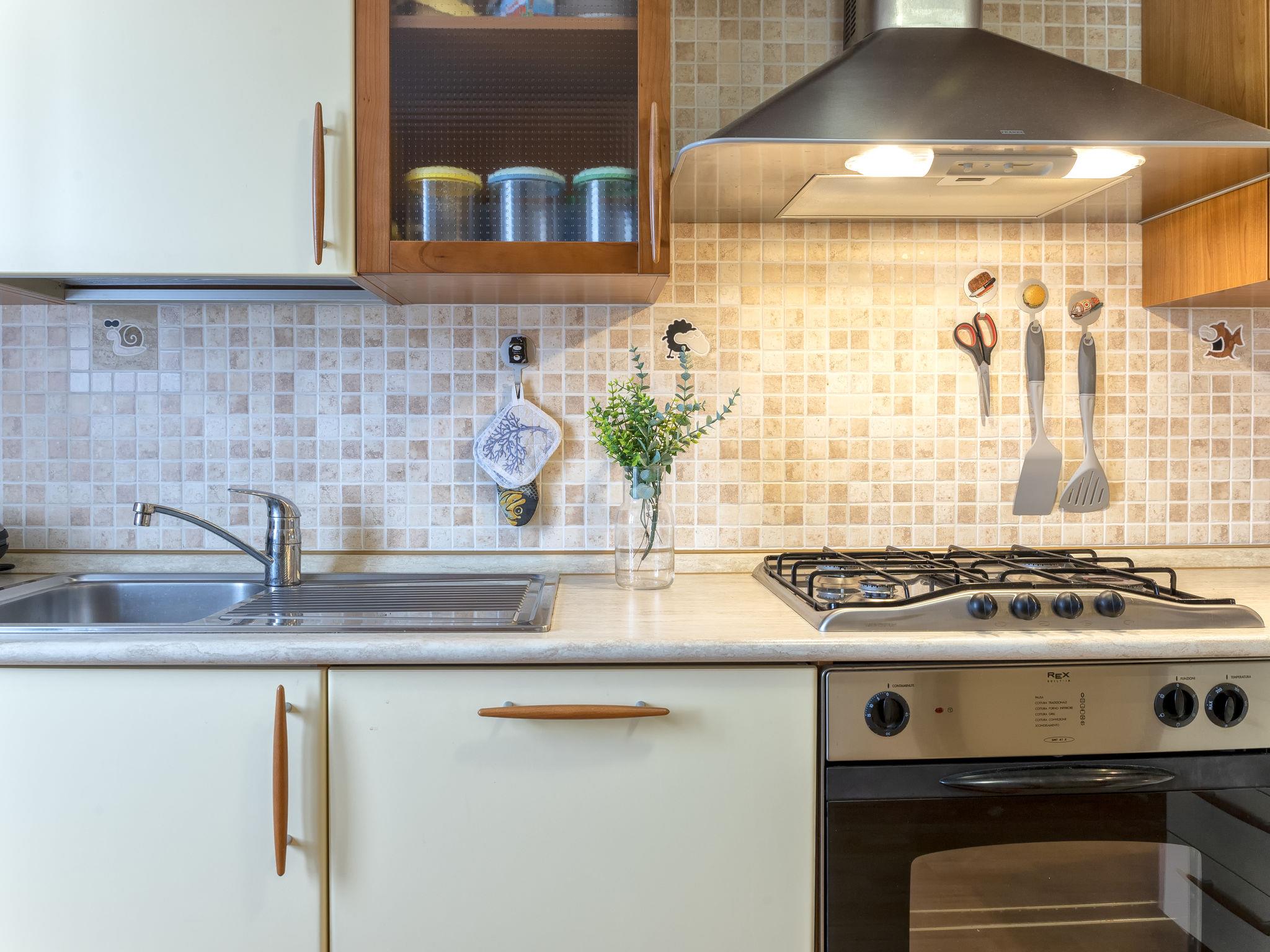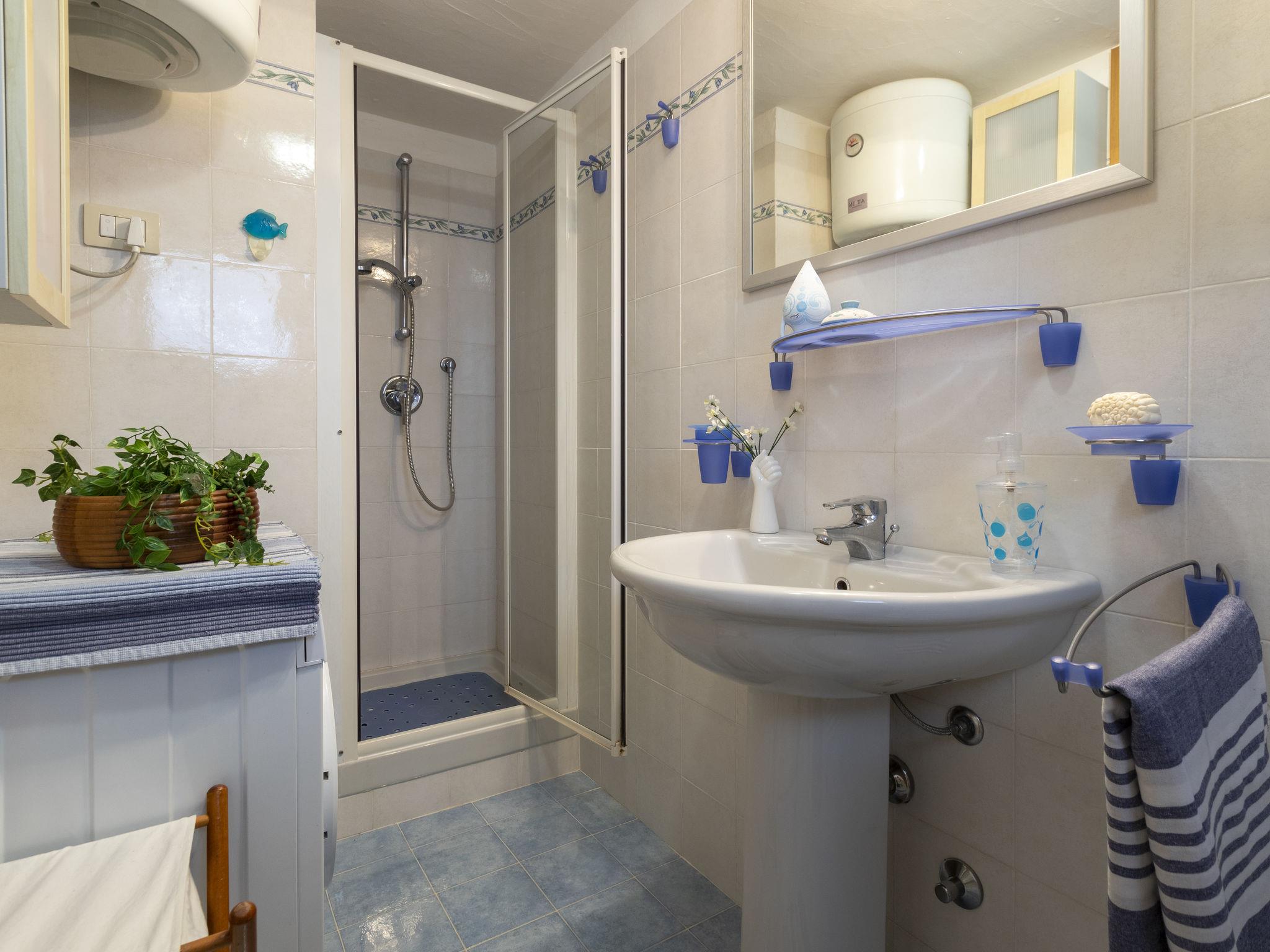 "Le Conchiglie", 1-room terraced house 50 m2 on 2 levels, on the ground floor. Renovated in 2014, comfortable and cosy furnishings: living/dining room with 1 double sofabed, dining table, TV, air conditioning and forced-air heating. Exit to the patio. Gallery with sloping ceilings with 1 double bed. Open kitchen (4 hot plates, oven, dishwasher, toaster, kettle, microwave, freezer, electric coffee machine). Shower/bidet/WC. Boiler (50 litres). Terrace 6 m2. Terrace furniture, barbecue. Facilities: washing machine, iron, hair dryer. Internet (WiFi, free). Parking (1 car). Please note: non-smoking house. Fire extinguisher. Instead of an enclosed bedroom, some sleeping areas are located in an open-plan area (gallery, alcove, etc.). IT090047C2000S4964