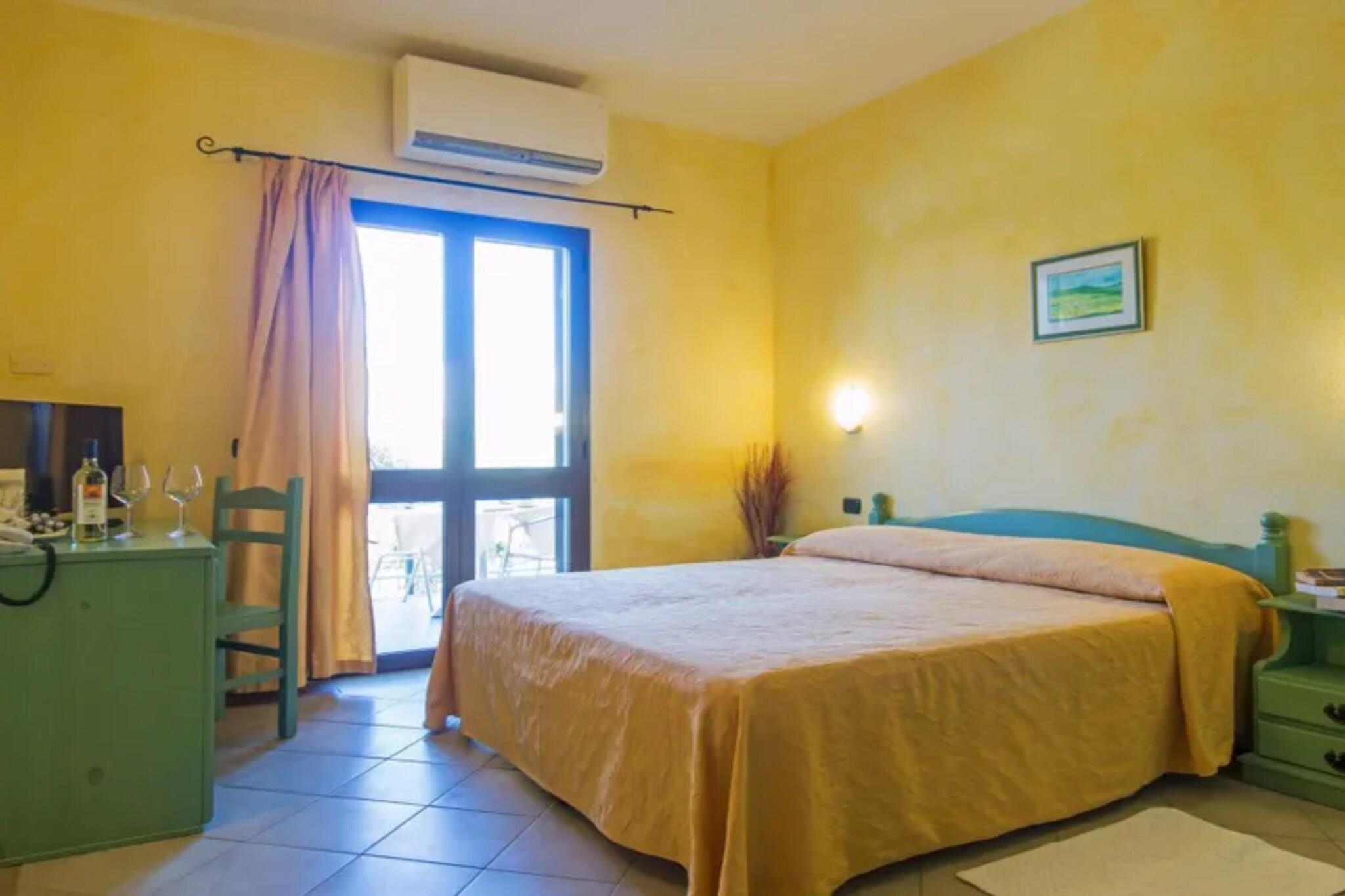 Åbent køkken(spisebord, kogeplade(Komfur med to kogeplader, elektrisk), elkedel, kaffemaskine, mikrobølgeovn, køleskab), Stue/soveværelse(dobbeltseng eller 2 enkeltsenge Senge, Fjernsyn(fladskærm, parabol)), badeværelse(badekar eller bruser, håndvask, toilet, bidet, føntørrer), balkon eller terrasse, varme, klimaanlæg, parkering, swimmingpool(deles med andre gæster, udendørs), Vaskeripakke inkl.