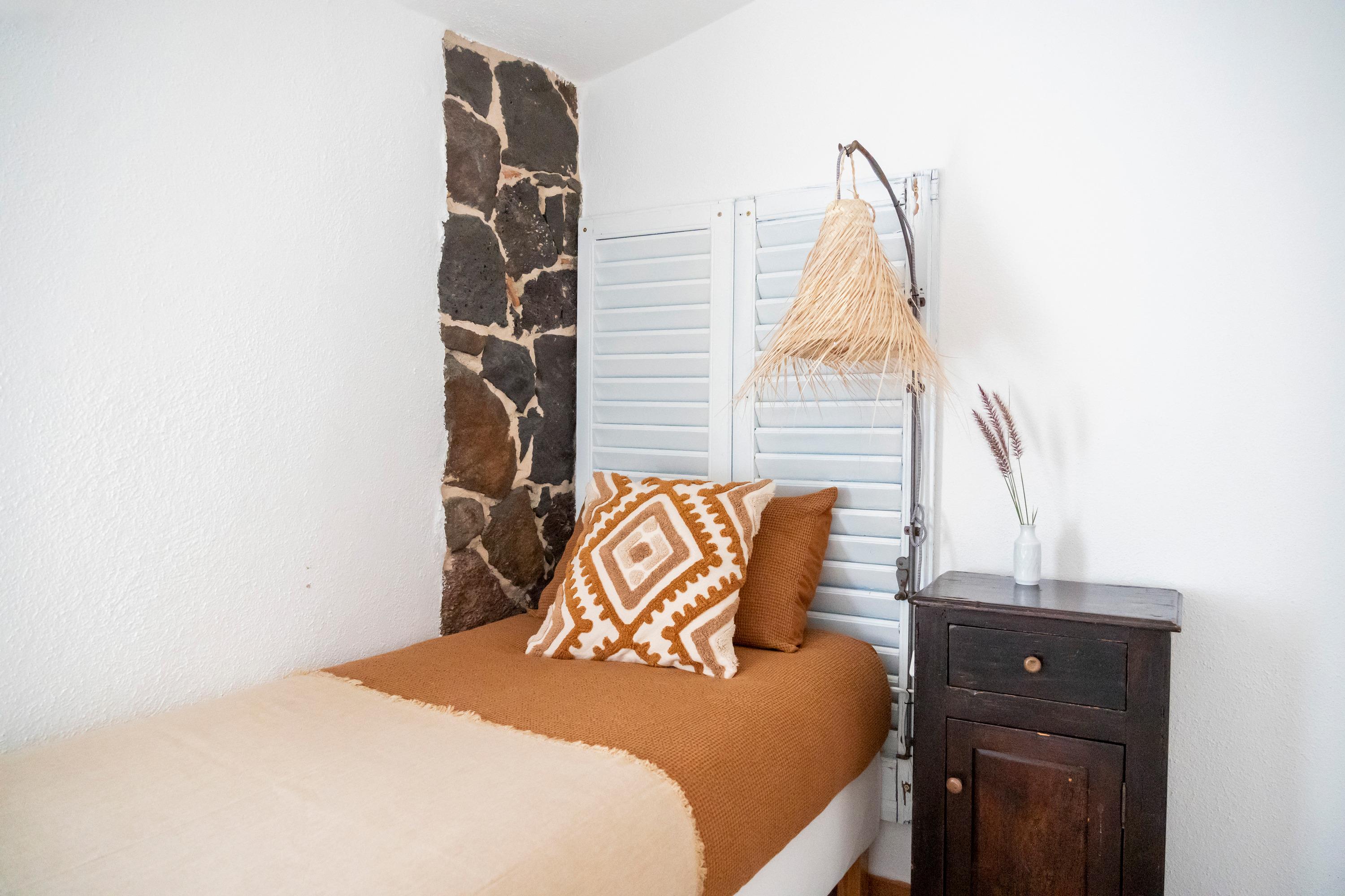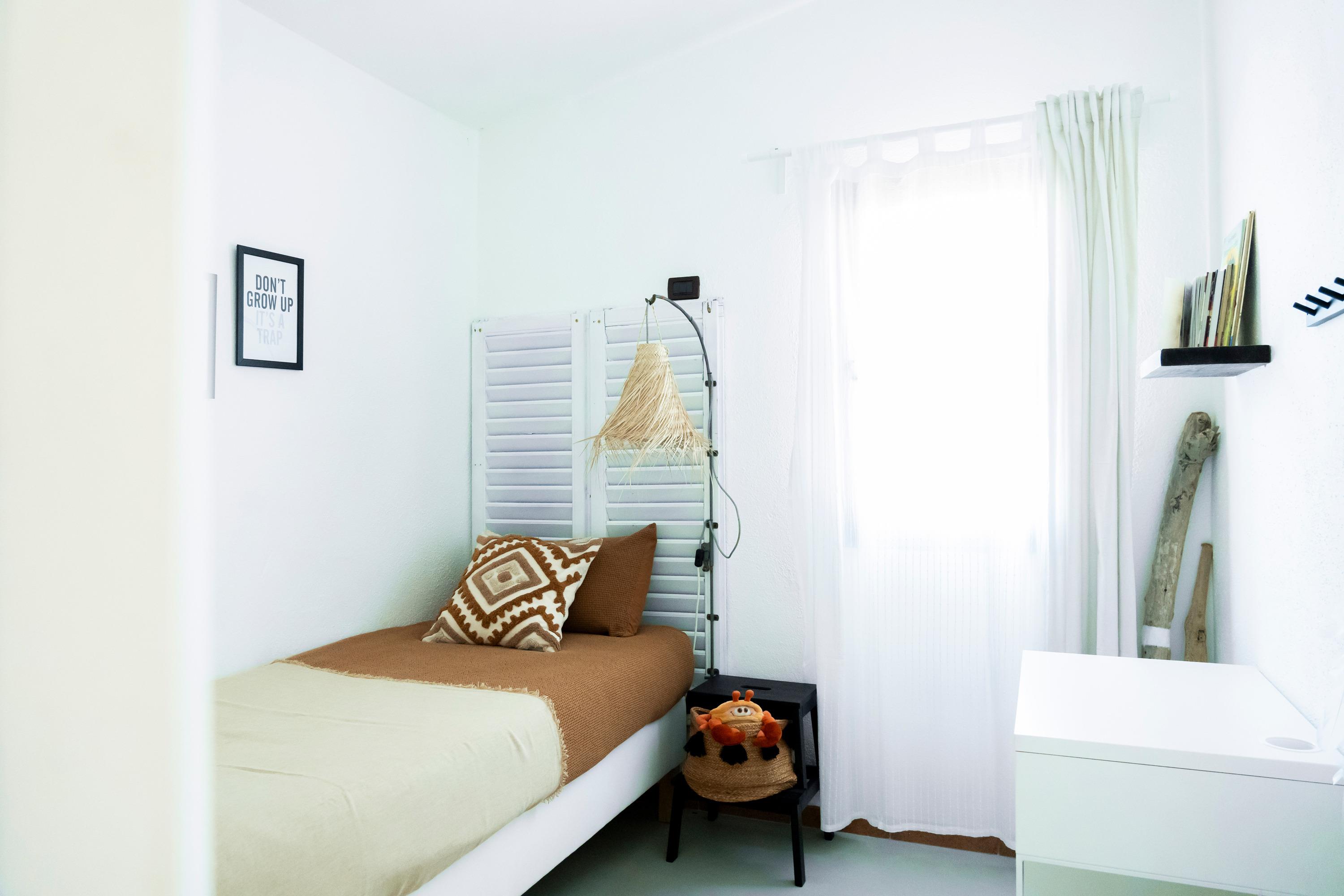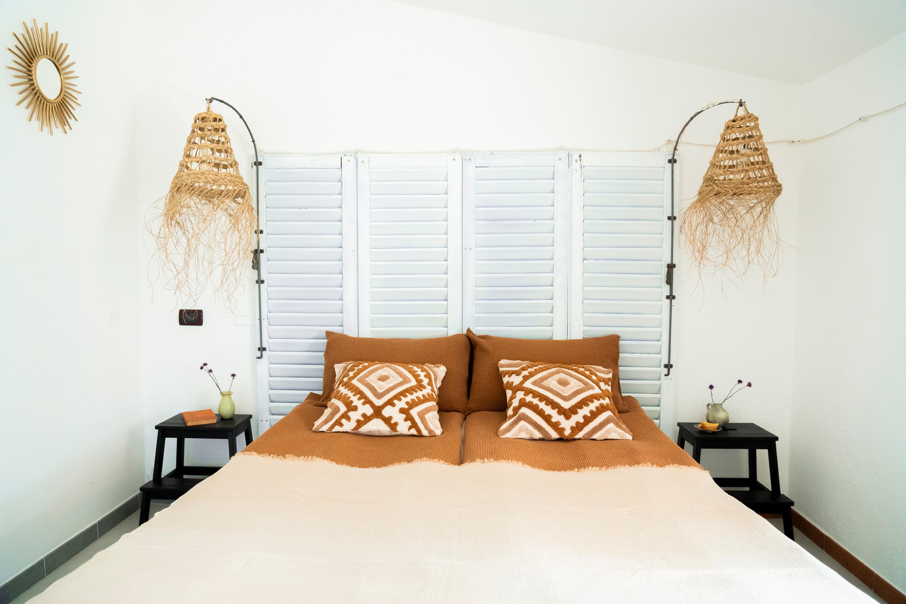 Das Haus eignet sich besonders gut für Familien, die drei Schlafzimmer für bis zu vier Personen benötigen, sowie für Gäste, die Vintage-Chic und eine geräumige Küche schätzen und Naturliebhaber sind. Das Wohnzimmer bietet viel Platz und die beiden Kinderschlafzimmer verfügen jeweils über ein Bett und einen Schreibtisch. Die große Wohnküche mit modernem Tisch und gemauertem Sofa ist der zentrale Raum des Hauses. Das kleinere Badezimmer ist praktisch und modern eingerichtet. Eine überdachte Veranda bietet Schatten zu jeder Tageszeit und hinter den Eukalyptusbäumen kann man das Meer erblicken.