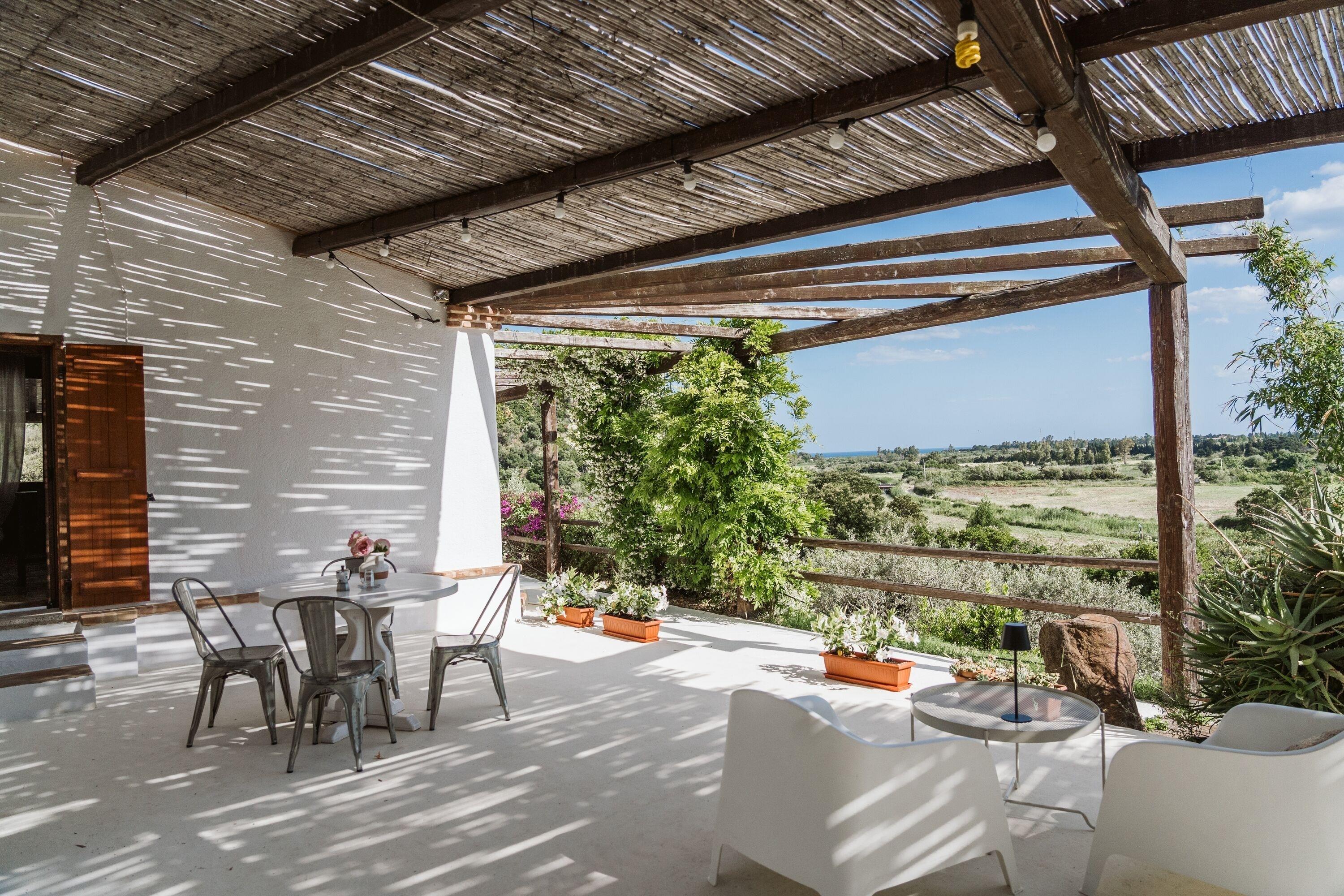 Das Haus CASA FUILE befindet sich an einem wunderschönen Standort mit Blick auf das Meer und die Berge. Es ist besonders geeignet für Familien oder Paare, die Ruhe suchen und die Natur lieben. Der mediterrane Garten ist mit duftenden Rosmarinbüschen und wilden Olivenbäumen bepflanzt. Die Architektur des Hauses ist sehr interessant, da es auf einer Anhöhe inmitten der sardischen Macchia erbaut wurde. Im Garten gibt es viele schattige Plätze, ein gemauertes Barbecue und zwei überdachte Terrassen.