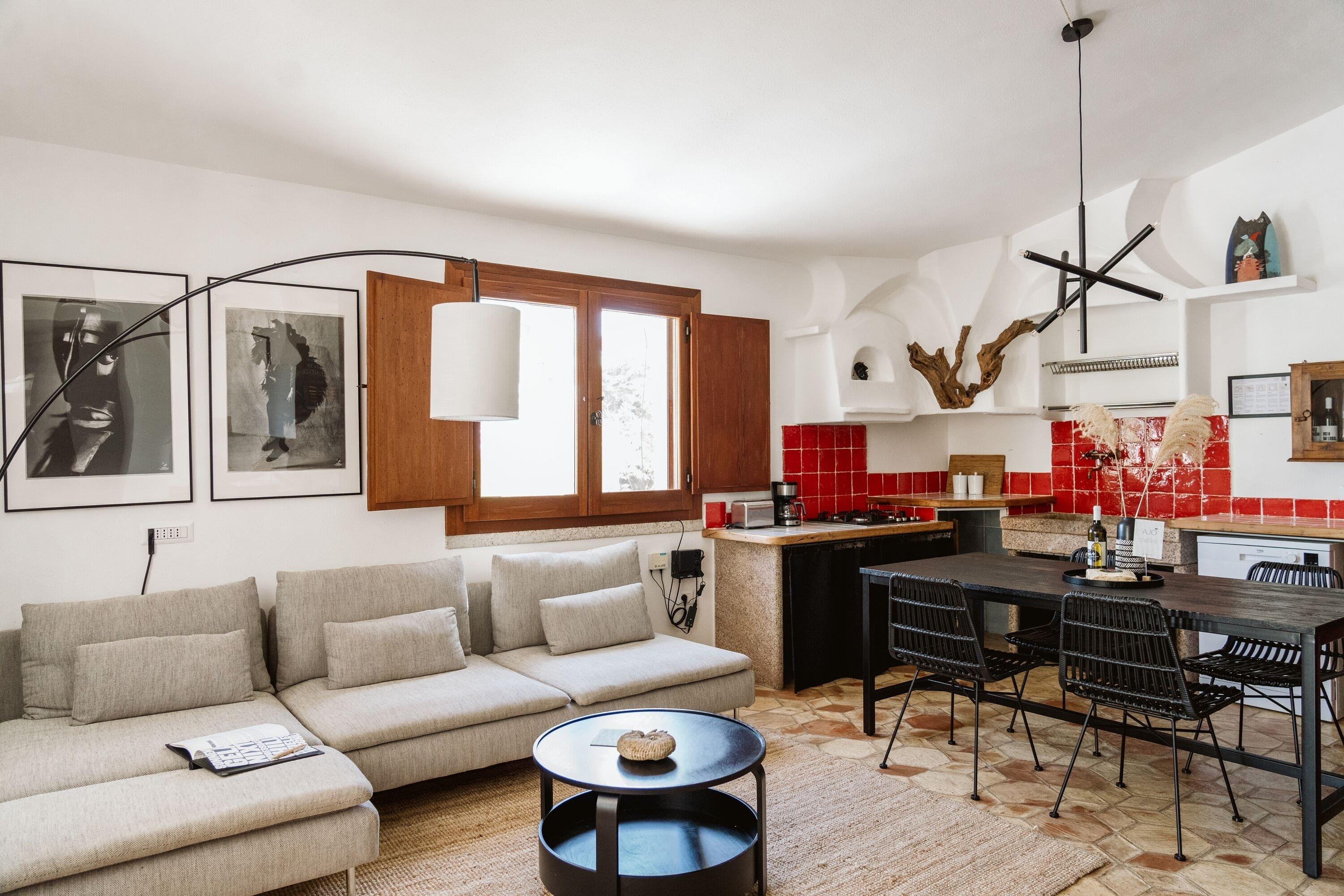 CASA FUILE verfügt über zwei schöne Schlafzimmer und bietet Platz für bis zu 4 Personen. Die gemütliche Wohnküche mit Kamin und Familientisch ist auch in kühleren Monaten ein angenehmer Aufenthaltsort. Durch die große Terrassentür entsteht eine Verbindung zwischen Wohnbereich und dem schattigen Außenbereich. Die handgemauerten Elemente in der Wohnküche verleihen CASA FUILE einen ganz besonderen Charme. Zusätzlich gibt es in jedem Zimmer eine Klima-Heizeinheit. Die Highlights dieser Unterkunft sind der atemberaubende Panoramablick auf das Meer und die Berge, die absolute Ruhe und die typisch sardische Atmosphäre.
