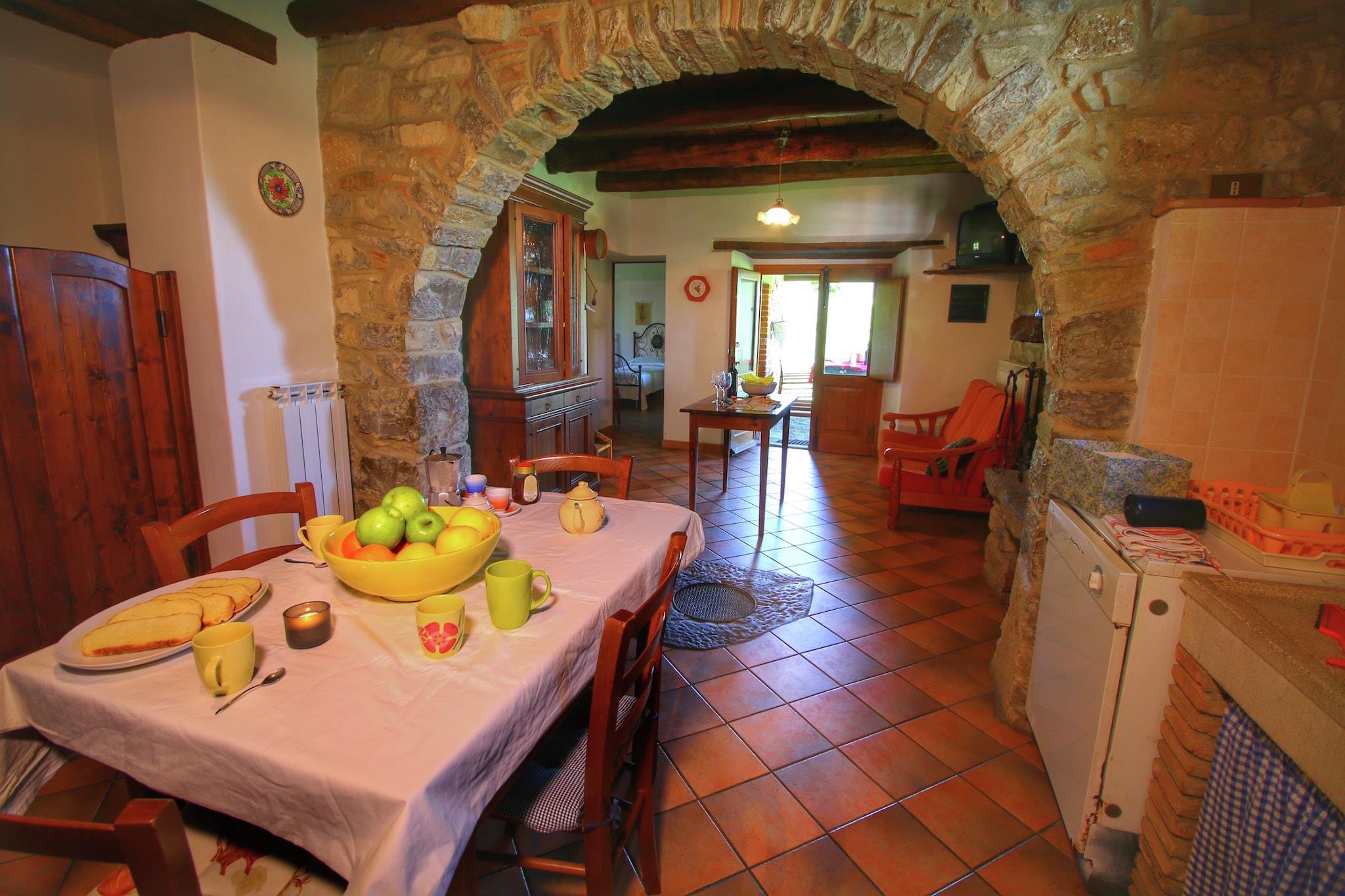Dette kæledyrsvenlige feriehus er en rummelig bondegård med 5 soveværelser, der komfortabelt kan rumme op til 10 gæster. Beliggende i skoven tilbyder det et afslappende oase med en privat swimmingpool og et grillområde, perfekt til at nyde mindeværdige sammenkomster og udendørs måltider. _x000D_ _x000D_ Ideelt beliggende som en base for at udforske Toscana, er ejendommen inden for rækkevidde af kulturelle ture til Firenze, Arezzo og andre charmerende toscanske byer. Grundlæggende forsyninger og spisemuligheder er placeret omkring 3 km væk, mens byens centrum er omkring 8 km fra huset. En nærliggende sø, også omkring 8 km væk, giver mulighed for fritids- og udendørsaktiviteter. Den nærmeste by, Ortignano Raggiolo, ligger kun 3 km væk og kan varmt anbefales til et besøg. For at spise ude, over for slottet i Poppi, finder du en stærkt anbefalet restaurant, der serverer hjemmelavet pasta og toscanske vine - helt klart et besøg værd! Derudover tilbyder Alimentari Ghega Bibbiena et udvalg af lækre, typiske toscanske produkter, perfekt til at bringe en smag af regionen hjem._x000D_ _x000D_ Stuehuset har en privat have, en veranda til udendørs afslapning og et fuldt udstyret moderne åbent køkken til at tilberede lækre måltider. Parkering er tilgængelig på stedet. Interiøret i stuen og soveværelserne er luksuriøst og smagfuldt indrettet, hvilket skaber en varm og indbydende atmosfære._x000D_ _x000D_ Den nærmeste lufthavn ligger cirka 120 km fra ejendommen.