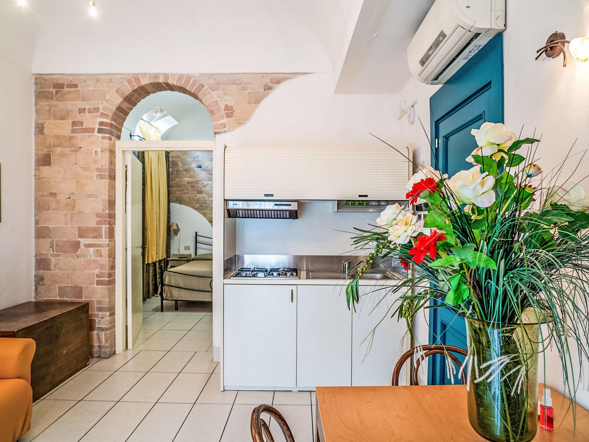 Apartment block. In the centre of Ortona, in a central, quiet, sunny position, 2 km from the sea, 2 km from the beach. Shop 100 m, grocery 200 m, supermarket 300 m, restaurant, bar, pedestrian zone, bicycle rental 200 m, bus stop "Centro" 300 m, railway station "Ortona FS" 1 km, sandy beach 4 km. Nearby attractions: Museo 300 m, Castello Aragonese 500 m, Costa dei Trabocchi 10 km. Please note: Loading and unloading of baggage is possible at the holiday house. The owner lives in the same residence. Airfield 33 km from the property.