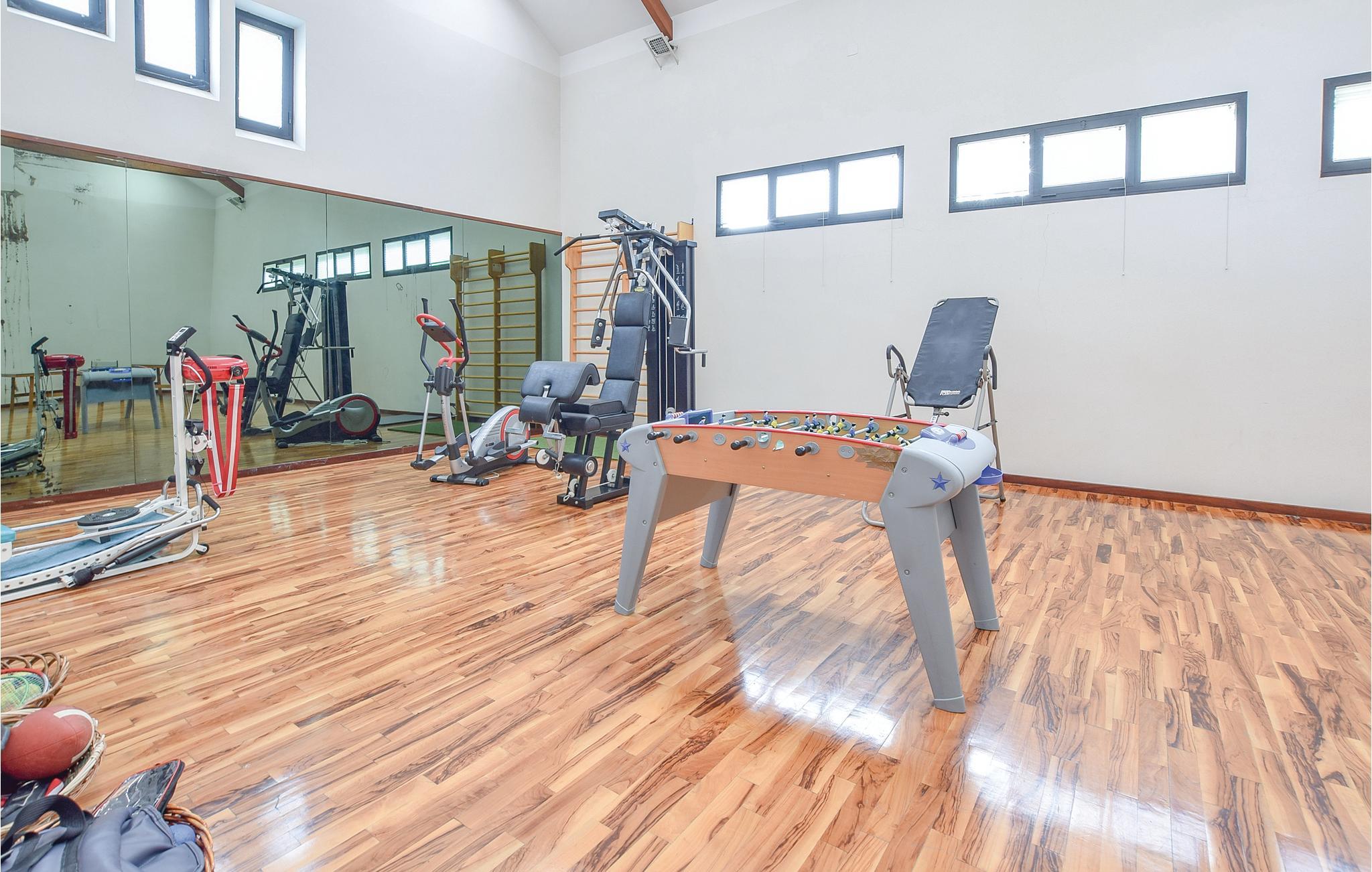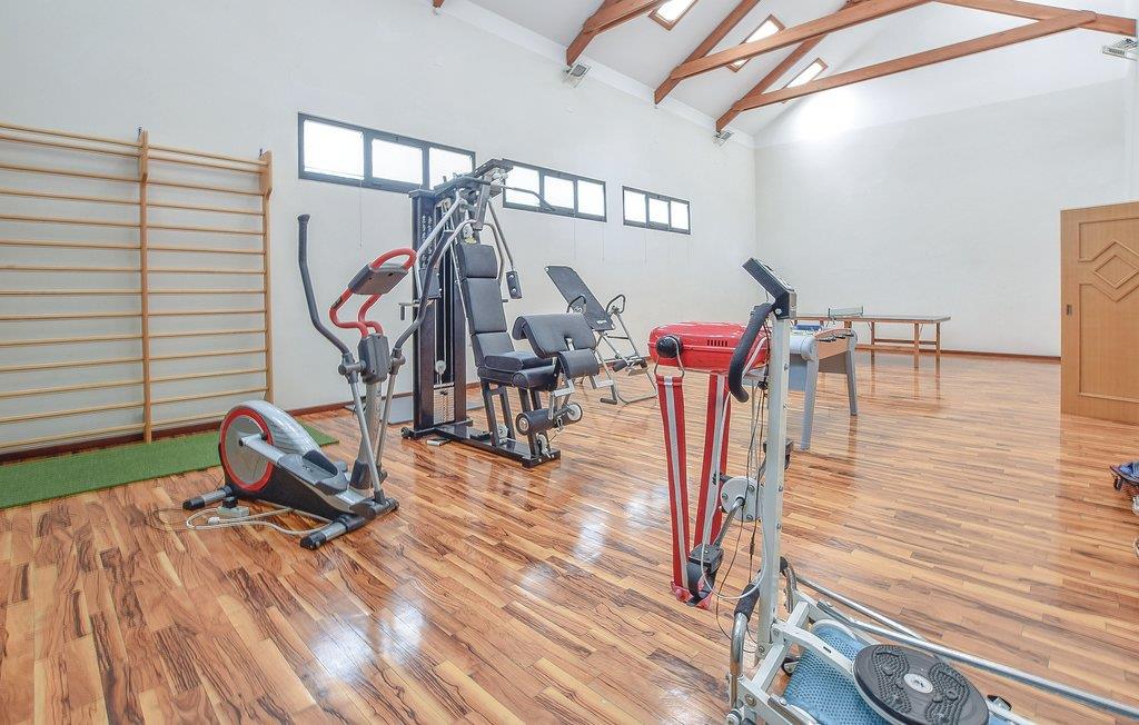 Feriehuset er fordelt på fire etager og rummer bl.a. en stor whirlpool og en finsk sauna. I underetagen er der fitnessredskaber og forskelligt legetøj.