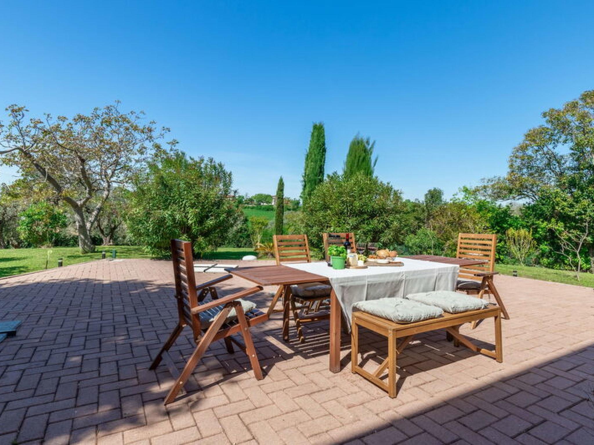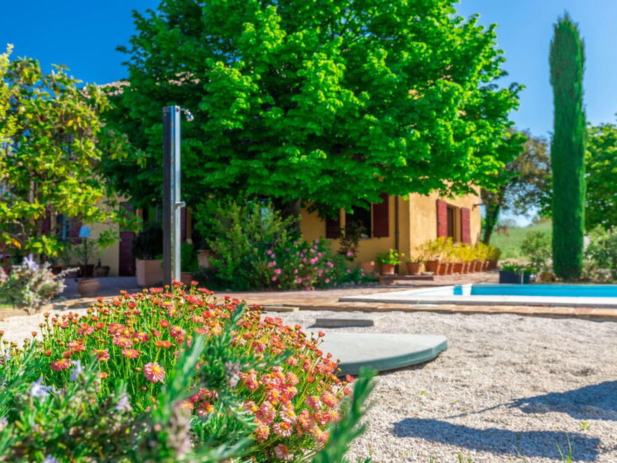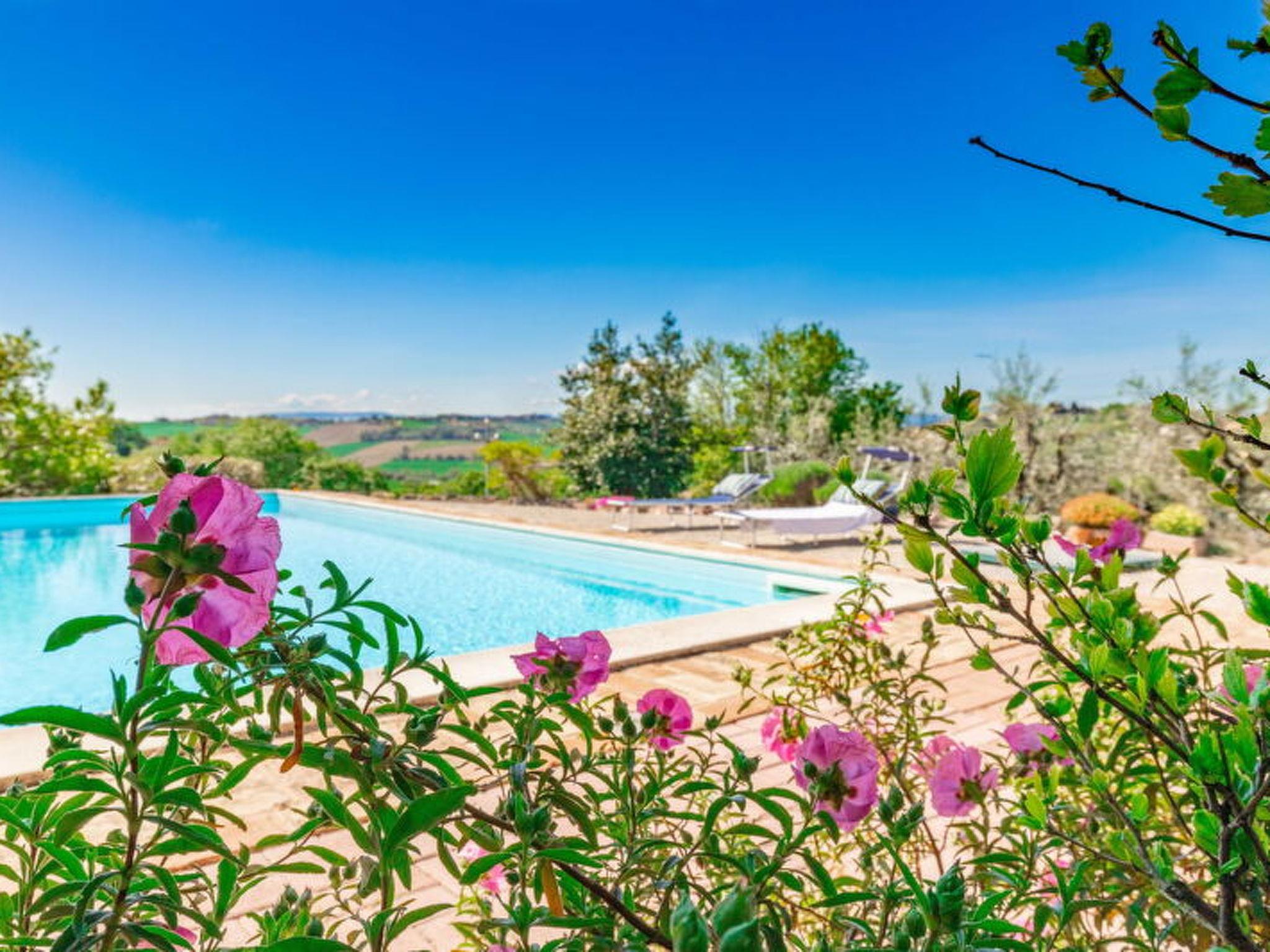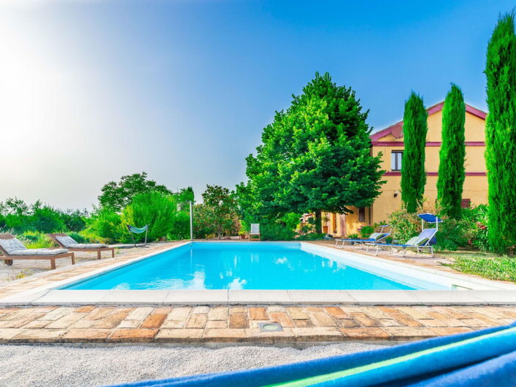 Casa Bellavista is an exclusive villa with pool sleeping 12 in total located in Ostra, in the heart of the Marche region, just 10 minutes from the famous velvet beaches of Senigallia and it is your ideal home if you are looking for a rustic and charming accommodation. Ideal for those who want to stay in total privacy and security, in contact with nature but close to all in the comfort of the town which is only 1 km away.From when you cross the gate to enter when (alas) you let it fade behind you, the background of your holiday is just chirping and rustling.If you love walking and taking long walks immersed in the quiet countryside, from the house you can walk to the ancient village of Ostra which is about 1500 meters away.The house is surrounded by a private and exclusive garden with many trees, plants and aromatic plants that fill the air with Mediterranean scents and a large private swimming pool and plenty of space to relax in the sun or in the shade. On summer evenings you can enjoy dinner outdoors in the large equipped area in front of the house.In the surrounding countryside there are numerous places where you can buy fresh vegetables and other local produce.The area is known for its high quality wines, such as Lacrima di Morro d'Alba, which can be purchased from nearby farms.Interurban bus at 1 km in the village of OstraRailway station at 15 km - SenigalliaMarche Airport - Ancona - 25 kmCasa Bellavista offers its guests a large, fully fenced private garden equipped with a large table for eating outside and enjoying the breeze from the hills and the spectacular panorama of the surrounding nature.At guests' disposal a private swimming pool for exclusive use equipped with sun loungers, umbrellas, gazebos and relaxation areas.THE SENIGALLIA DISTRICTVelluto beach and the Rotonda a Mare are the tourist symbol of Senigallia but besides this what to do and what to see in Senigallia. Here it is! Senigallia is a splendid seaside resort in the province of Ancona, one of the most popular tourist destinations in the Marche region. Since 1997 it has received the Blue Flag every year for its clean waters, the services offered to tourists and the guaranteed safety on the beaches. It has a beautiful 14-kilometre promenade at its disposal, with beaches equipped with various bathing establishments and easy to use even with strollers or people with mobility problems, thanks to the presence of walkways that lead right onto the beach.Senigallia today is one of the most evocative seaside towns of the Marches, with a long sandy beach, made up of grains so small as to be worth the nickname "velvet beach".Just 20 minutes by car are the famous beaches of the Riviera Del Conero such as Portonovo, Sirolo and Numana, renowned all over the world, where beach, sea and rocks come together to create a unique landscape.Senigallia rises near the mouth of the Misa river, in a flat area surrounded by verdant hills that overlook the sea. On warm summer evenings, the seafront comes alive with many clubs that play live music and small restaurants, a stone's throw from the sea, which cook the excellent fish caught in the day from the fishing boats that go out every day and sell their products at the market that takes place every day at the Forum Annonario.The history of tourism dates back to the early 1900s and its symbol soon became the Rotonda a Mare, inaugurated in 1933. This beautiful building underwent various destructions and reconstructions, the last one in recent years, in fact the Rotonda was reopened in the summer of 2006 with the intention of making it a privileged place for entertainment.Senigallia is not only a beautiful seaside resort where you can spend relaxing, sun and fun holidays, but also a charming historic center with various palaces, churches and monuments that are worth seeing to fully appreciate the beauties of the city.La Rocca is one of the most characteristic buildings to see in Senigallia, built as a defensive structure, over the centuries it saw the overlapping of different architectural styles, becoming not only a fortress but also the home of rich noble families.Today it periodically hosts art exhibitions and cultural events.Near the Rocca there are other buildings of a certain value: Palazzo del Duca, dating back to 1500 and strongly desired by the Della Rovere family, inside it is splendid the coffered ceiling that can be admired in the Throne Room;Even the Foro Annonario, where the fruit, vegetable and fish market is held every day, has an architectural structure of a certain interest; designed in 1834 in neoclassical style, it is characterized by a circular portico with 24 Doric columns. Designed in 1834 by the Senigallian architect Pietro Ghinelli.private swimming pool for exclusive use equipped with sun loungers, umbrellas and tables, gazebo and relaxation areasPool measures 12 x 4 m - depth 1.6 mprivate parking