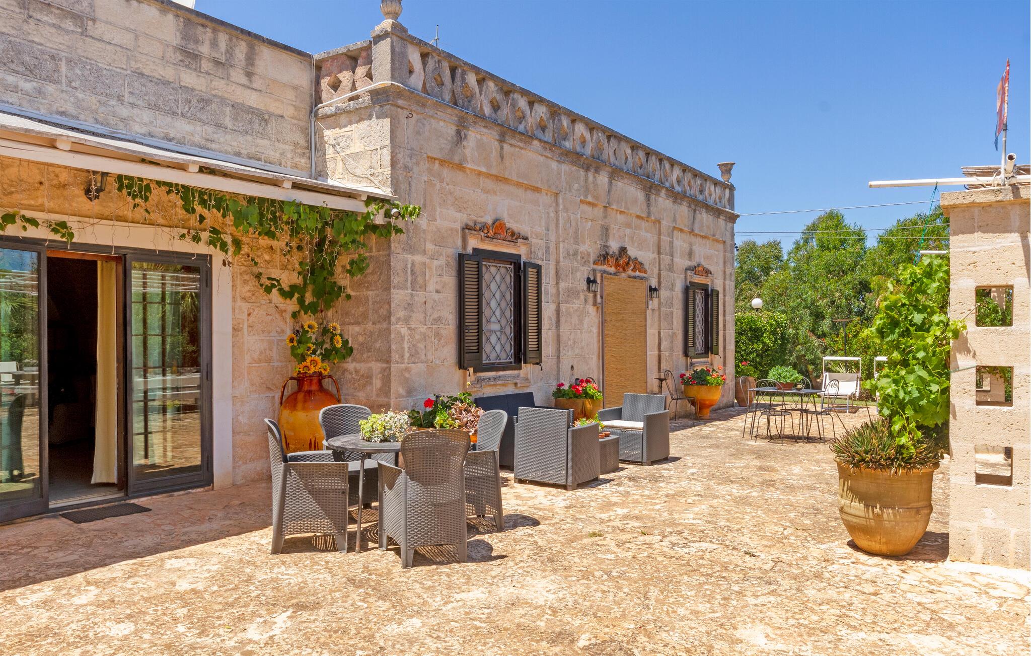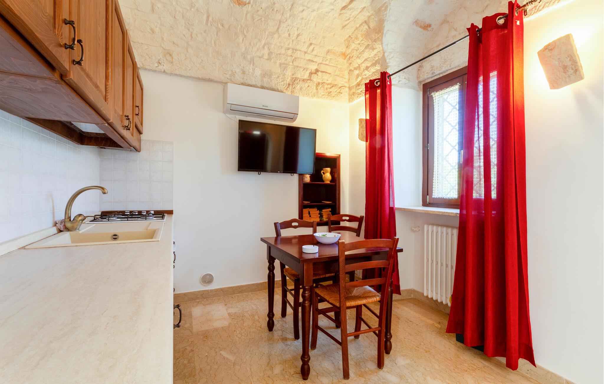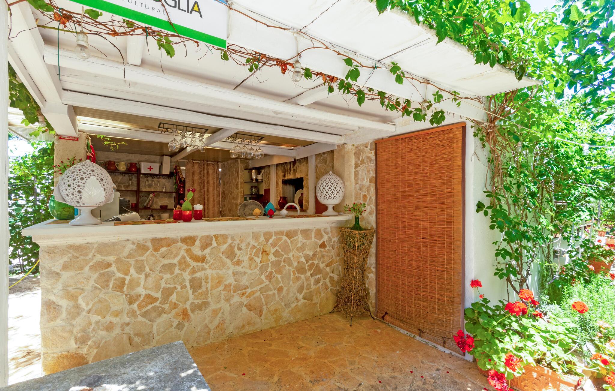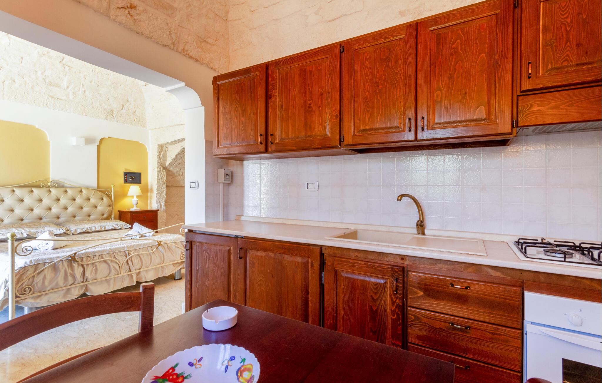 Dette feriehus i Ostuni tilbyder jer en smuk kombination af komfort, natur og afslapning. Uanset om I vil slappe af i solen ved poolen eller udforske Puglias smukke omgivelser, finder I her det ideelle sted for en pause fra hverdagen. Husets kompakte interiør er autentisk designet. Tilbered om morgenen en let morgenmad i det lille køkken og planlæg derefter dagens udflugter over en kop kaffe.