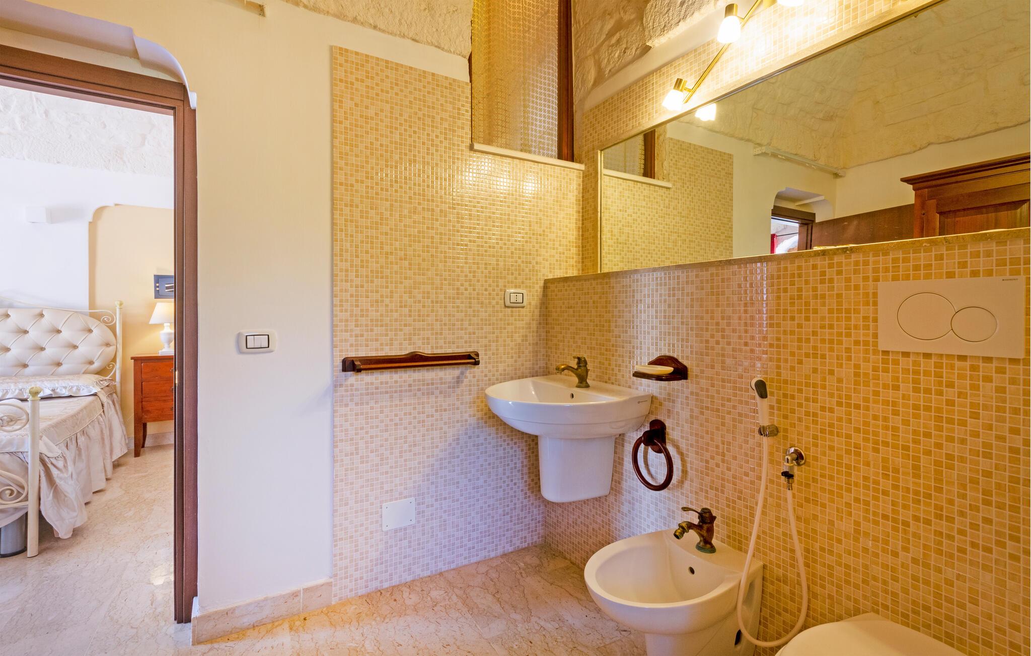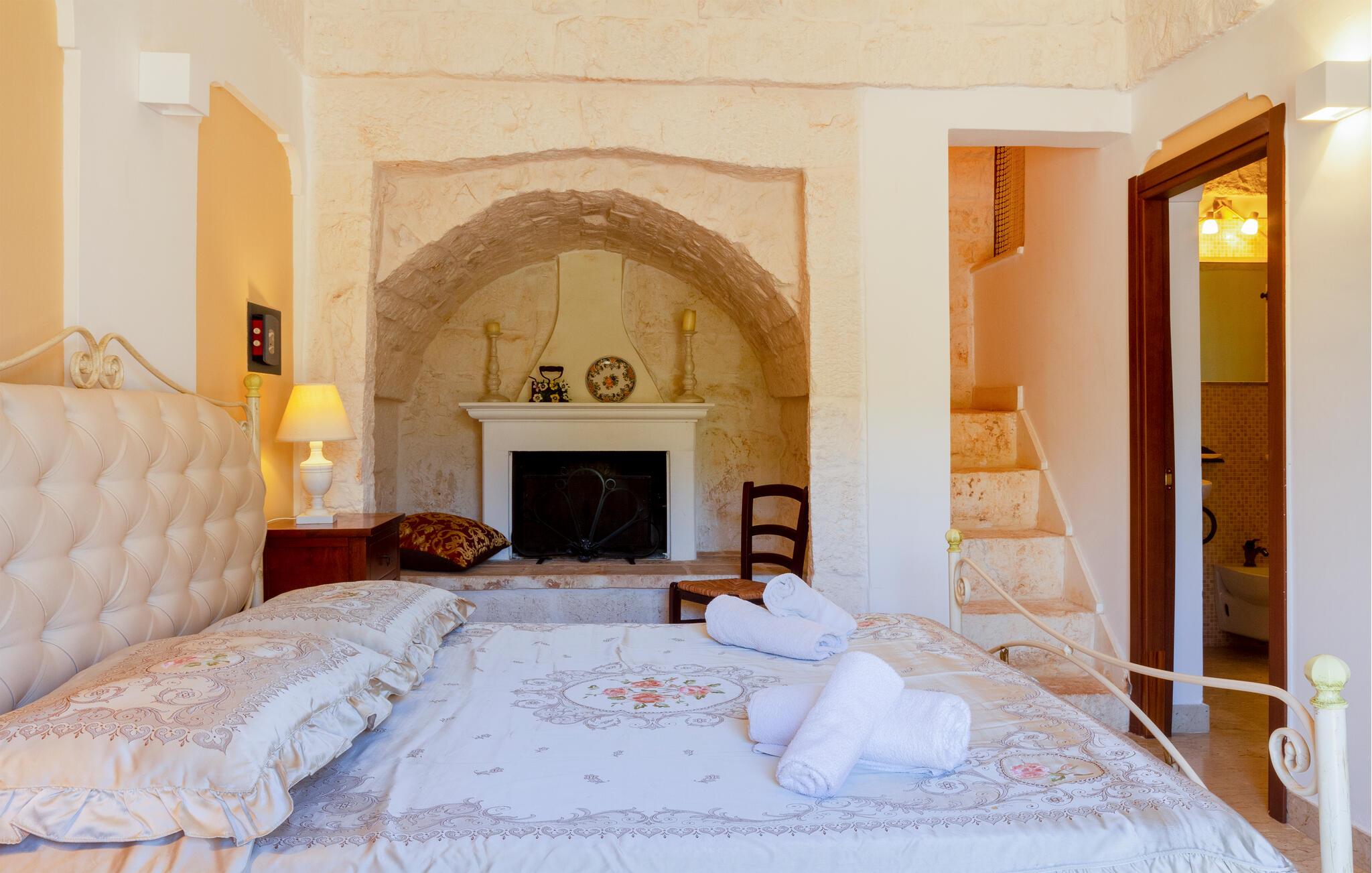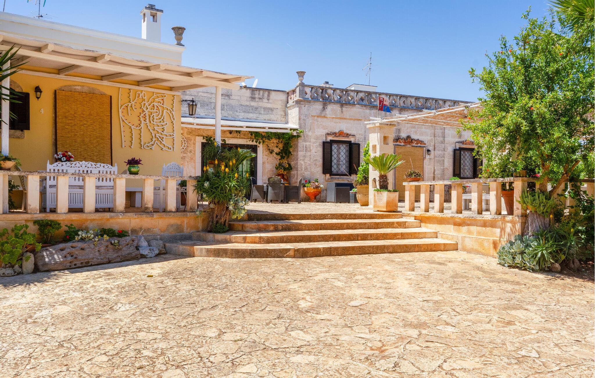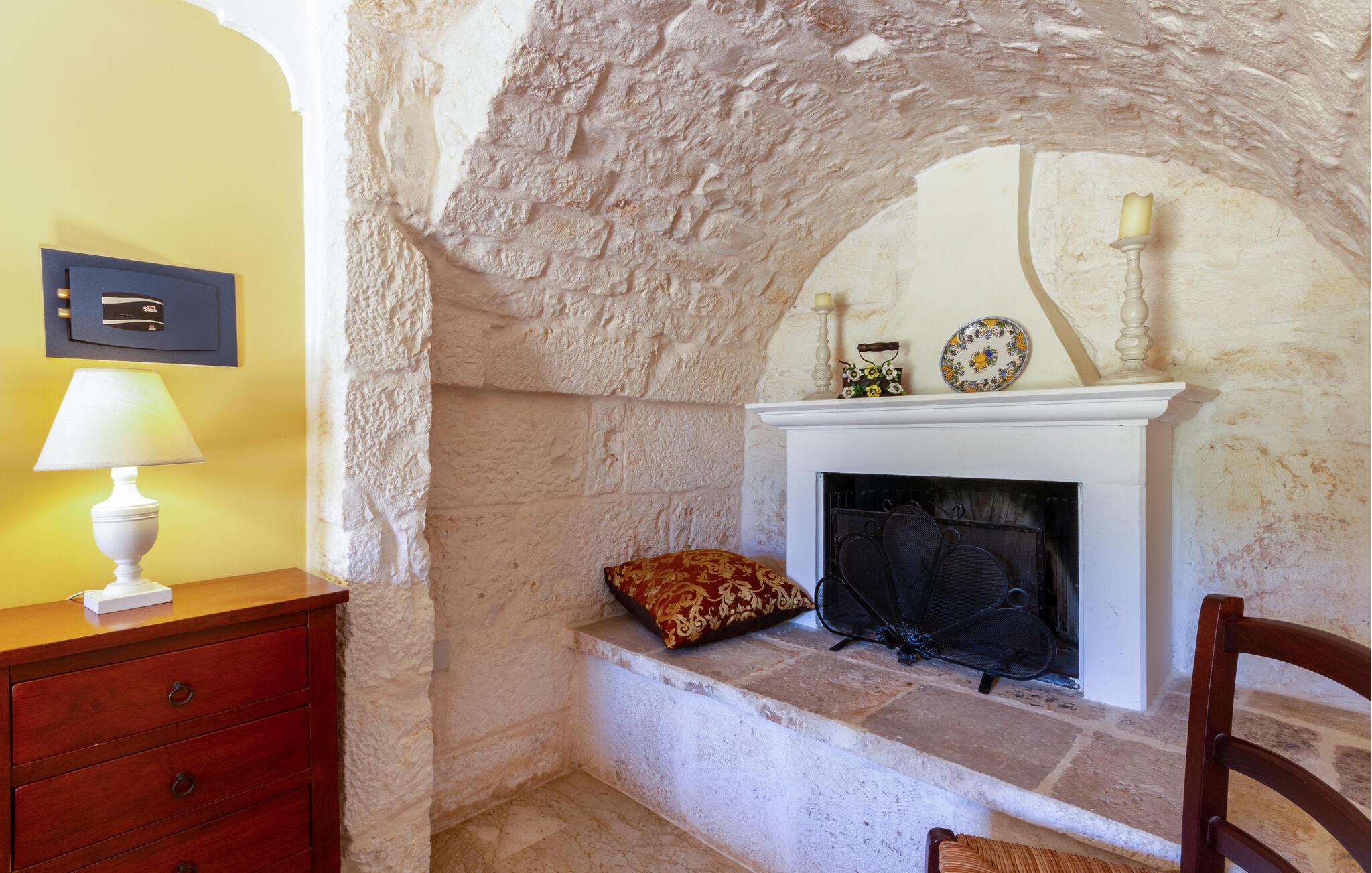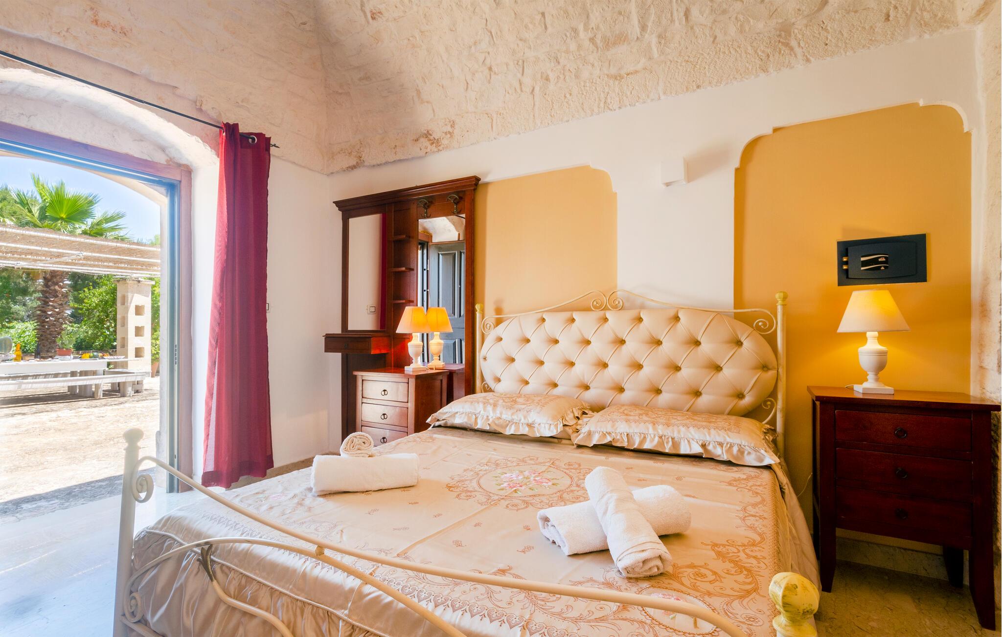 Dette feriehus i Ostuni tilbyder jer en smuk kombination af komfort, natur og afslapning. Uanset om I vil slappe af i solen ved poolen eller udforske Puglias smukke omgivelser, finder I her det ideelle sted for en pause fra hverdagen. Husets kompakte interiør er autentisk designet. Tilbered om morgenen en let morgenmad i det lille køkken og planlæg derefter dagens udflugter over en kop kaffe.
