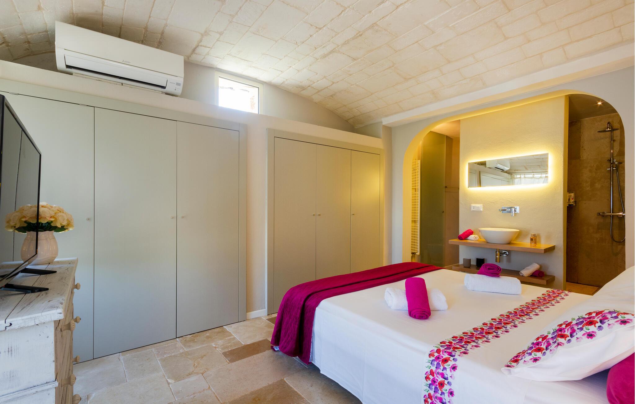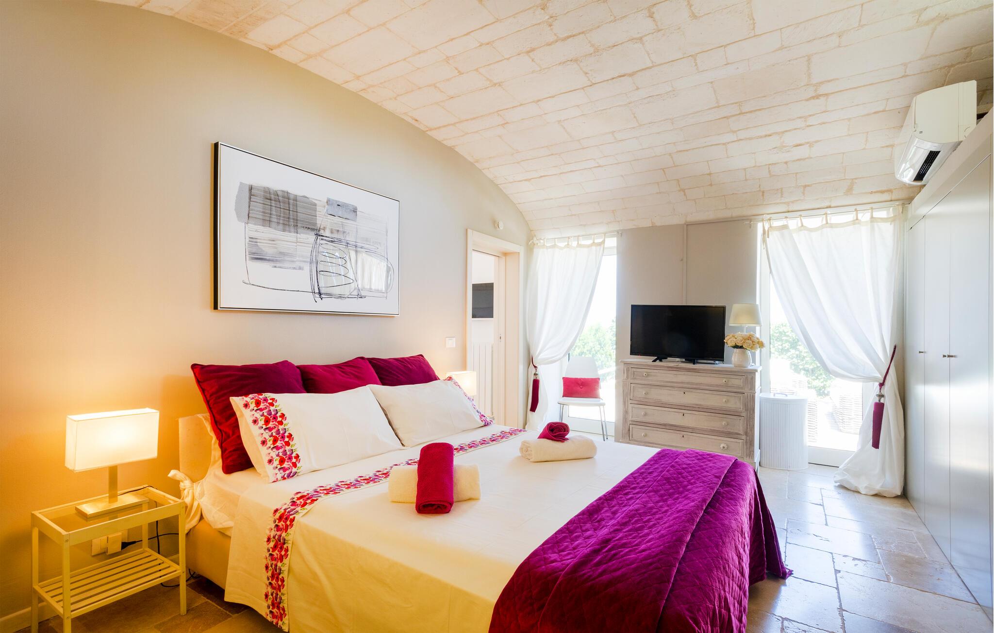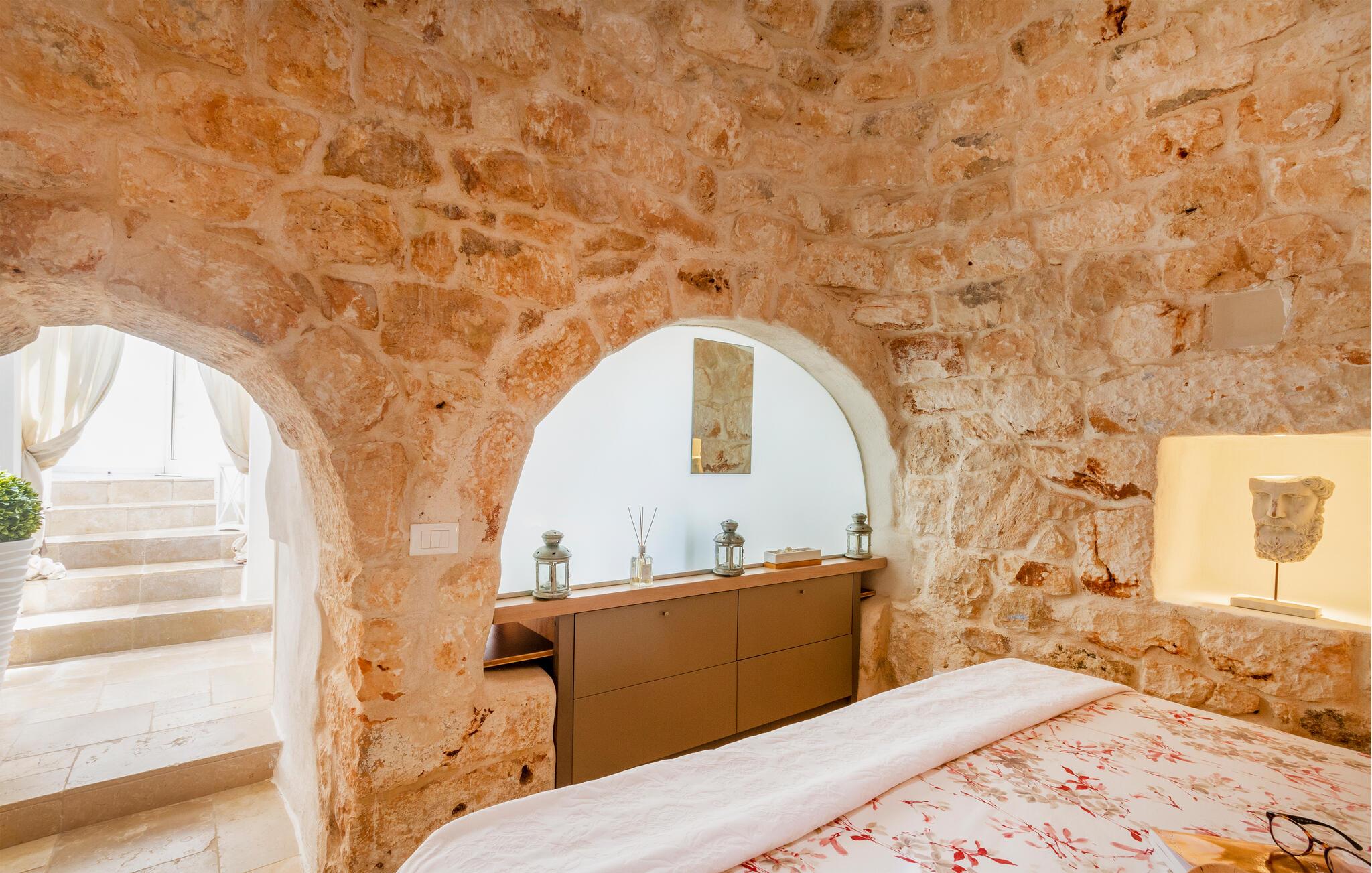 Glæd jer til jeres ferie i dette særlige feriehus med jeres lille familie eller et par venner. Huset lavet af sten og de smukke hvælvede lofter tilbyder jer en behagelig atmosfære, hvor I kan lave mad sammen, lege og slappe af. Haven med terrasse er lige så fantastisk. En stor swimmingpool inviterer jer til at svømme og køle ned på varme sommerdage. Solbad på liggestolene eller nyd den rummelige terrasse med udekøkken, hvor I kan svinge grydeskeerne sammen. Fra huset har I en smuk udsigt over byen Ostuni.