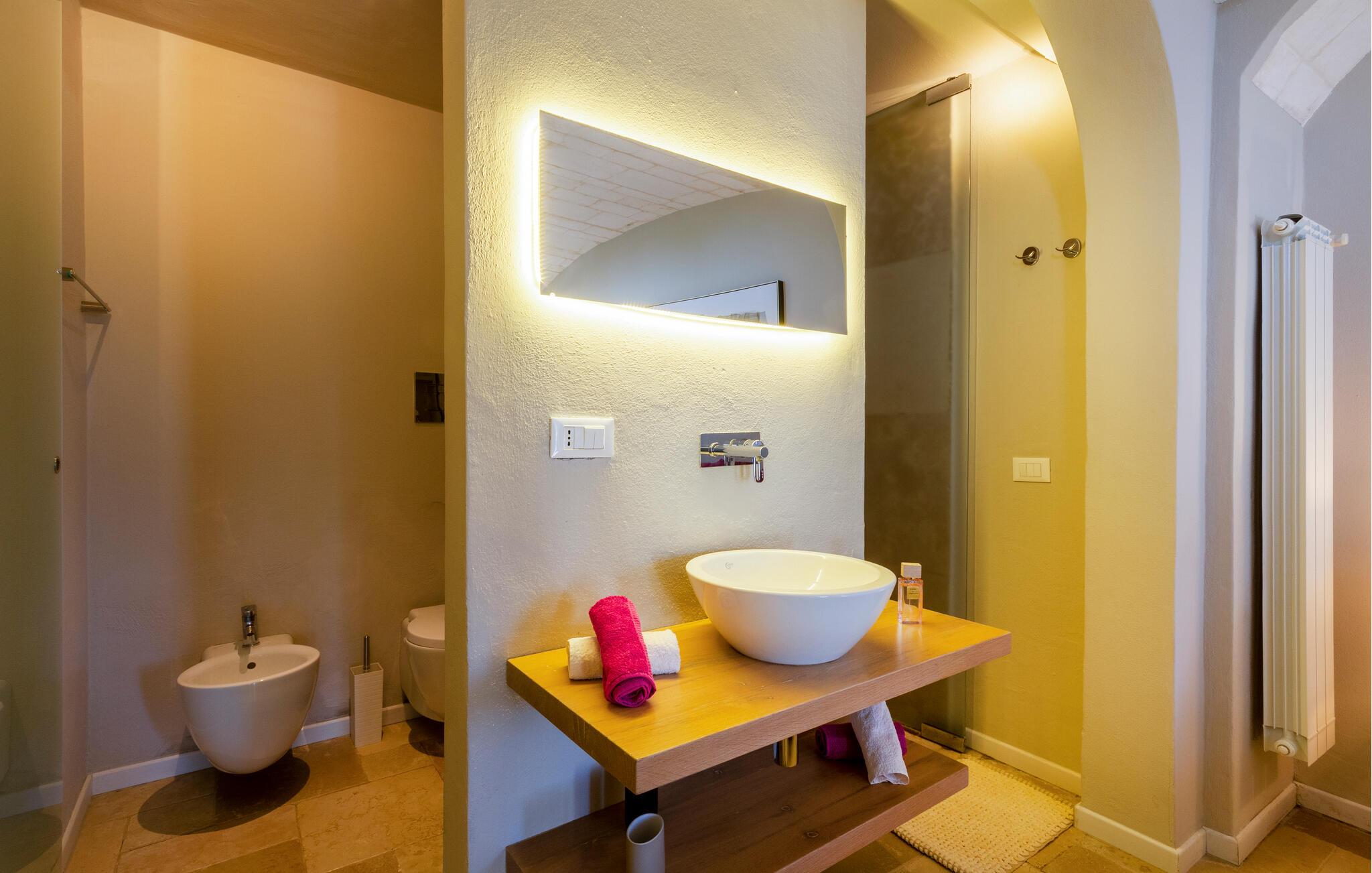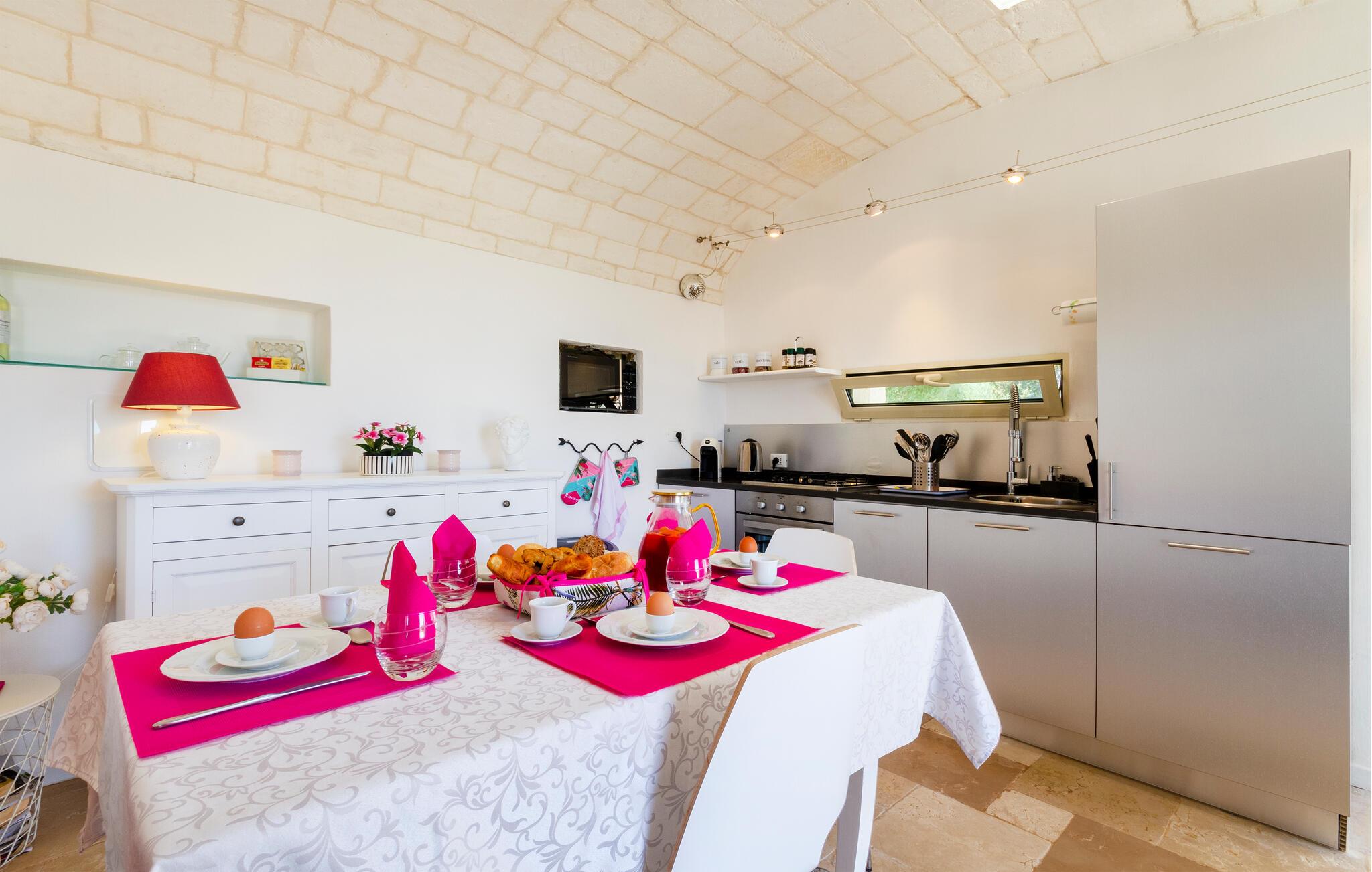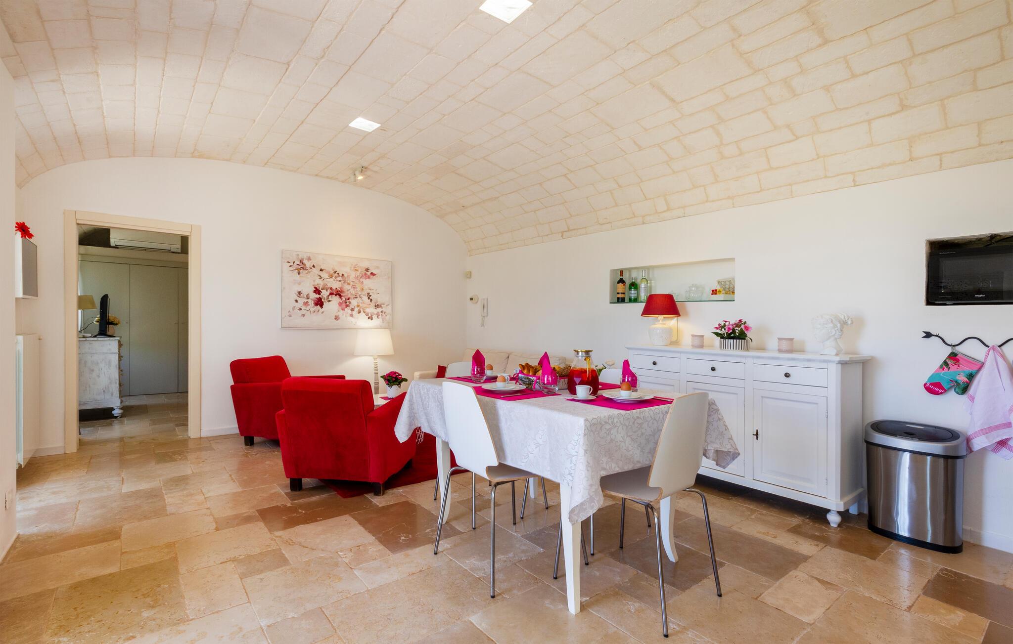 Glæd jer til jeres ferie i dette særlige feriehus med jeres lille familie eller et par venner. Huset lavet af sten og de smukke hvælvede lofter tilbyder jer en behagelig atmosfære, hvor I kan lave mad sammen, lege og slappe af. Haven med terrasse er lige så fantastisk. En stor swimmingpool inviterer jer til at svømme og køle ned på varme sommerdage. Solbad på liggestolene eller nyd den rummelige terrasse med udekøkken, hvor I kan svinge grydeskeerne sammen. Fra huset har I en smuk udsigt over byen Ostuni.