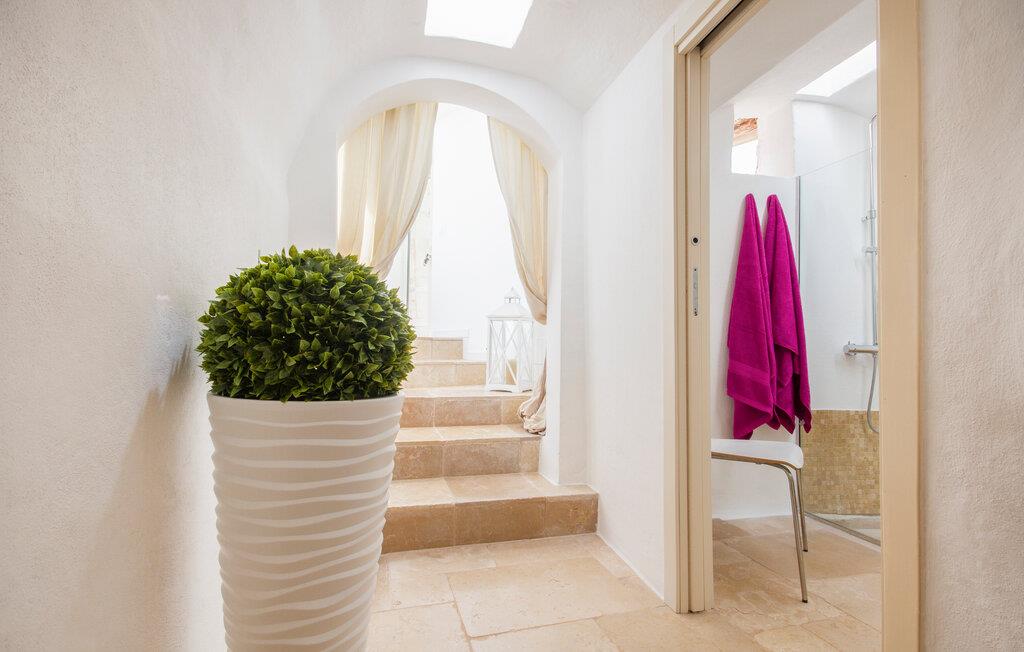 Historiske Ostuni ligger knap 10 minutter væk. Her kan I slentre gennem den velbevarede gamle bydel med sit virvar af gyder og trapper og mellem de typiske hvidkalkede huse og lade stemningen gribe jer. Intet står i vejen for en tur til havet. I Torre Santa Sabina finder I smukke strandbugter, der inviterer jer til at dykke ned i havet og lade jer rive med af bølgerne.