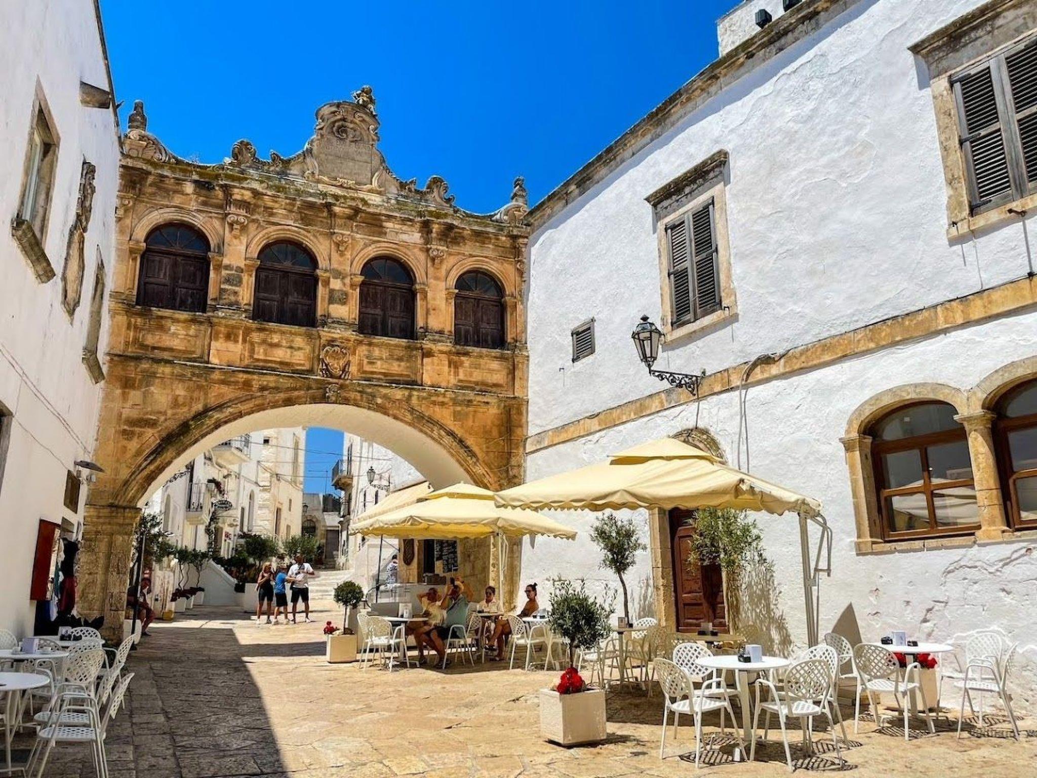 After a day at the beach, enjoy a sea-view aperitif 60 m away at 'Borgo Antico Bistrot' one of Ostuni's most popular places.