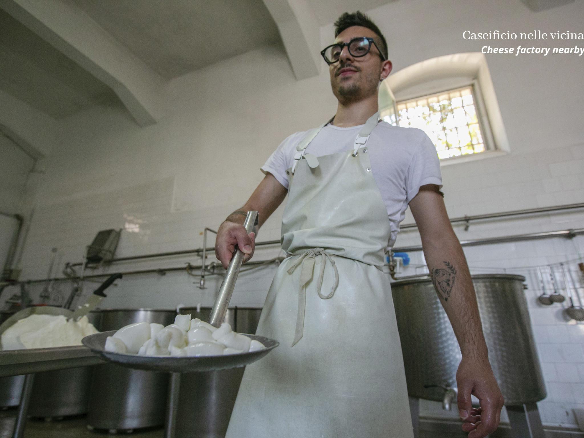 50 m away you will find a dairy that produces fresh cheese every day as well as a bakery that offers typical pastries and fresh bread;