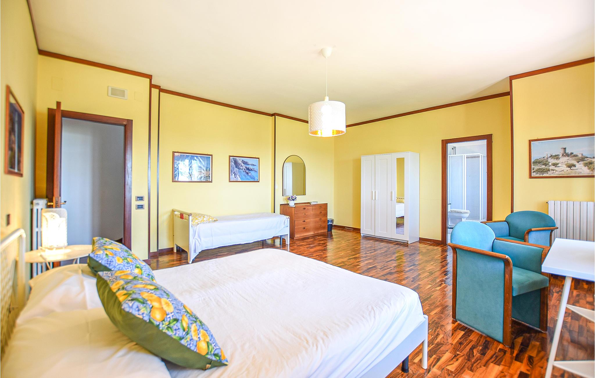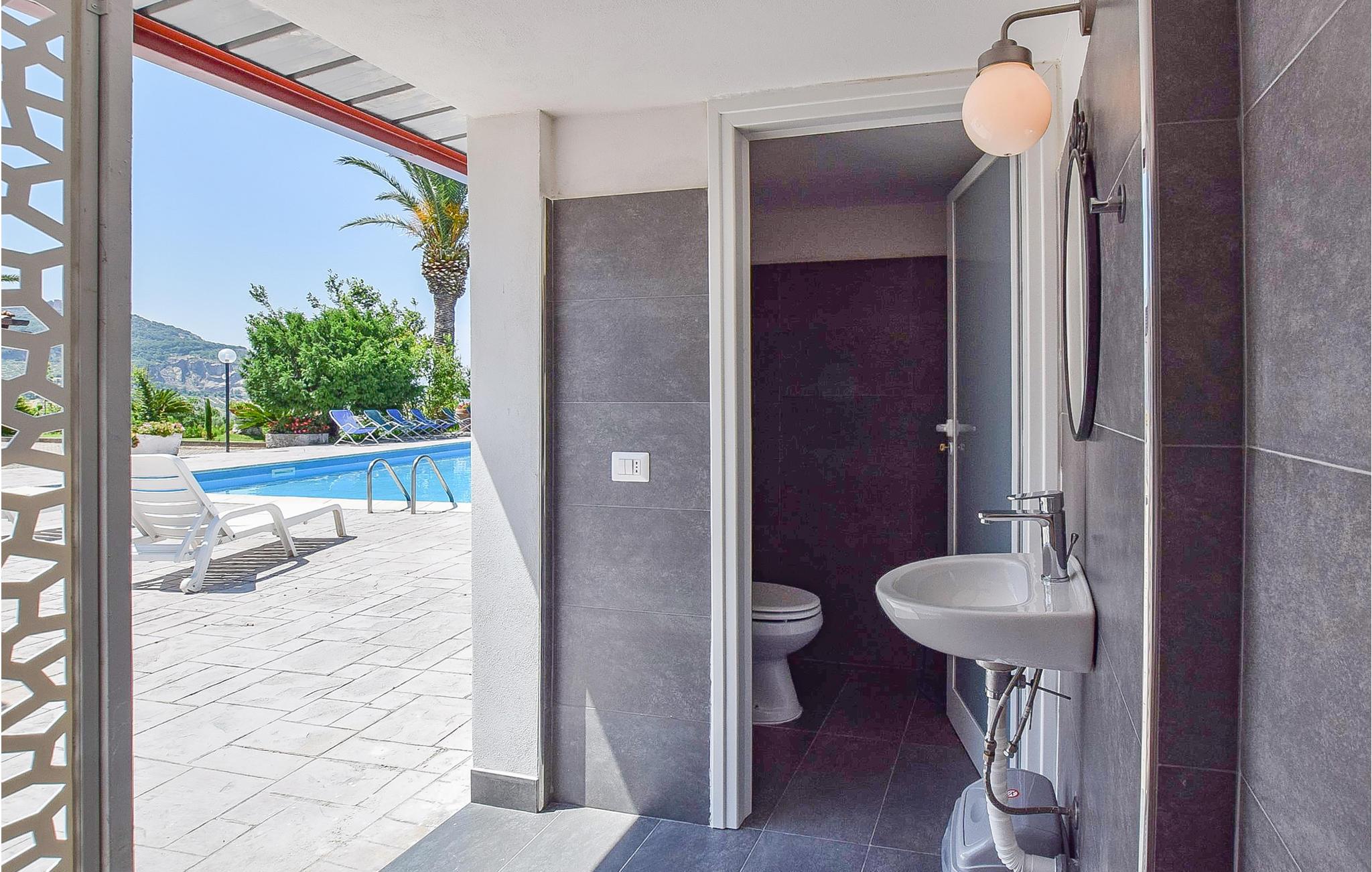 Dette rummelige og hyggelige feriehus i Capaccio (Salerno) ligger kun 5 km fra Paestum. Til rådighed for jer er en stor have og en privat pool (2,50 m dyb), hvorfra I kan beundre Sele-dalen, Amalfikysten og en del af Cilentokysten. Paestum er et berømt arkæologisk sted, omgivet af helt bevarede mure og rig på mindesmærker som de græsk-romerske templer og forum. Kystens store sandstrande ligger kun 8 km herfra og frister til behagelige badedage. Også seværdig er den dejlige Cilento-nationalpark (35 km) med sine museer samt de charmerende byer Castellabate, Acciaroli og Palinuro med sit turkisblå hav og nogle af de dejligste strande i Italien.