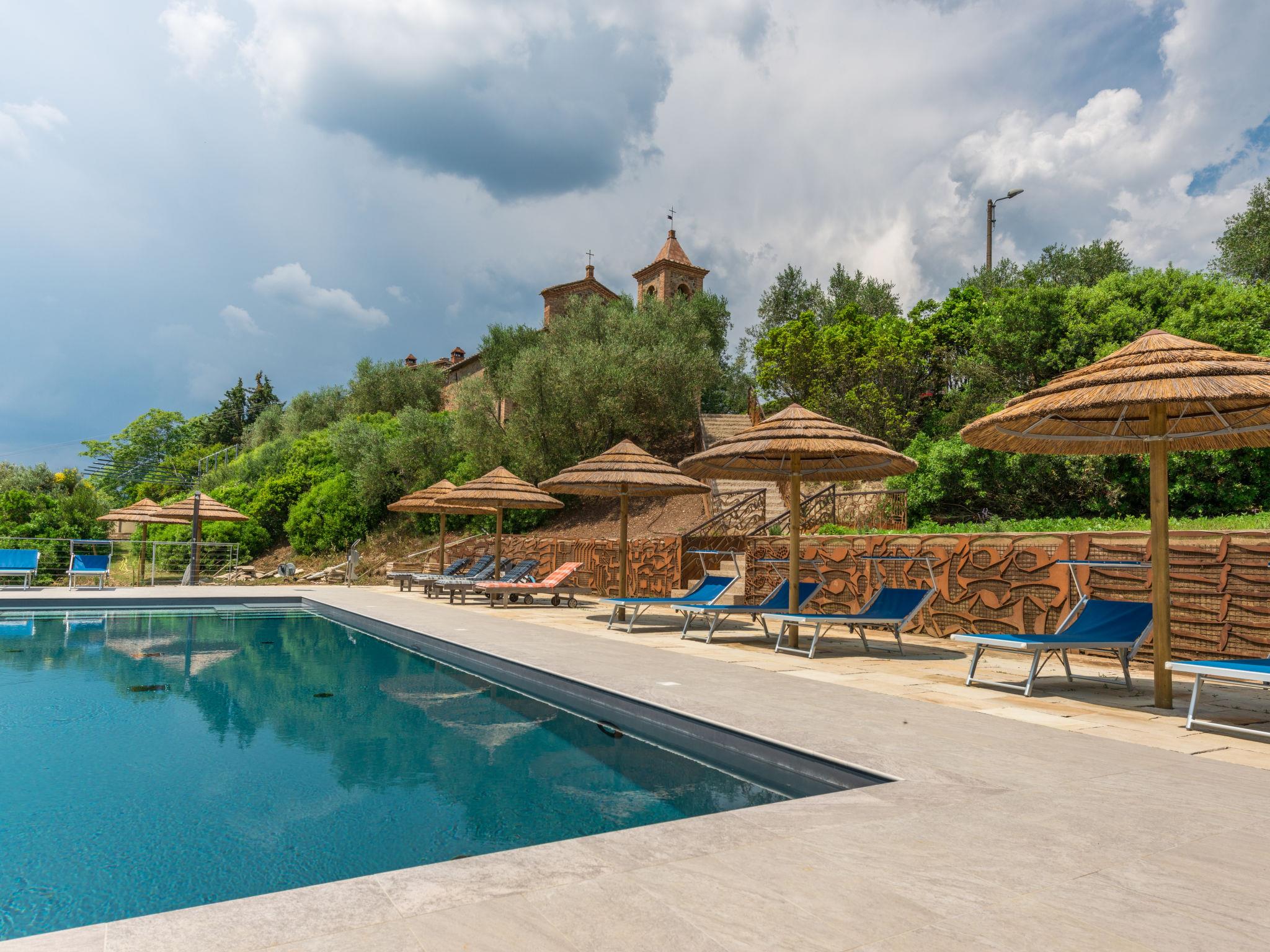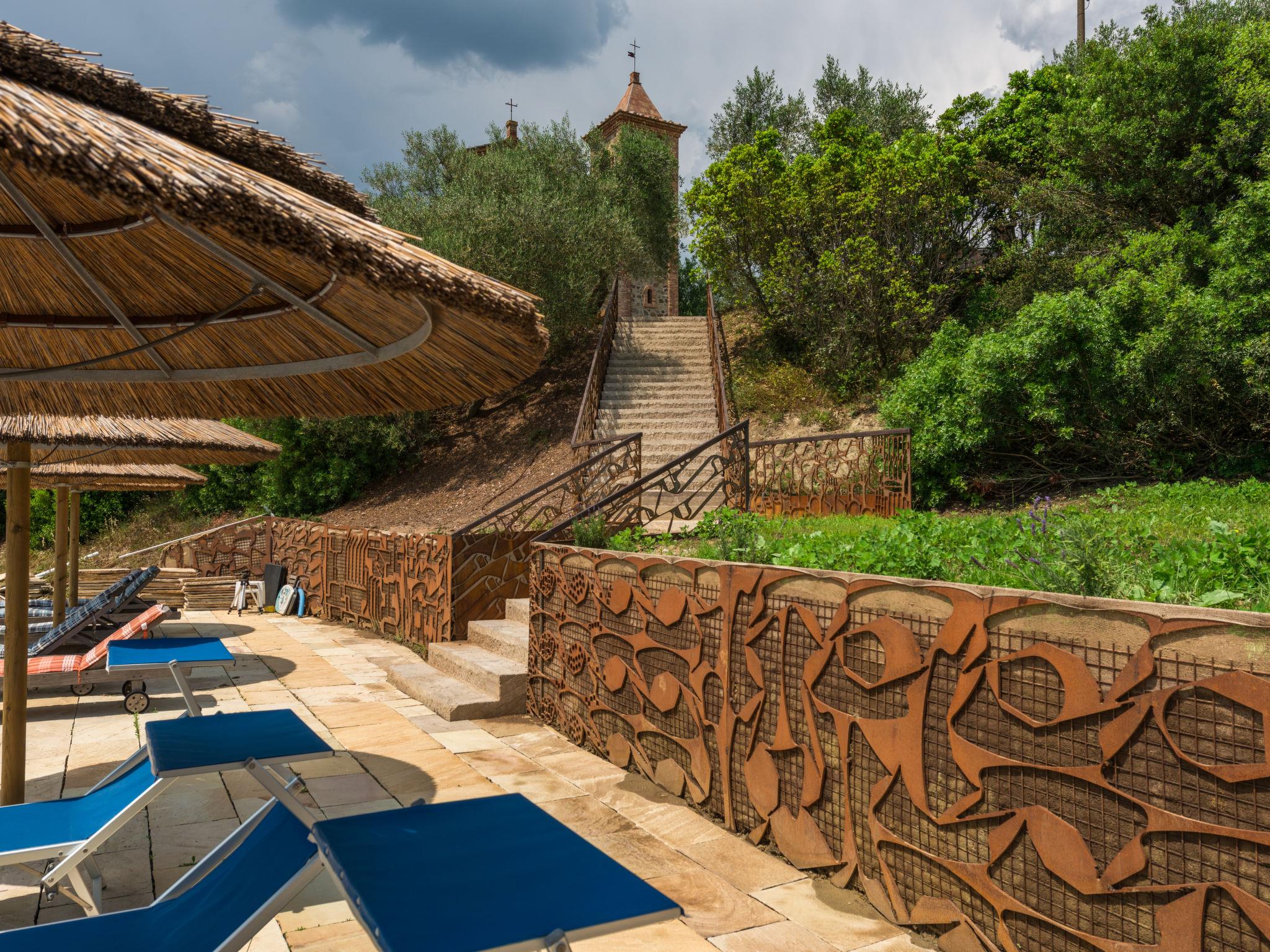 Cosy, rustic residence "Violapo al Castello", surrounded by trees and fields. 10 apartments in the residence. In the hamlet Monte Antico 9 km from the centre of Paganico, 30 km from the centre of Montalcino, 35 km from the centre of Grosseto, in a quiet position on top of a hill, 50 km from the sea. For shared use: swimming pool (15 x 6 m, depth 200 cm, seasonal availability: 15.May. - 15.Sep. pool opening hours: 09:00-20:00, extra 10€-40€ per day). Terrace, garden furniture, parking at the house. Shop 12 km, supermarket 12 km, restaurant 2 km, bar 2 km, bus stop 2 km, railway station "Monte Antico" 2.5 km, thermal baths "Petriolo" 16 km. Walking paths from the house 100 m. Nearby attractions: Montalcino 30 km, Val d´Orcia 30 km, Grosseto 35 km, Siena 45 km, Paganico 12 km, Castiglione della Pescaia 60 km. Please note: car recommended. Restricted pool access, advance booking recommended, entrance price 10€/person/day. The swimming pool is accessible via an external staircase.