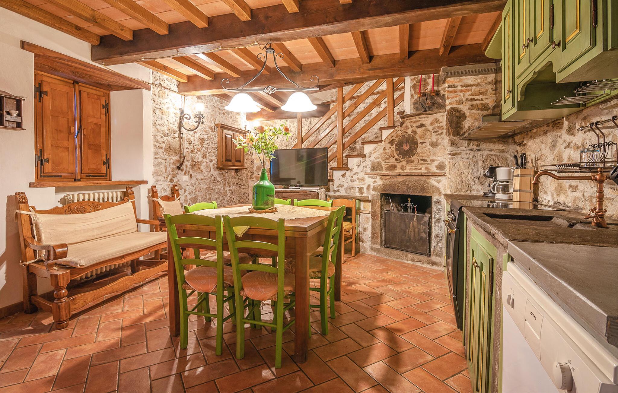 Velkommen til dette charmerende feriehus, hvor rustikke træbjælker, naturstensvægge og komfortable møbler skaber en varm og indbydende atmosfære. Tilbered toskanske retter i det hyggelige køkken, og nyd dem sammen ved det store spisebord. Om aftenen kan I slappe af foran pejsen og lade dagen slutte i afslappende omgivelser.