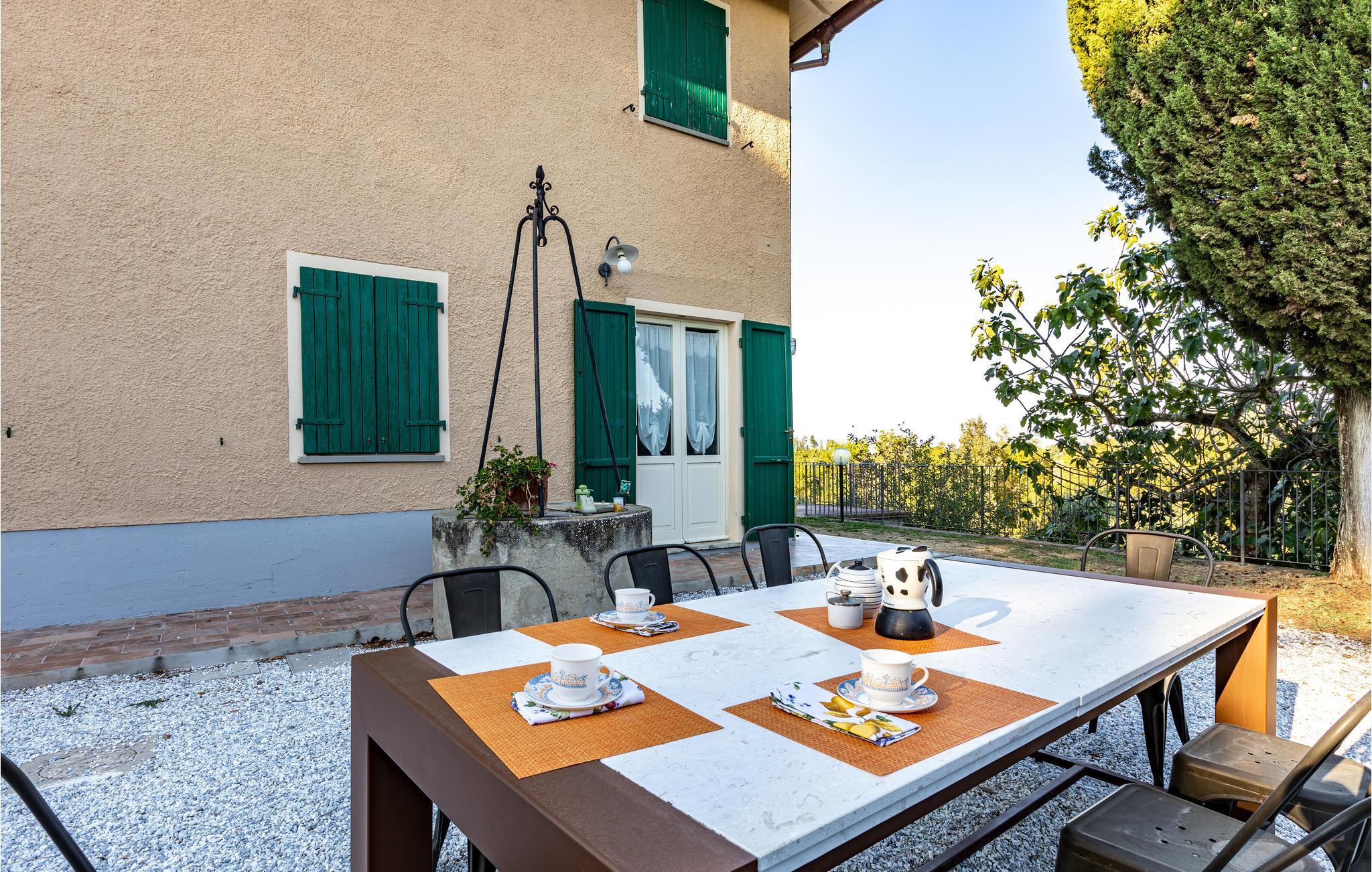 Feriehuset råder over en terrasse med skøn udsigt til bakkerne omkring Pisa og til vinbjergene, der fremstiller nogle af Toscanas bedste vine. Til strandene langs Marina di Pisa er der omkring 45 km, mens byen Pisa med sit berømte skæve tårn samt lufthavnen i Pisa er ca. 30 km herfra. Kunstbyerne Lucca, Firenze og Siena er hhv. 56 km, 64 km og 90 km herfra.