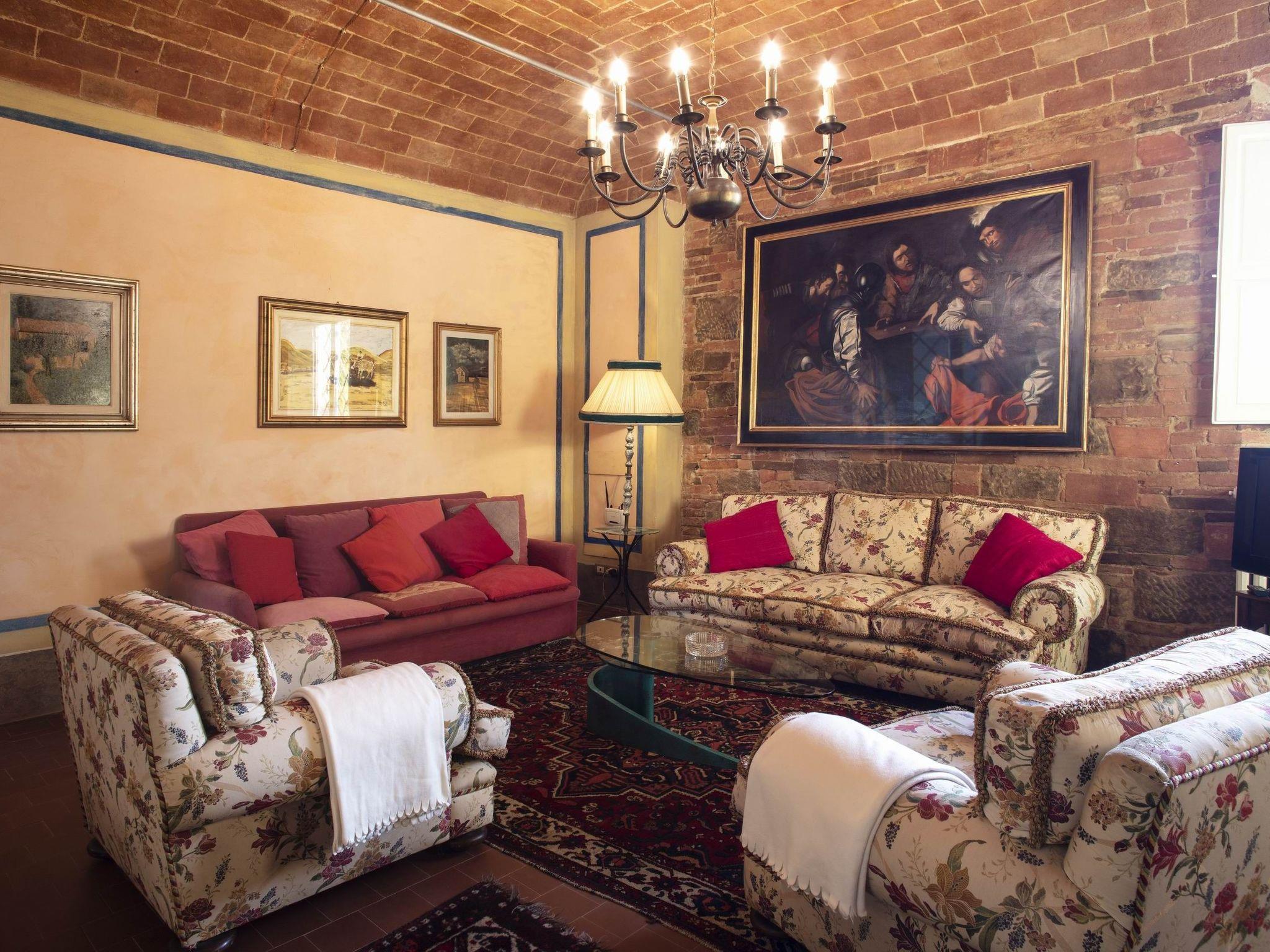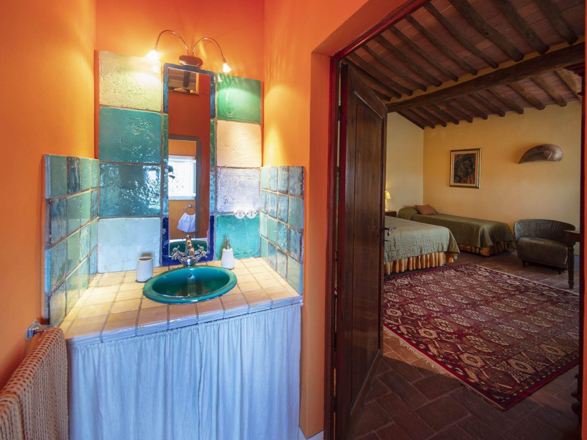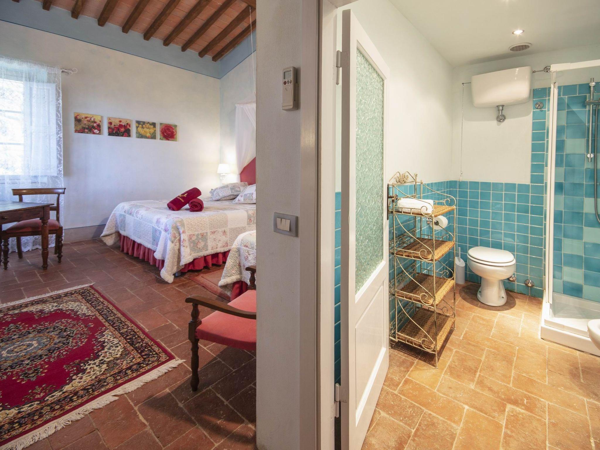 Spacious villa with swimming pool and children's pool, 5 km from Palaia, a small medieval village in the Pisan hills, famous for its truffles that guests can taste in the village's typical restaurants. The very quiet location, ideal for a relaxing holiday, is also perfect for visiting Pisa, Lucca, Florence, Siena, San Gimignano and Volterra. The recently renovated 600 m² villa retains its original 18th-century architecture and is spread over three floors. Surrounded by a 4000 m² park with an equipped outdoor dining area and a huge swimming pool (in a natural panoramic position, 18 x 9 m, 140 cm deep, open from April to November), the villa is also ideal for families with children thanks to the children's pool (6 x 6 m, 50 cm deep), the table-tennis table and the exclusive large, quiet green park. The interior of the villa retains its original atmosphere thanks to the antique cotton and stone floors and furnishings with precious details that bring it back to its former glory. The tasteful colours chosen, the furnishings, the paintings, the brick vaulted ceilings, a mix of luxurious and rustic style. Ground floor: entrance hall, living room with stereo and satellite TV, dining area with fireplace, a second dining room, kitchen (cooker, freezer/fridge, oven, microwave, dishwasher, kettle, American coffee machine, espresso machine, pizza oven, toaster) with access to the outside and a WC. First floor: double bedroom with access to the rooftop terrace, bathroom with bath and shower, double bedroom with access to the rooftop terrace, bathroom with shower, 3 double bedrooms, each with a double bed and each with a private bathroom with shower. Second floor: double room with air conditioning and a single bed (air conditioning) with private bathroom with shower, 3 double rooms, each with air conditioning and each with private bathroom with shower, room (air conditioning) with a double bed and a single bed and private bathroom with shower. Additional services: Wi-Fi, air conditioning in the 5 bedrooms on the second floor, mosquito nets in the bedrooms, cots and high chairs, washing machine, table tennis table, hairdryer, hand soap, fire extinguisher, first aid kit, ample parking, pets allowed and tasting of our wine and olive oil. Distances: Palaia village, restaurants and shops 5 km, Volterra and San Gimignano 40 km, Pisa and Lucca 45 km, Florence 60 km, Siena 85 km. Large villa close to Volterra and San Gimignano, large swimming pool, children's pool, suitable for families, table tennis, large garden, outdoor dining room, up to 22 people.