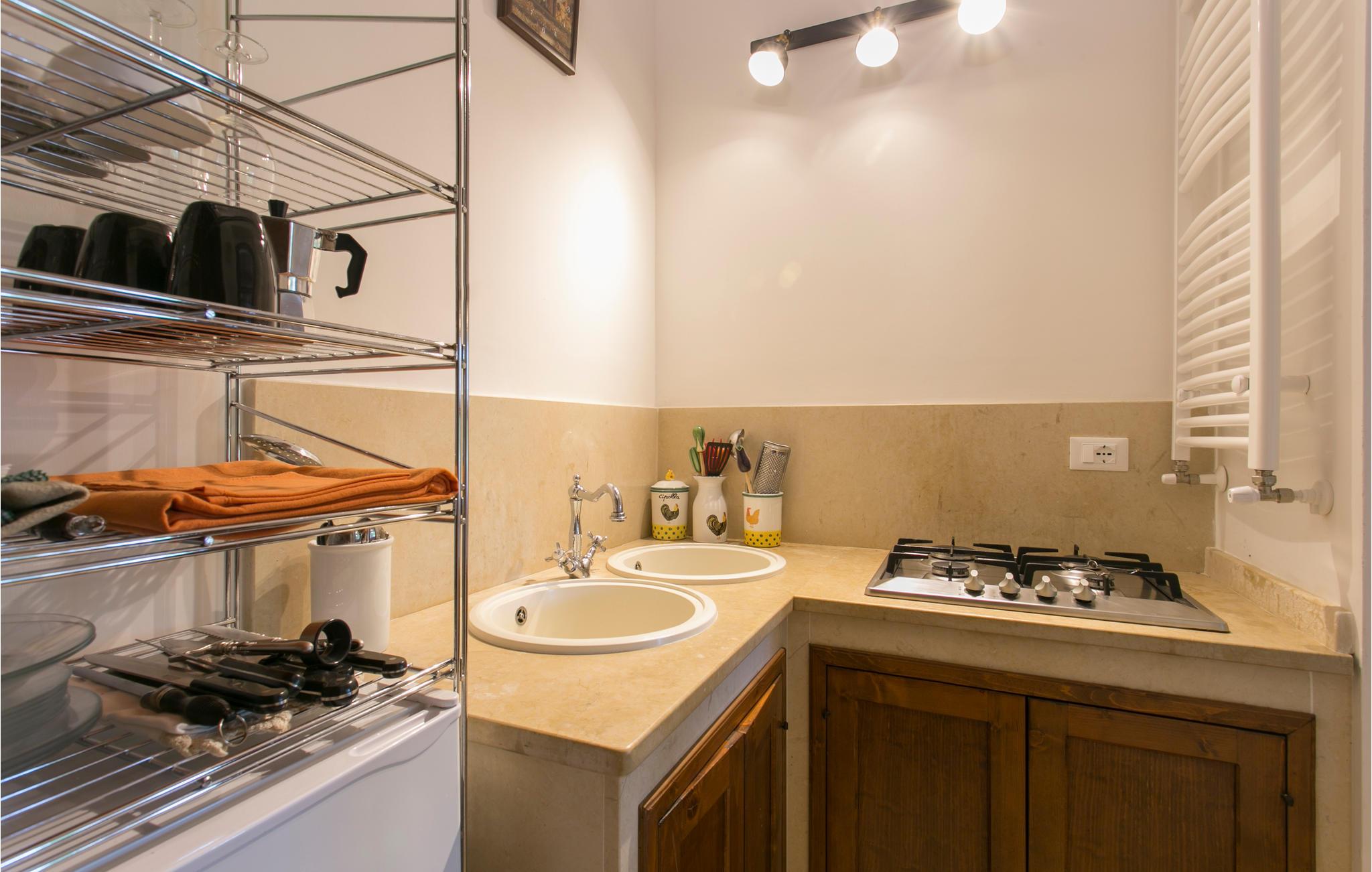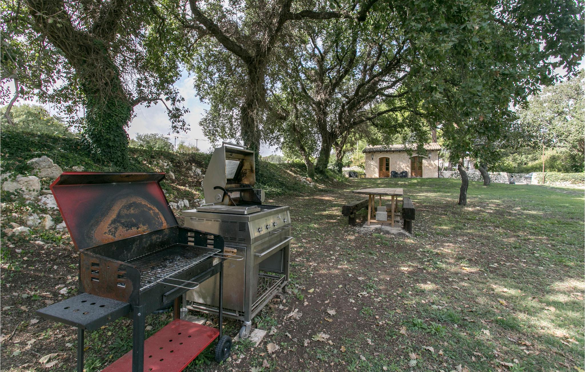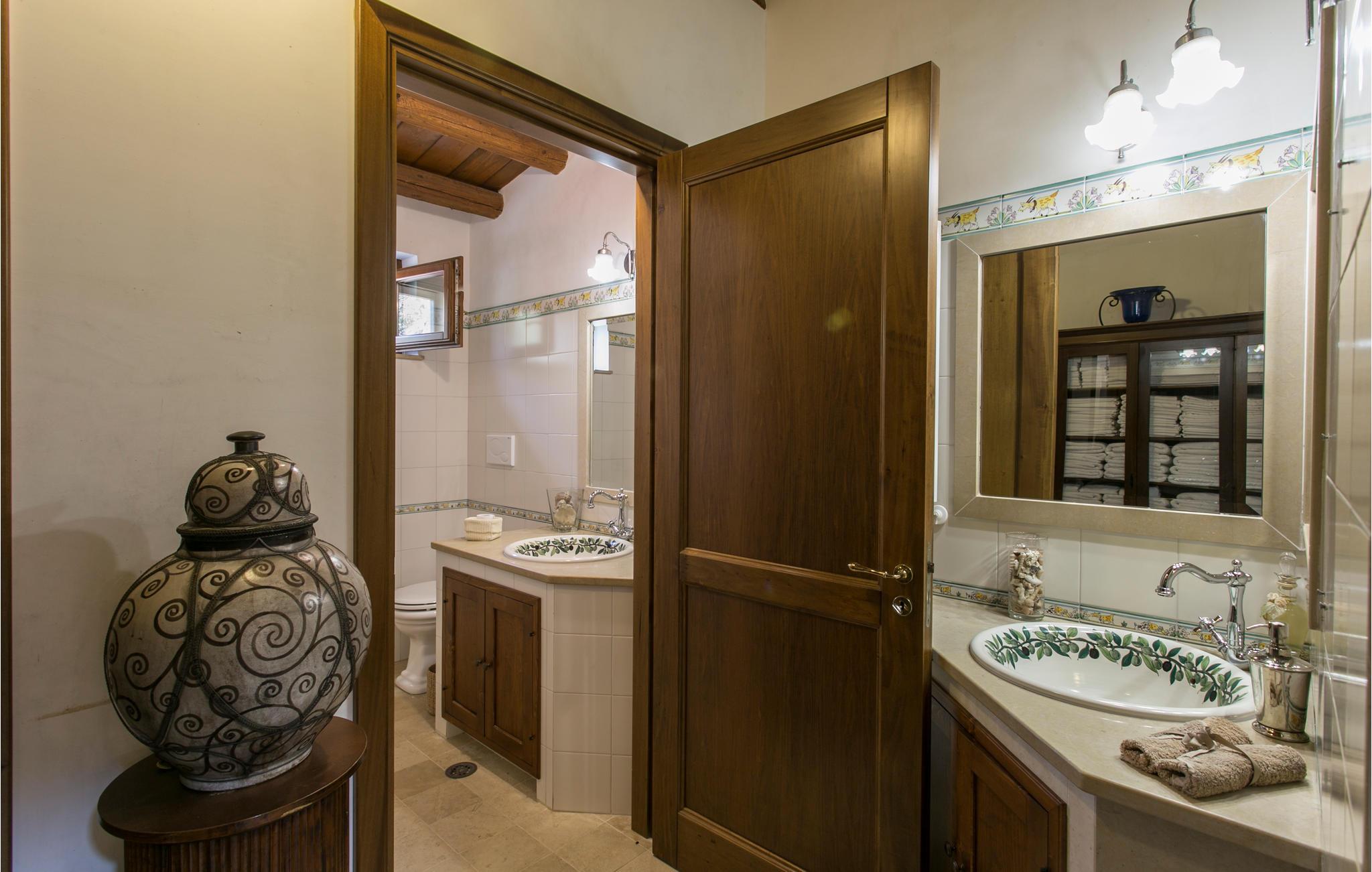 Feriehuset tilbyder swimmingpool. Den originale stil blev bevaret under renoveringen. Strukturen består af en hovedbygning og forskellige udhuse, hvoraf det ene er i poolområdet. Alle værelser, der engang var de gamle stalde eller lagre, er blevet konverteret til soveværelser med badeværelser. I villaen er der stor stue på 70 m2 med pejs og køkken. Huset er omgivet af en stor indhegnet ejendom med vinmarker, oliventræer, mandeltræer, andre frugttræer og vandrestier. Verandaer og velholdte udendørs arealer med planter og træer samt fitness, grill og smuk swimmingpool på en grøn bakke nær huset.