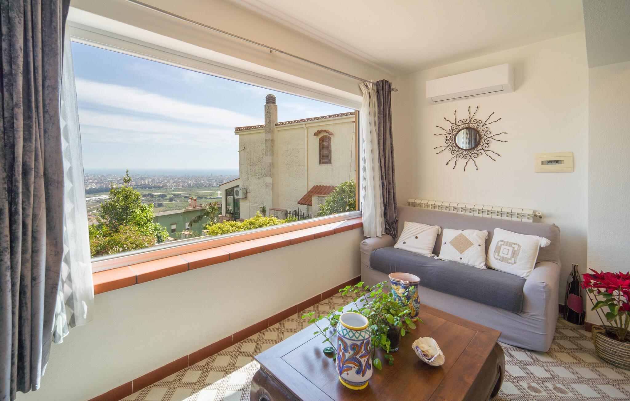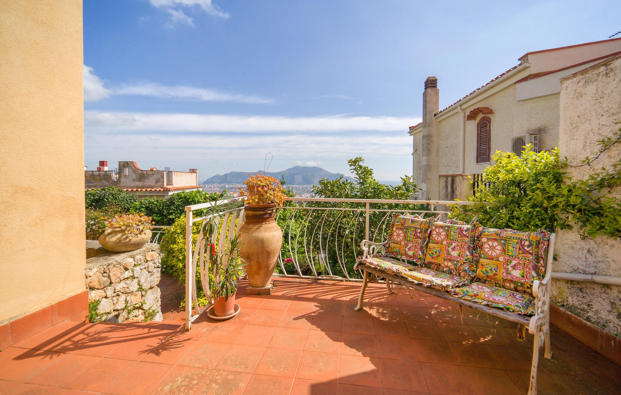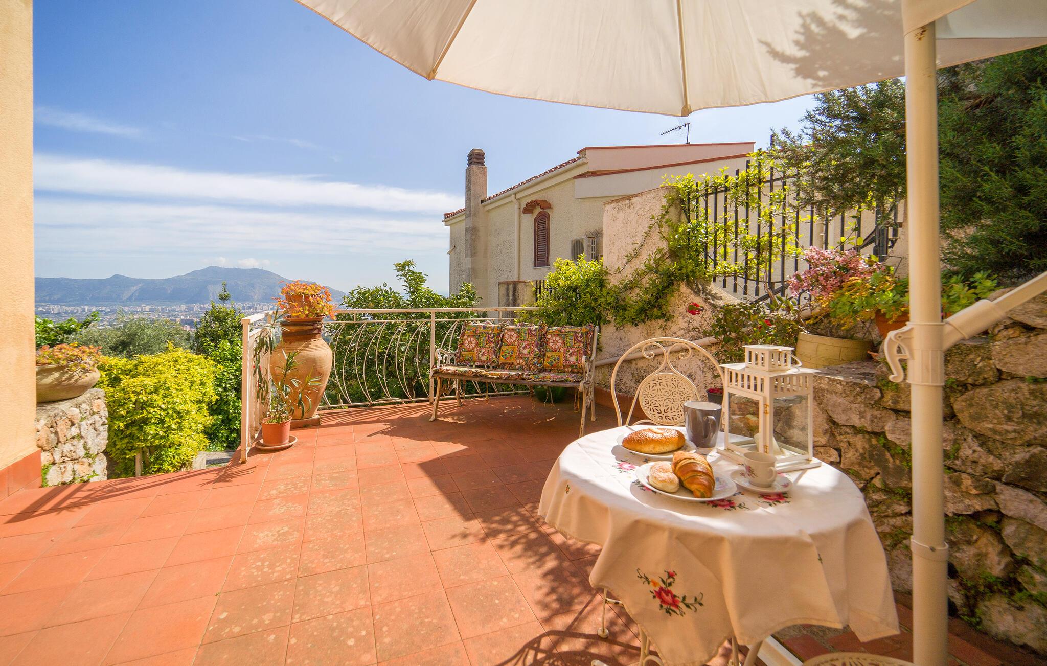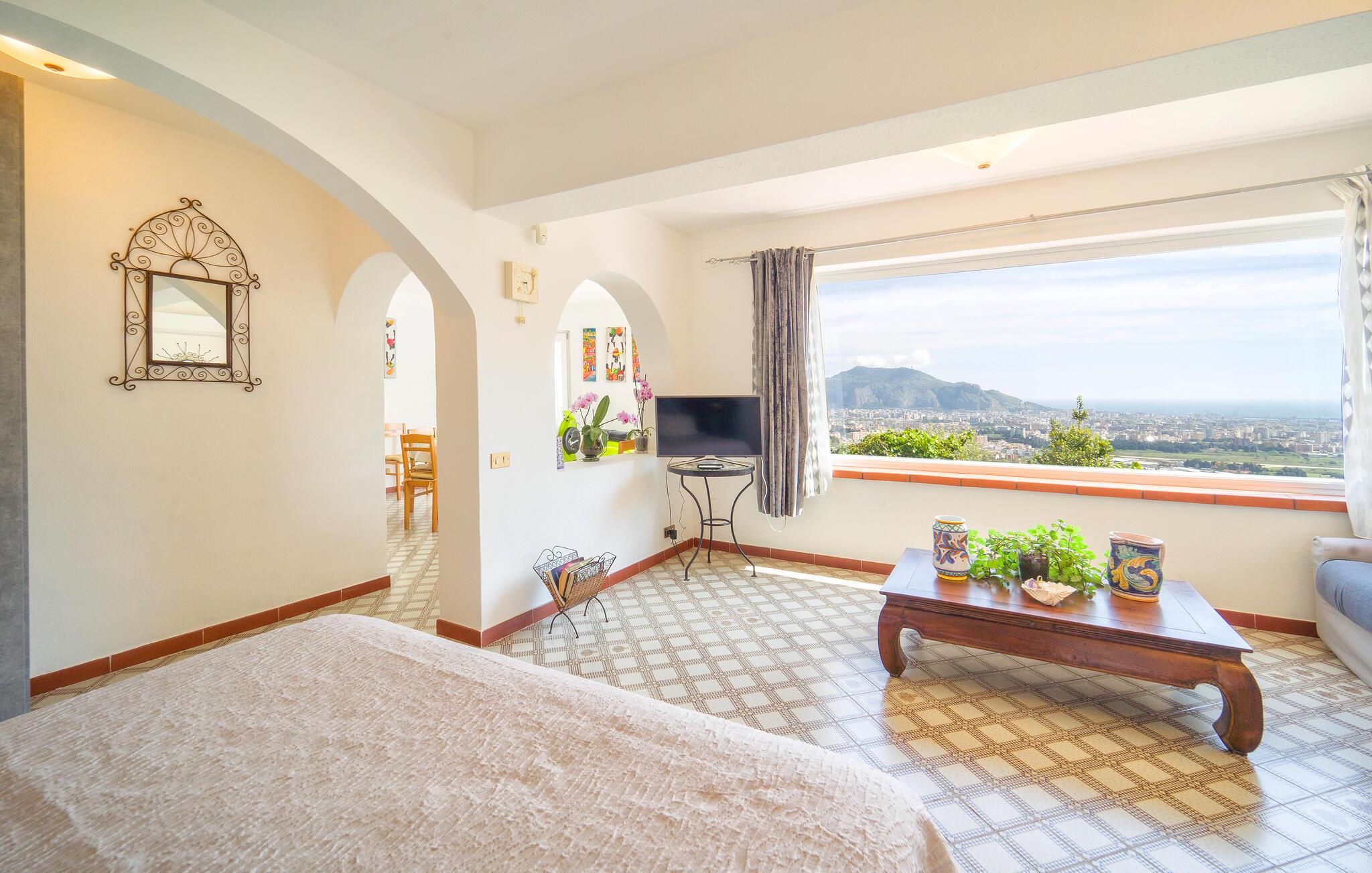 Beliggende i udkanten af ??Palermo byder jeres ferielejlighed jer velkommen med middelhavsstemning og en vidunderlig udsigt over kysten. Lad jer fortrylle af husets autentiske atmosfære og nyd den afslappede ro. Gå ind i den stilfulde lejlighed med sine kærligt designede værelser. Find jer godt til rette i den hyggelige opholdsstue og nyd den indbydende atmosfære med traditionelle buer og middelhavsdekorationer. Spisepladsen med sine store vinduespartier lægger op til hyggelige måltider, mens køkkenet giver mulighed for at tilberede lækre måltider.