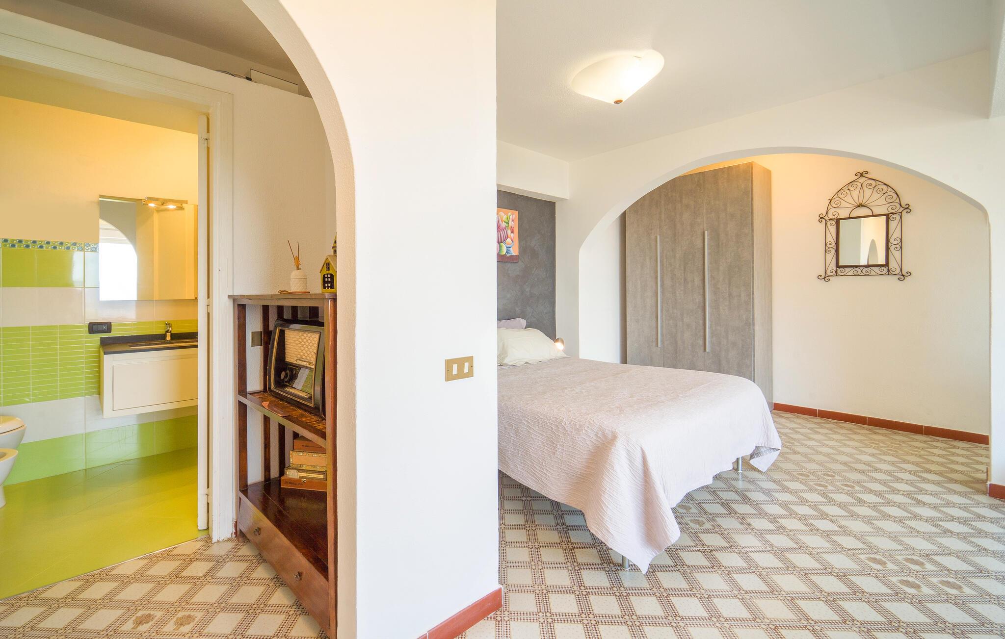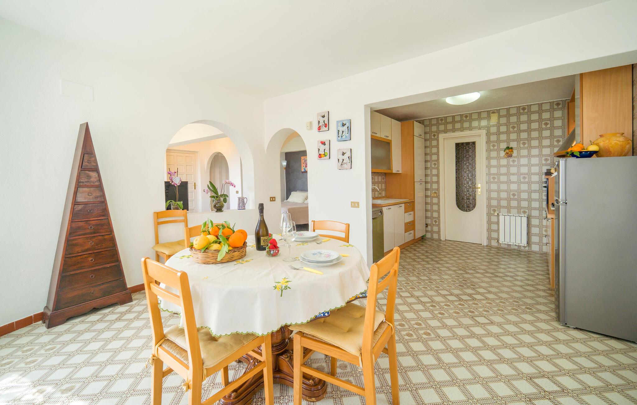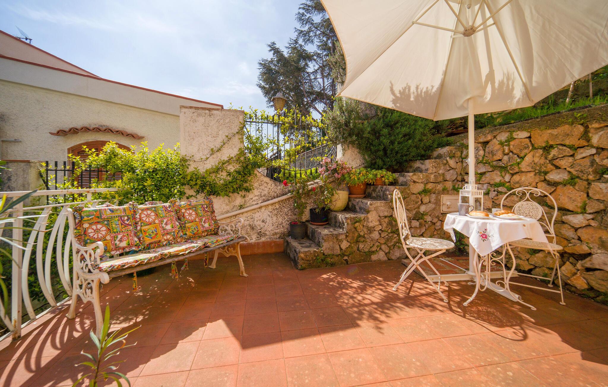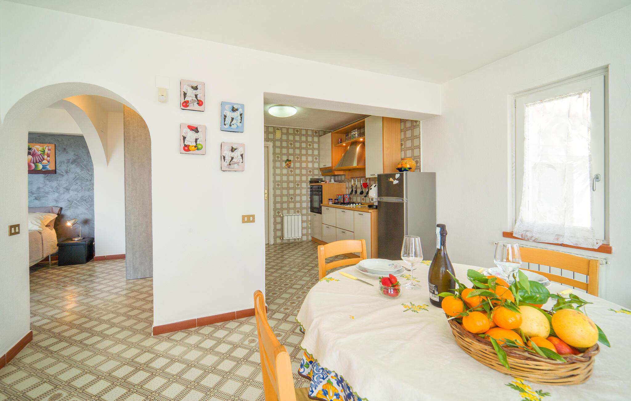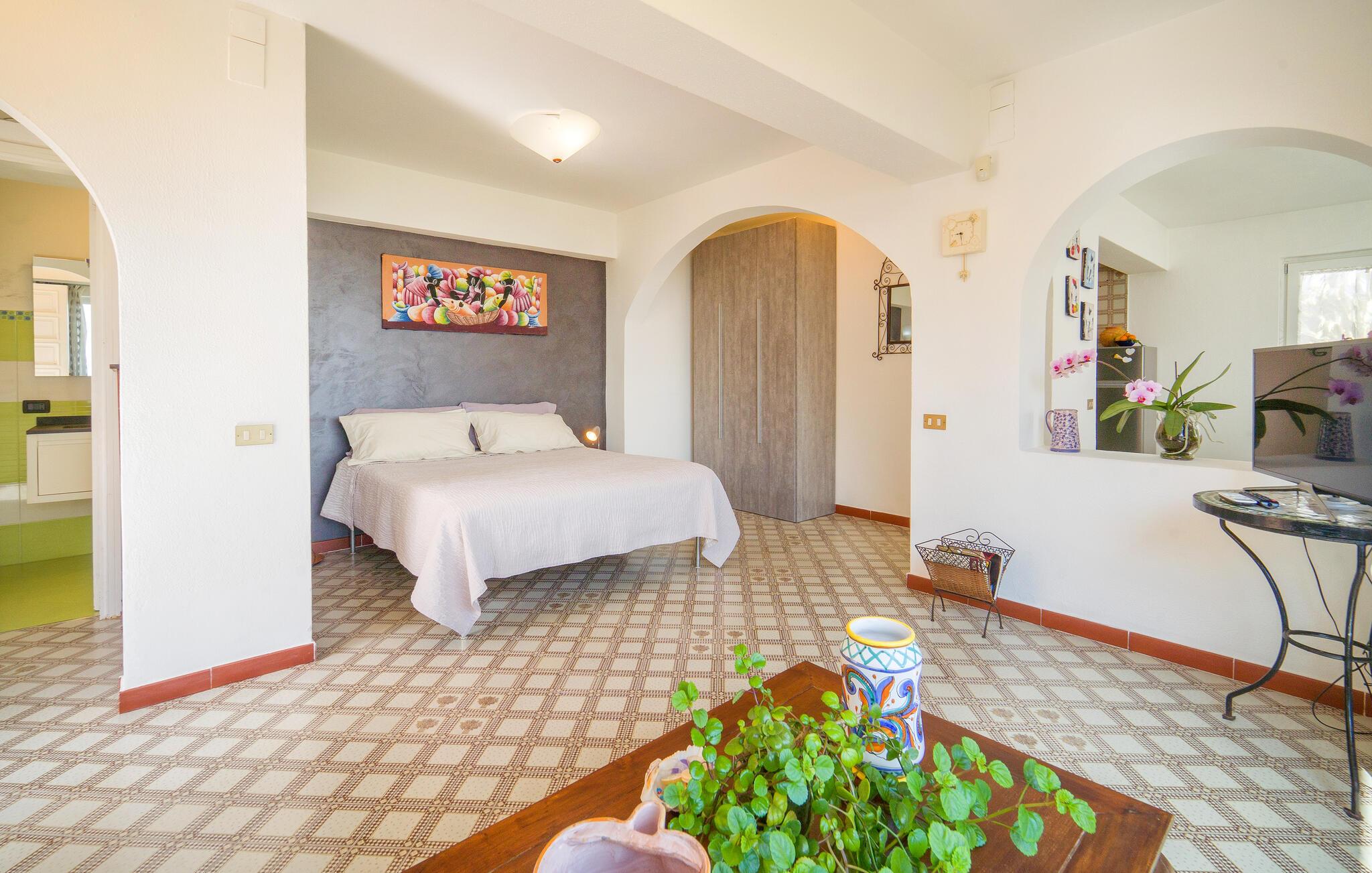 Beliggende i udkanten af ??Palermo byder jeres ferielejlighed jer velkommen med middelhavsstemning og en vidunderlig udsigt over kysten. Lad jer fortrylle af husets autentiske atmosfære og nyd den afslappede ro. Gå ind i den stilfulde lejlighed med sine kærligt designede værelser. Find jer godt til rette i den hyggelige opholdsstue og nyd den indbydende atmosfære med traditionelle buer og middelhavsdekorationer. Spisepladsen med sine store vinduespartier lægger op til hyggelige måltider, mens køkkenet giver mulighed for at tilberede lækre måltider.