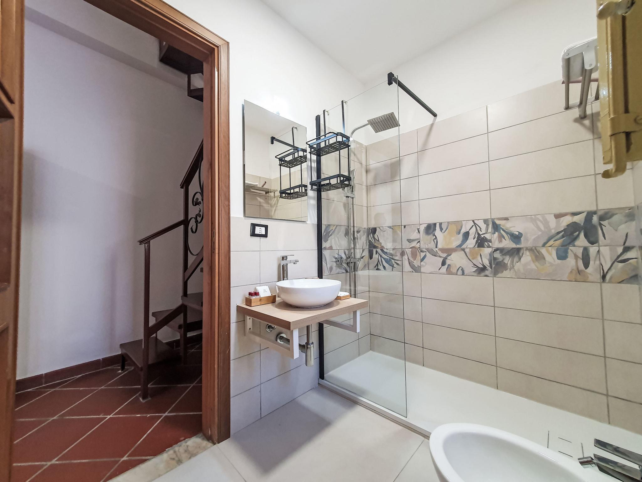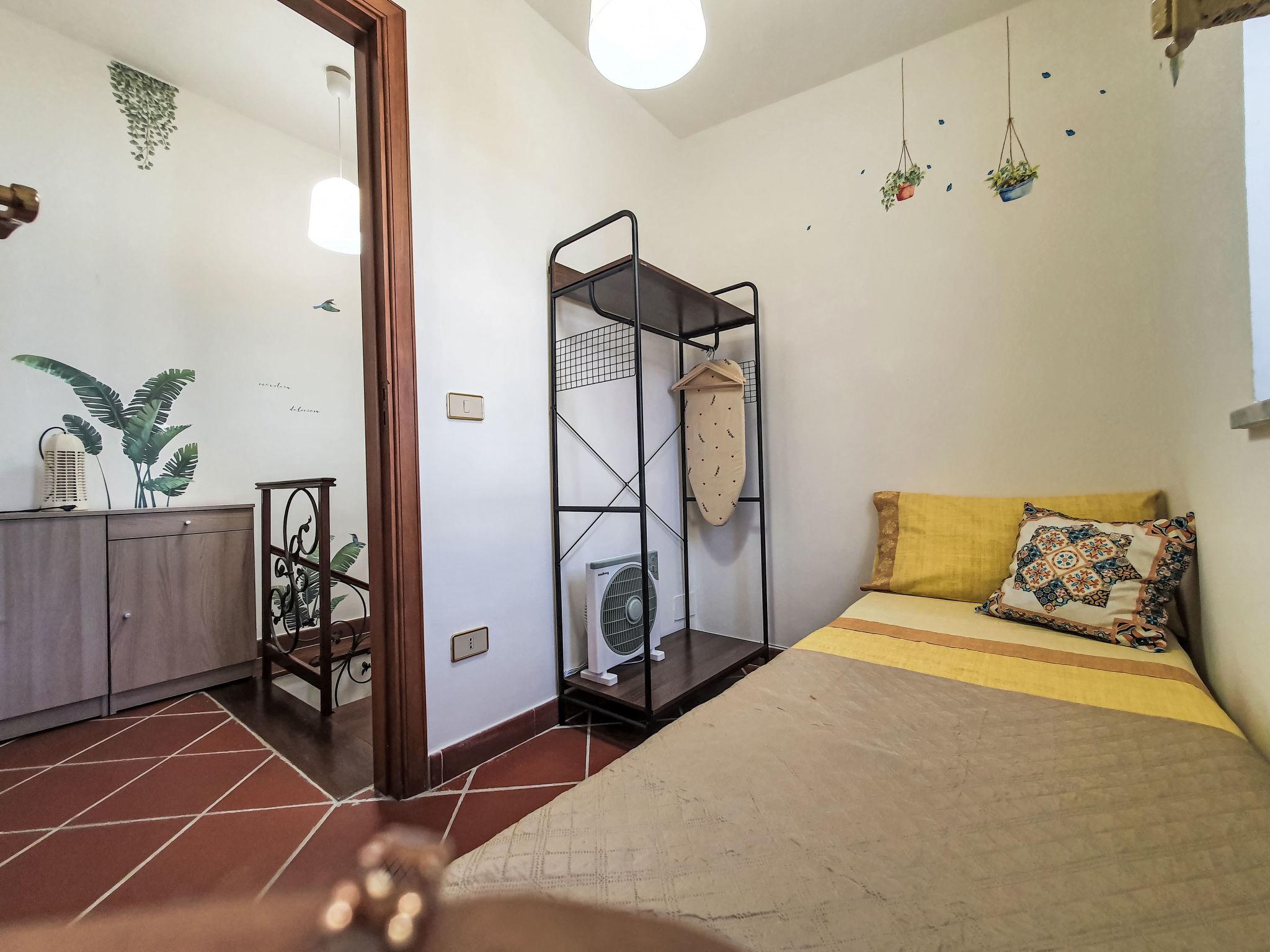 "Maya's Home Palermo", 3-room terraced house 50 m2 on 2 levels, on the ground floor. Renovated in 2024, comfortable and tasteful furnishings: living/dining room with 1 sofabed, TV, air conditioning and forced-air heating. Exit to the patio. Kitchenette (2 induction hot plates, toaster, kettle, microwave, electric coffee machine). Shower/bidet/WC. Upper floor: (spiral staircase), 1 double bedroom with TV, air conditioning and forced-air heating. 1 room with 1 wall-trunk bed and fan. Heating, forced-air heating, boiler (50 litres). Heating available only from 01.12. to 31.03, Heating not available in all rooms. Balcony furniture. Facilities: children's high chair, baby cot for up to 2 year olds, hair dryer. Internet (WiFi, free). Please note: apartment courtyard side. Maximum 1 pet/ dog allowed. Fire extinguisher. IT082053C2UABQSBOV