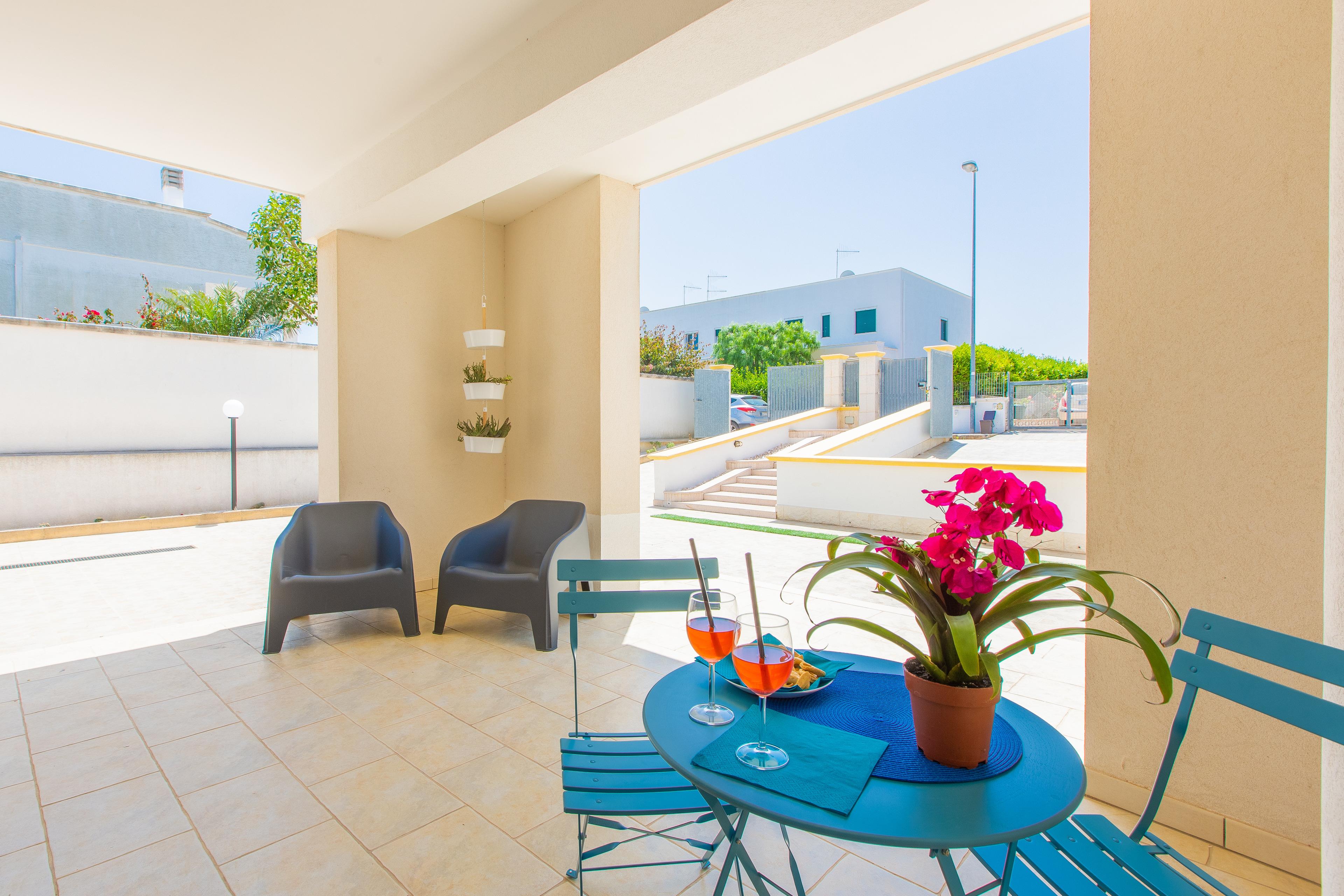 Gemeinsam mit den anderen Wohnungen:Die Unterkunft ist Teil eines Komplexes von vier Häusern, alle mit Veranda zur privaten Nutzung. Jede Wohnung hat ein eigenes Eingangstor.