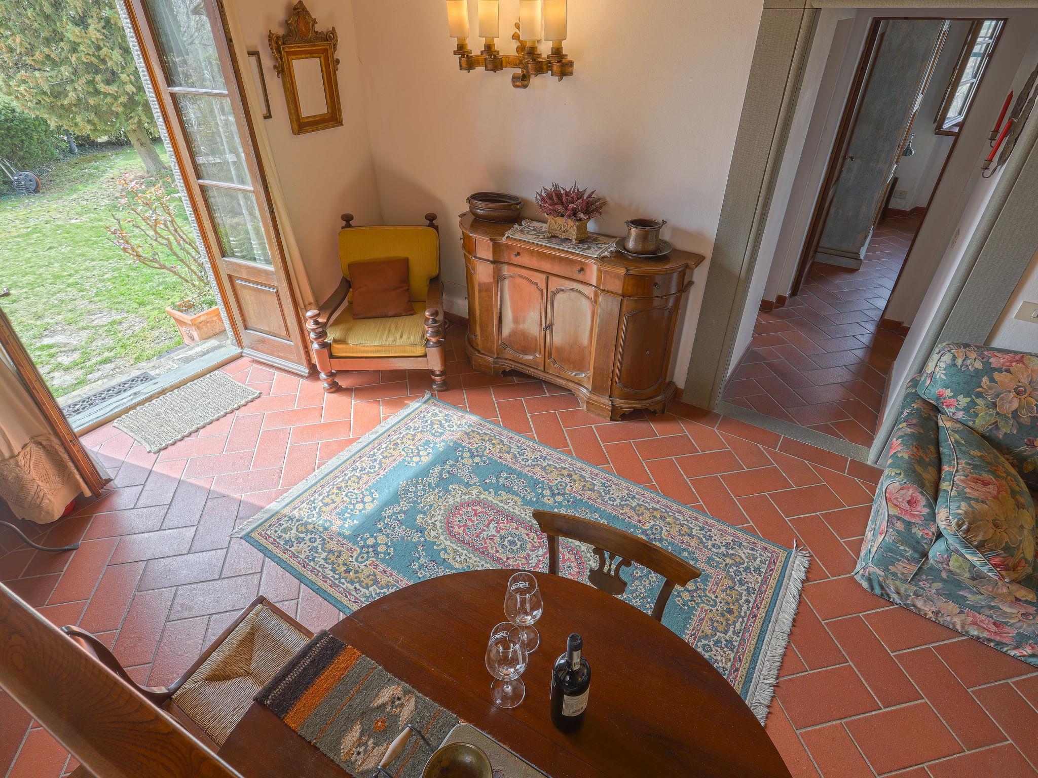 Beautiful on a vinyard cottage "Tenuzta di Vignole", semi-detached, renovated, surrounded by fields and vineyards. 3 km from the centre of Panzano, 7 km from the centre of Greve in Chianti, 35 km from the centre of Firenze, in a secluded, elevated position on top of a hill, in the countryside. For shared use: property 210'000 m2, garden (fenced) with plants and trees. 2.4 km long bumpy motor access (via unmade road). Parking on the premises. Shop 3 km, grocery 3 km, restaurant 3 km, bakery 3 km, bus stop "Panzano" 3 km, outdoor swimming pool 6 km. Golf course (18 hole) 22 km. Nearby attractions: Radda in Chianti 15 km, San Gimignano 40 km, Siena 40 km. Please note: car recommended. Baby equipment (included). Local sale of farm products. The owner lives on the same property.