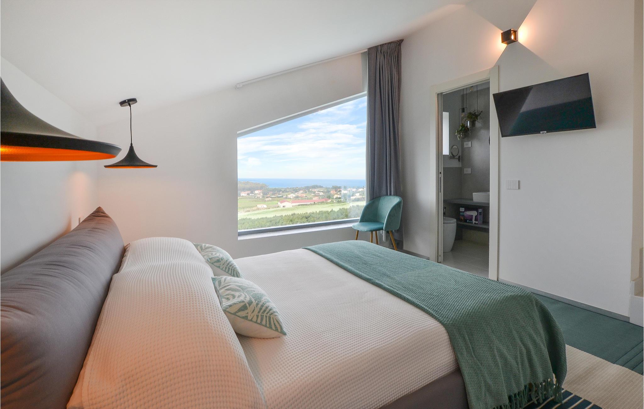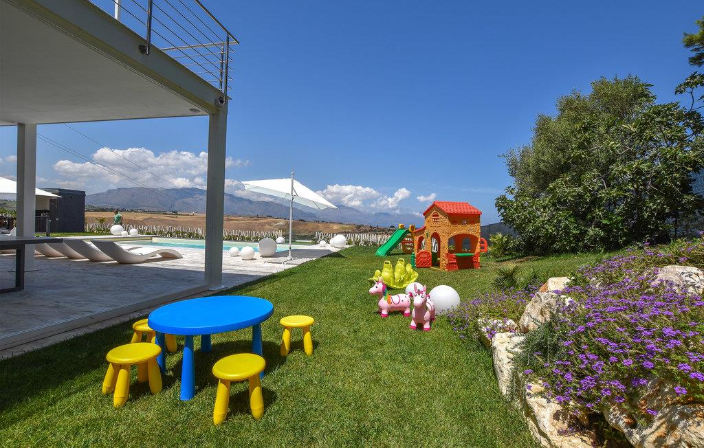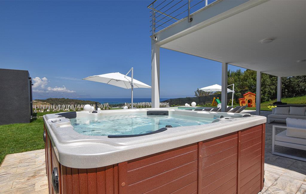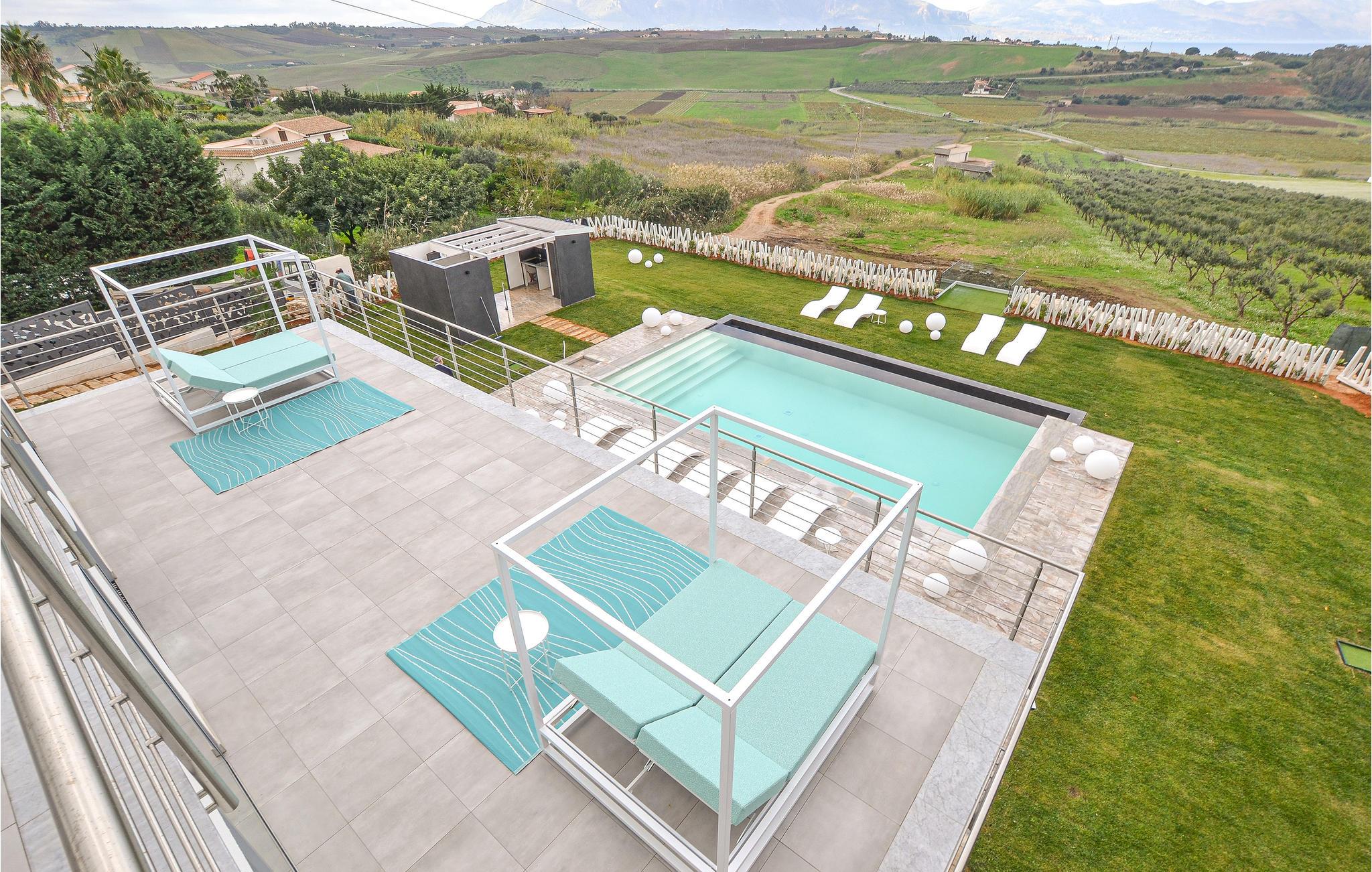 Beliggende kun 1000 meter fra sandstranden mellem Balestrate og Alcamo, på en lille bakke, hvorfra I kan nyde en storslået udsigt over havet og de omkringliggende bakker. Foruden swimmingpoolen finder gæsterne et udendørs spabad og store terrasser med sofaer og borde. Den store, veludstyrede have med græsplæne tilbyder også et udendørs køkken og en grill.
