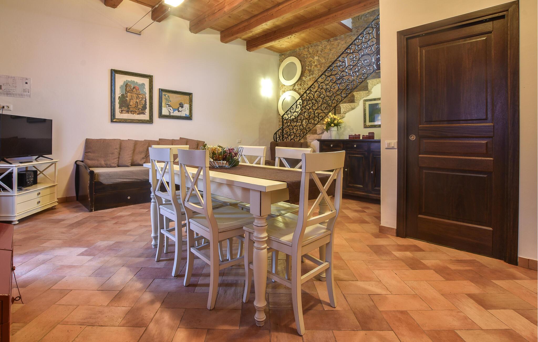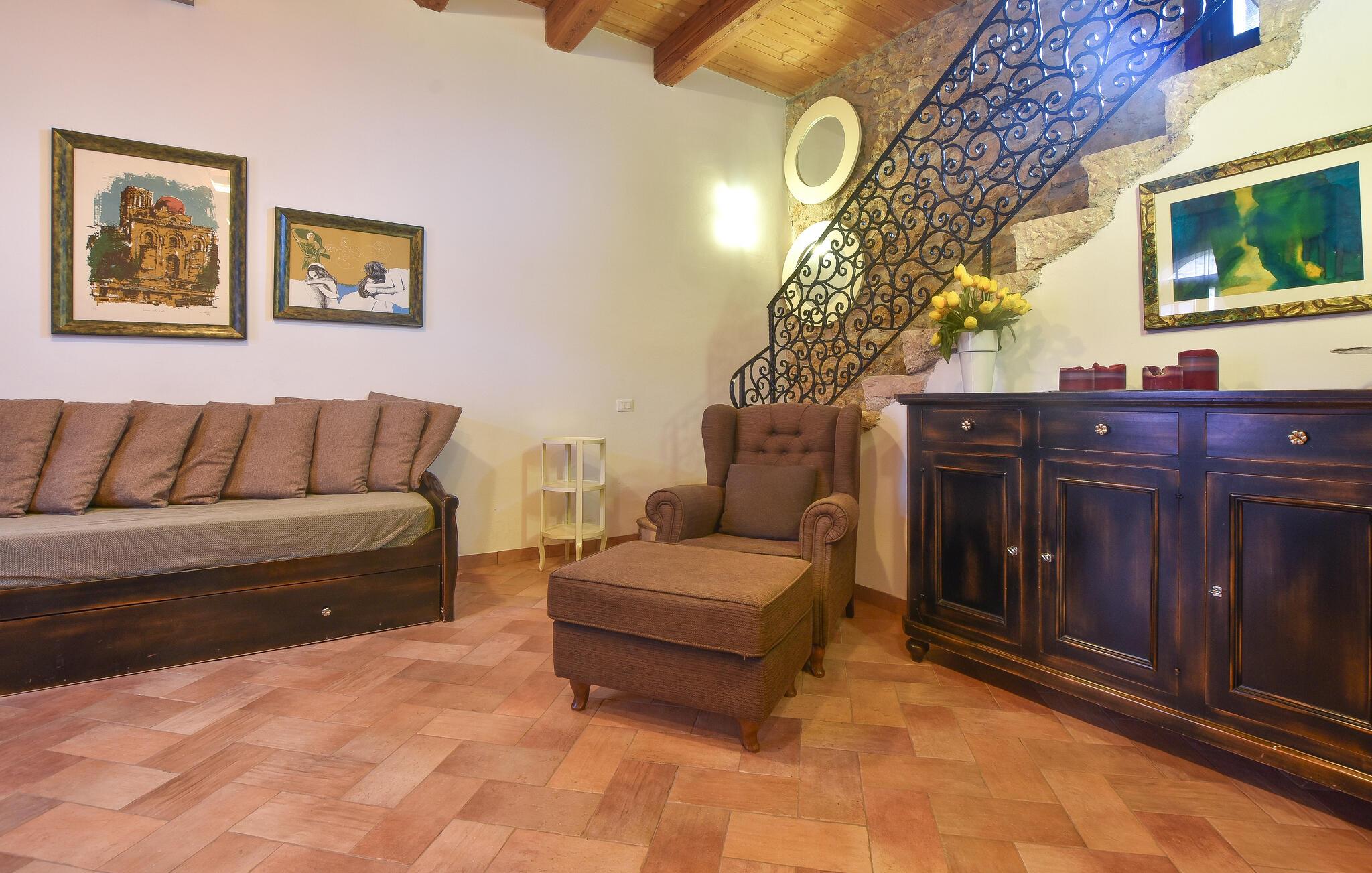 Nyd jeres ferie i det hyggelige feriehus med fælles pool. Drømmer I om en ferie i historiske mure, bør I kigge nærmere på dette feriehus. Det er det ideelle sted for en familieferie, da selv de små føler sig godt tilpas her. Føl jer godt tilpas i de indbydende lokaler, som er præget af svundne tiders charme med gamle trælofter og synligt murværk. Start dagen med en kop kaffe i det hyggelige køkken-alrum og glæd jer til dejlige aftener, hvor I kan sludre længe efter en begivenhedsrig dag. Tilbring vidunderlige timer udendørs på poolterrassen og nyd at solbade i en liggestol efter svømning. Oplev de smukke strande ved den nærliggende kyst eller besøg regionens maleriske landsbyer og historiske steder. En tur til Palermo er umagen værd for dem, der er interesserede i kultur og historie. For naturelskere er der vandreture i de nærliggende naturreservater. Partinico kombinerer afslapning, aktivitet og siciliansk kultur - det ideelle udgangspunkt for en varieret ferie.