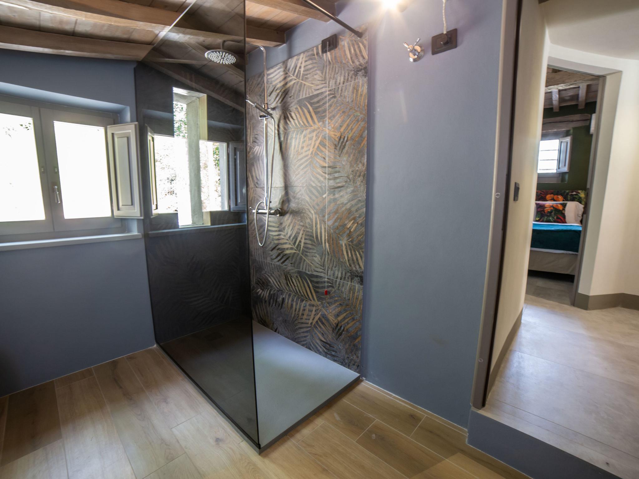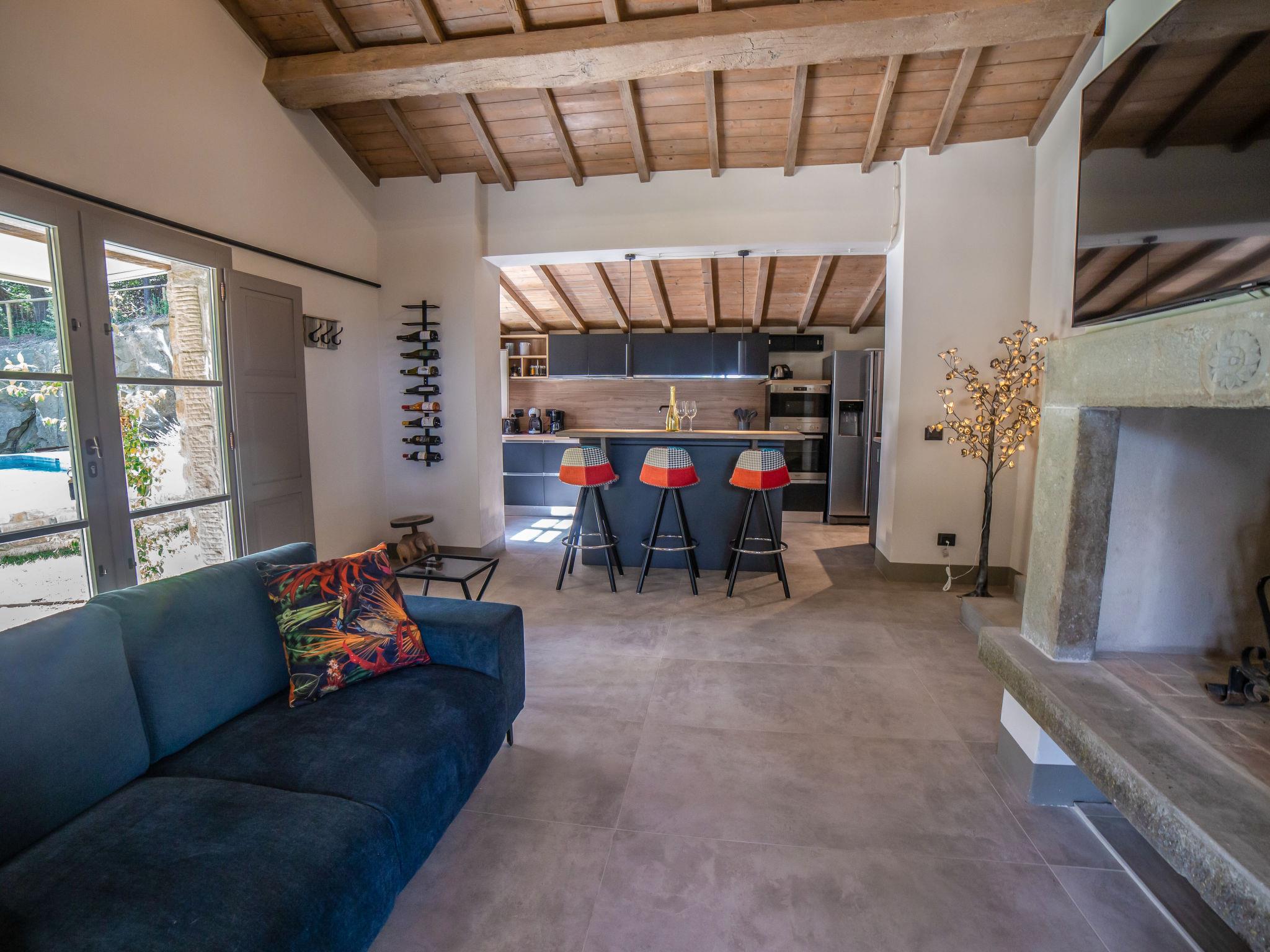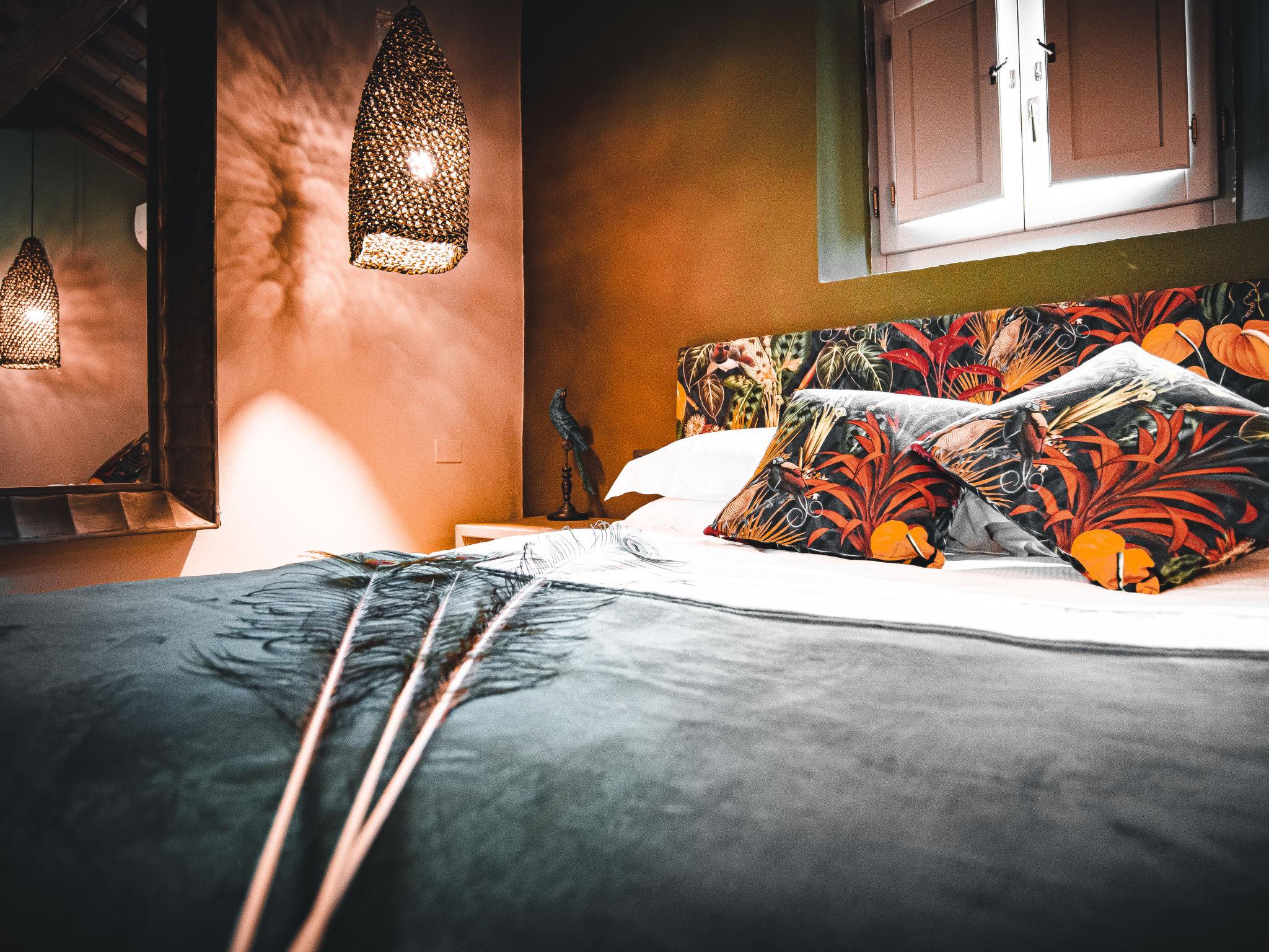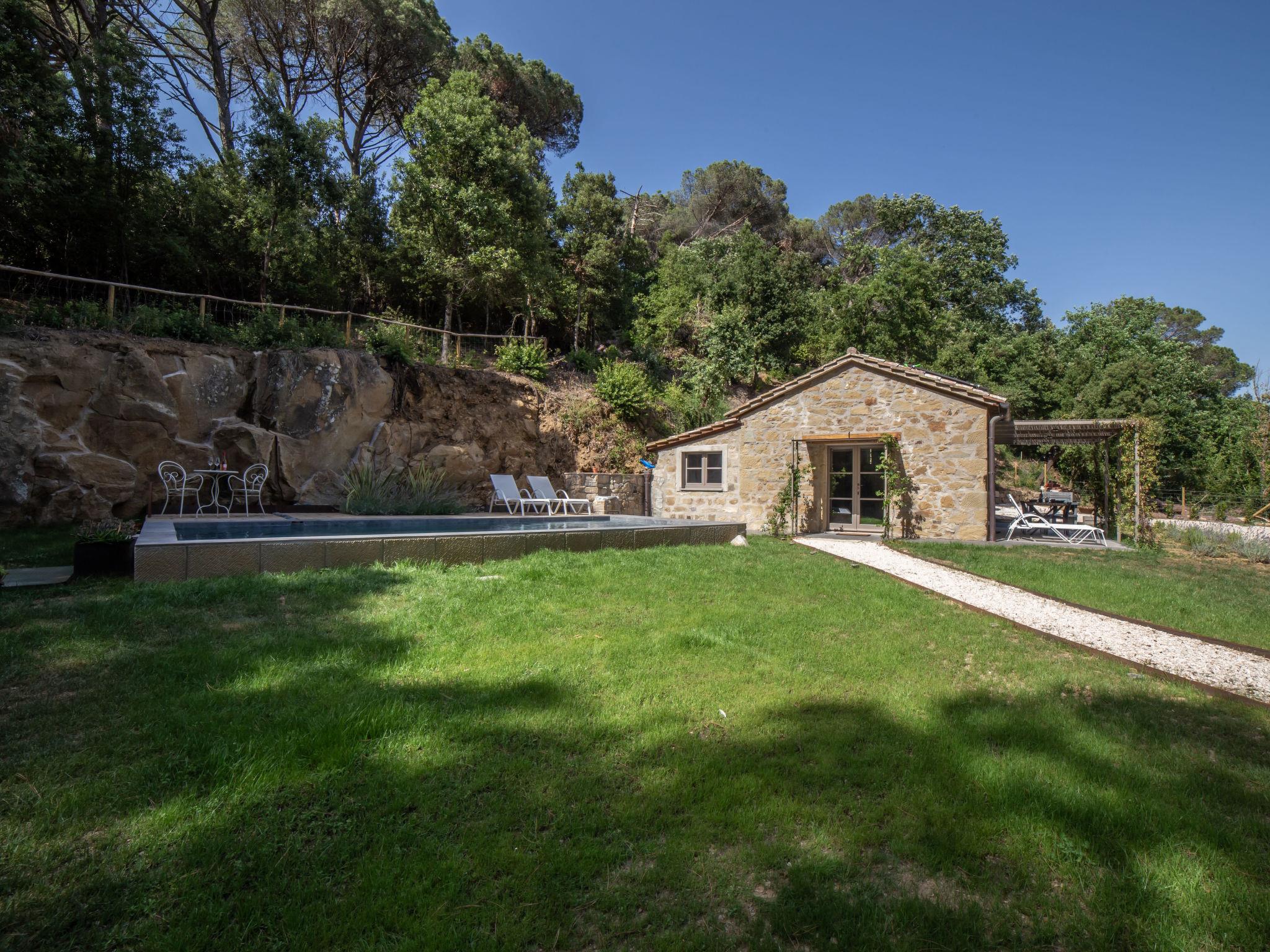 Modern, luxurious chalet "Il Talamo", detached, surrounded by trees. 7 km from the centre of Passignano Sul Trasimeno, 1 km from the centre of Castel Rigone, on top of a hill, 6 km from the lake. Private: property 1 ha, garden 2'000 m2 (fenced), swimming pool (8 x 3 m, depth 130 cm, seasonal availability: 01.May. - 30.Oct.). Patio, garden furniture, barbecue. Linen change weekly. Towel change weekly. Room cleaning weekly. Pre-arrival grocery service. Motor access (20 m via unmade road). Parking on the premises. Grocery 7 km, supermarket 7 km, restaurant 1 km, bus stop 80 m, ferry "Isole Del Trasimeno" 13 km, grass beach 7 km. Nearby attractions: San Feliciano 11 km, Tuoro Sul Trasimeno 13 km, Castiglione Del Lago 25 m, Cortona 30 km, Perugia 40 km, Assisi 50 km. Please note: car recommended.