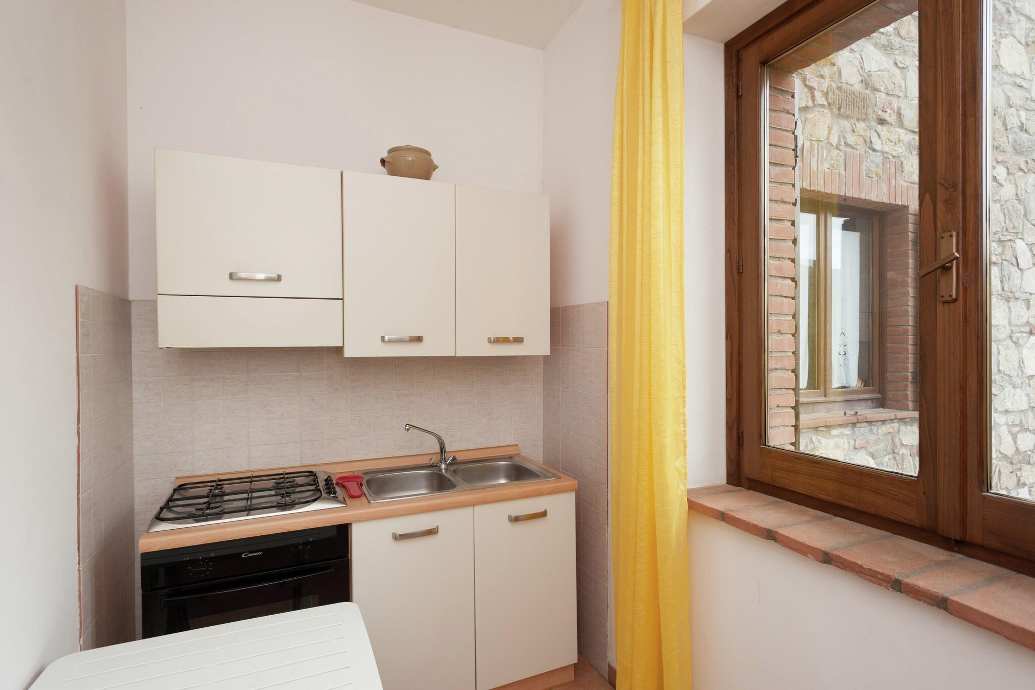 Beliggende i det fredelige landskab i Passignano sul Trasimeno, er dette bondehus med 1 soveværelse perfekt til et par eller en lille familie, der søger en naturfyldt ferie. Ejendommen tilbyder en fælles swimmingpool og hyggelig opvarmning, ideel til et behageligt ophold året rundt. Naturelskere kan nyde rolige gåture i skoven kun 200 m væk eller udforske de naturskønne stier på cykel. Trasimenosøens glitrende vand ligger kun 8 km væk, perfekt til en svømmetur eller en picnic ved søen. Udforsk den rige historie i nærliggende byer som Perugia og Cortona, kendt for deres middelalderlige arkitektur og pulserende kultur. Bondehuset har et veludstyret køkken, en afslappende stue med tv og et rummeligt soveværelse med en dobbeltseng og en enkeltseng. Udenfor inviterer haven dig til at slappe af med en grill, mens børnene kan lege på legeredskaberne. Et kæledyr er velkommen uden ekstra omkostninger. Offentlig transport er bekvemt placeret 8 km væk, hvilket sikrer nemme transportmuligheder.