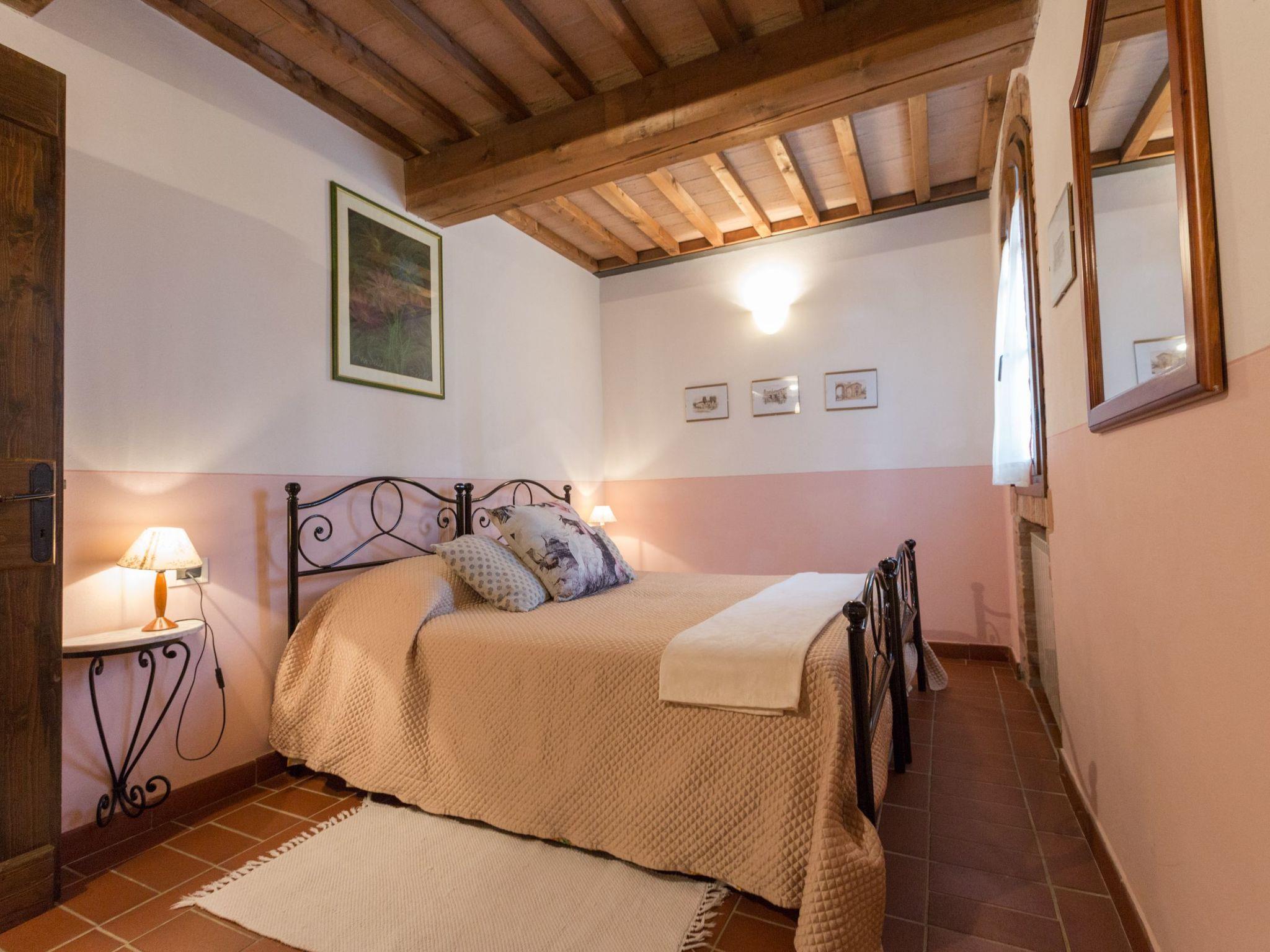 The holiday home has 8 comfortable flats furnished in Tuscan style, all with private terraces, terracotta floors and wood-beamed ceilings. The house is surrounded by a 7000-square-metre garden with swimming pool (20x8 m, open from May to October, depth: 1.4 to 3.0 metres) with hydro-massage corner, table tennis table, children's playground, outdoor barbecue and bocce court.