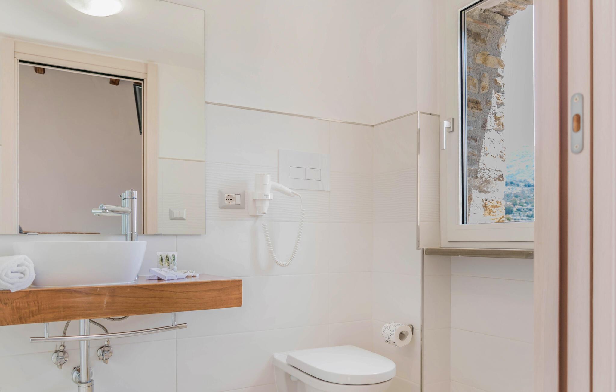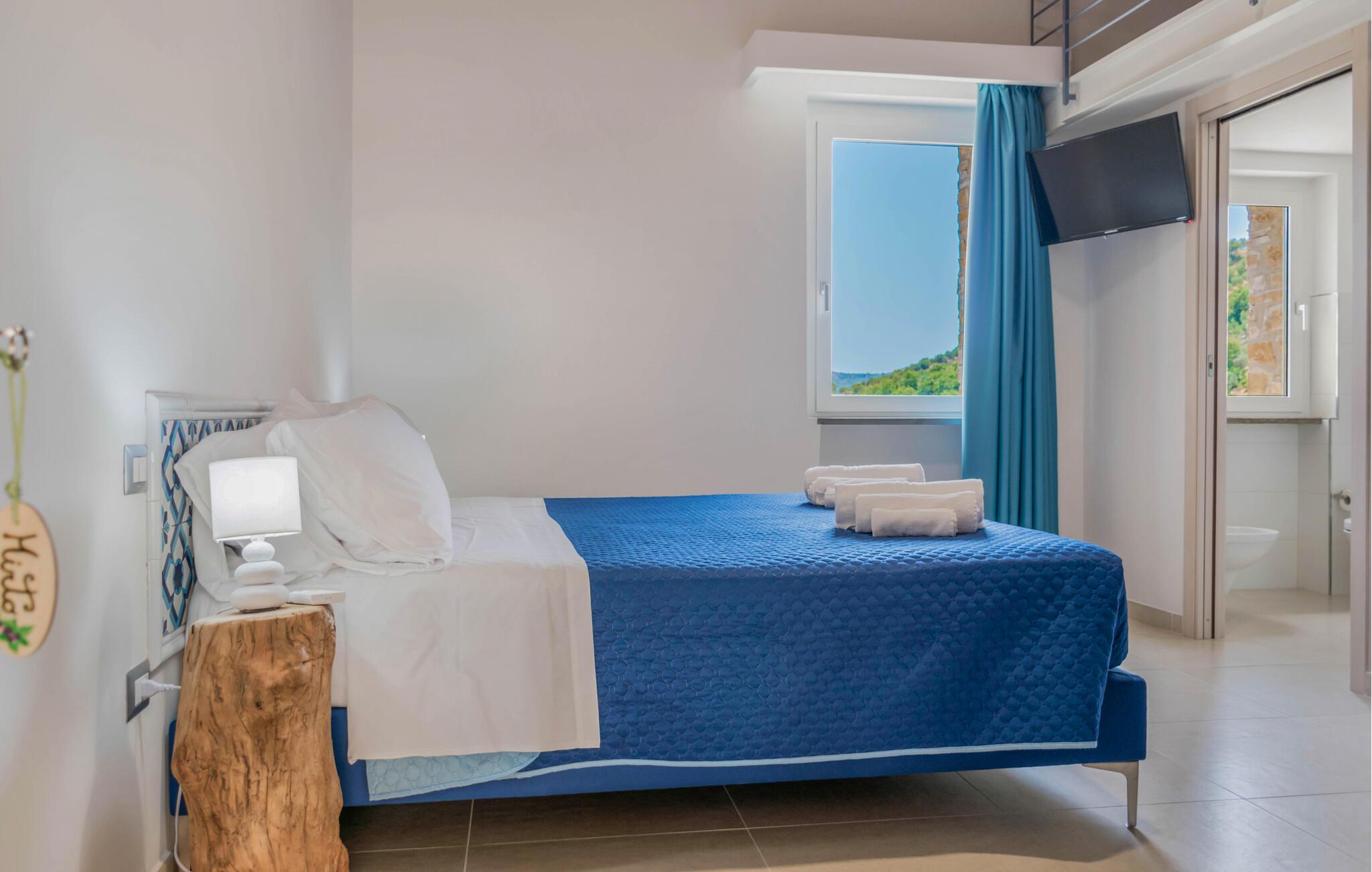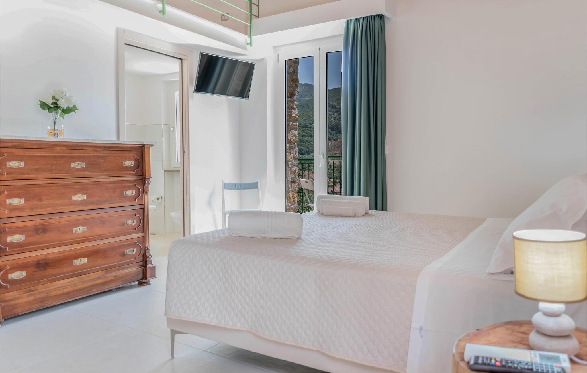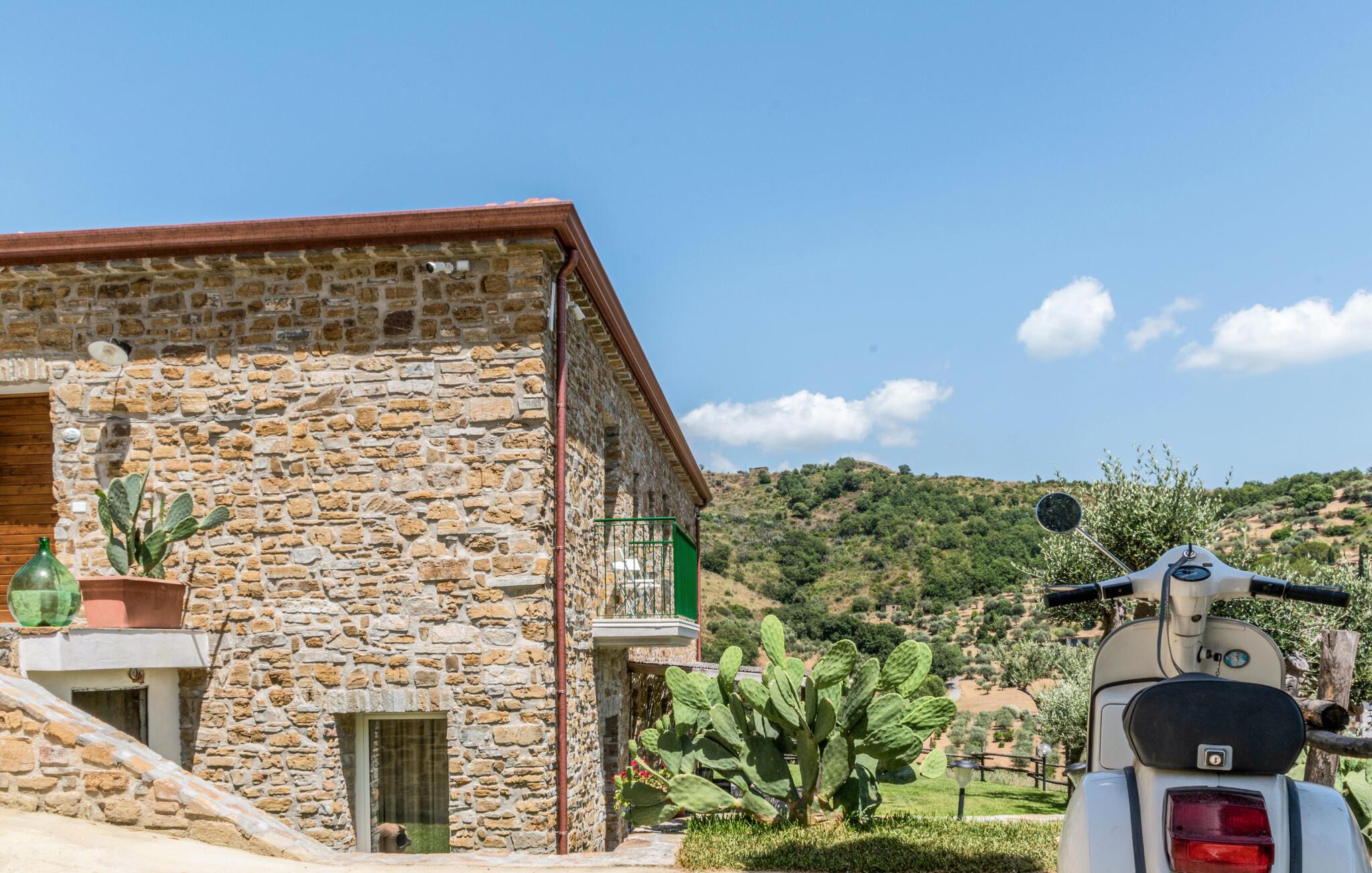 Bliv betaget af det moderne og komfortable interiør i dette feriehus, beliggende i det maleriske Cilento-landskab. Det er ideelt til længe ventede familiesammenkomster eller hyggelige dage med venner. Tilbered lækre pastaretter under sjove aftener med madlavning og mindes svundne tider. Find sammen til hyggelige filmaftener eller fordyb jer i jeres yndlingsferielæsning i en god krog.