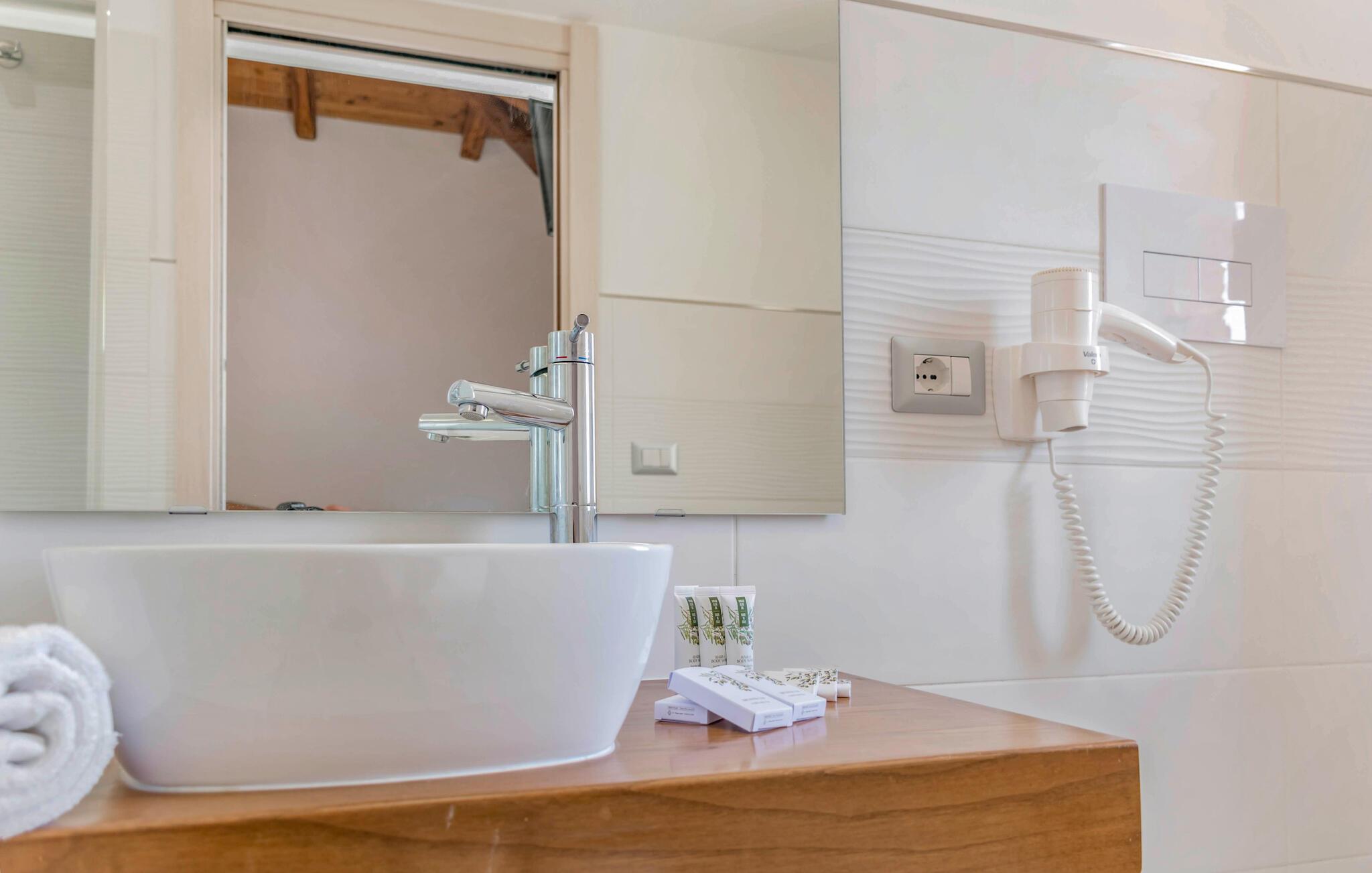 Begynd dagene med en duftende espresso på balkonen, mens I beundrer det fortryllende panorama. Bagefter kan I nyde en afslappet morgenmad under parasollerne i den velholdte have. Ved solnedgang kan I nyde den fredelige atmosfære med et glas vin udendørs.