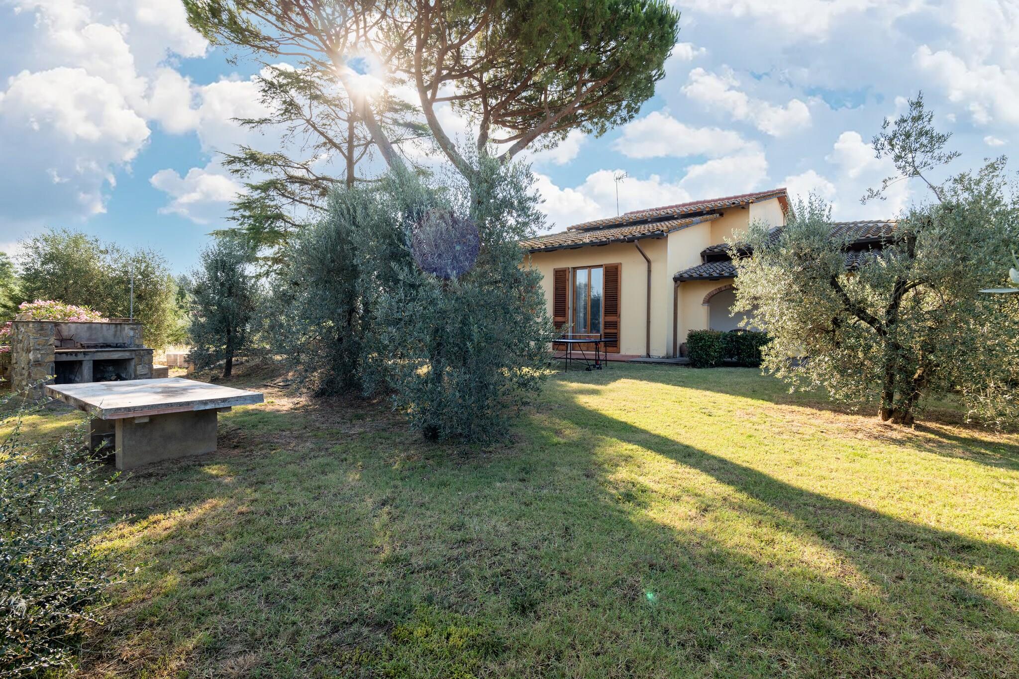 Nyd en afslappende ferie i dette lyse og komfortable dobbelthus med privat swimmingpool, kun 600 m fra den charmerende middelalderlandsby Pergine Valdarno. Huset er designet med komfort i tankerne og kan prale af rummelige interiører og store vinduer, der indrammer panoramaudsigt over bølgende bakker med vinmarker, olivenlunde og middelhavsgrønt. Ideelt til familier eller vennegrupper. Huset er fordelt på en stueetage og et loft. Stueetagen har en rummelig stue med spiseplads og et fuldt udstyret tekøkken. Ovenpå tilbyder loftet et dobbeltværelse med eget brusebad, et værelse med to enkeltsenge, et andet dobbeltværelse med eget brusebad og et fjerde soveværelse med to enkeltsenge. Der er også et komplet badeværelse for ekstra bekvemmelighed. Ejendommen ligger på en fuldt indhegnet grund på 4.800 m² og tilbyder Wi-Fi, aircondition, parkering og uafhængig adgang via en privat have. Udforsk skønheden i Øvre Valdarno, inklusive Casentino Forests National Park, perfekt til vandreture, cykling eller ridning. Dagsture til Arezzo, Cortona og Trasimenosøen er inden for rækkevidde, og shoppere vil elske Prada Outlet (12 km) og Valdichiana Village (53 km). Værtsfamilien bor privat bag ejendommen, hvilket sikrer gæsternes fuldstændige privatliv.