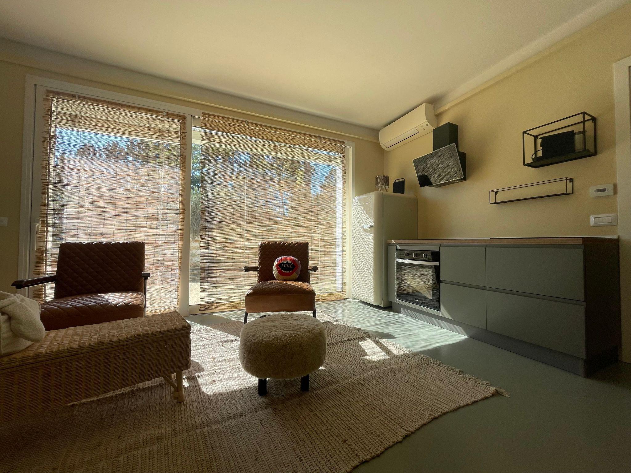 This charming holiday flat for two people is located on the ground floor and offers an idyllic retreat in the hills of the Marche region. The flat is characterised by its open-plan design, with windows that can be darkened to ensure a restful night's sleep. Air conditioning is available throughout for comfort all year round. Guests can enjoy the tranquillity of nature in the communal garden or spend relaxing hours on their own terrace.