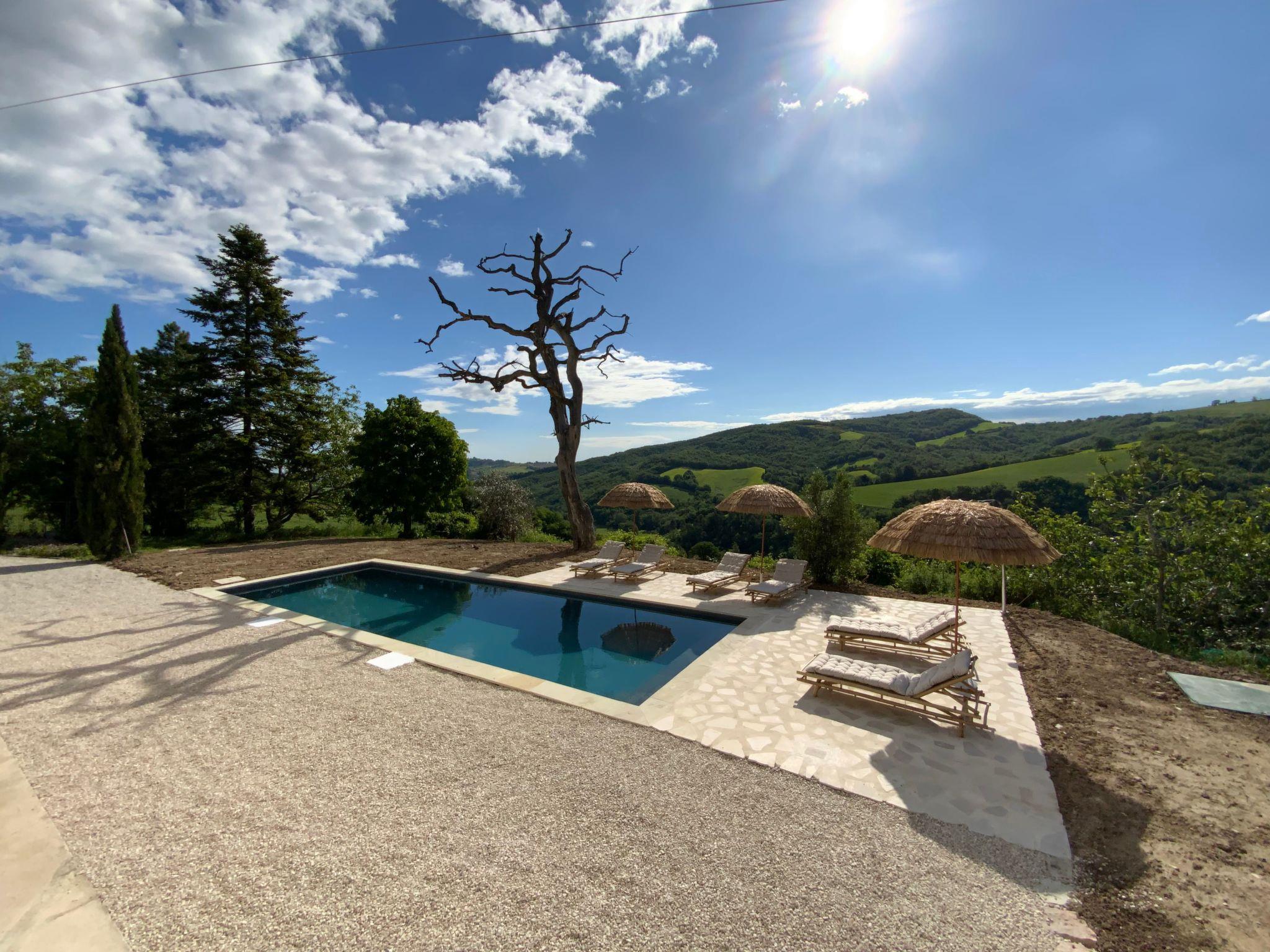 This charming holiday flat in Pergola can accommodate up to 3 people and is ideal for a relaxing stay in the Marche region. It is located on the ground floor and has a bedroom and a bathroom with shower. A highlight is the pool, which is shared with other guests, as well as the picturesque garden, which is also shared and invites you to linger outdoors. The glass patio doors offer a wonderful view of the illuminated swimming pool. The adjoining terrace with BBQ offers additional space for cosy hours.