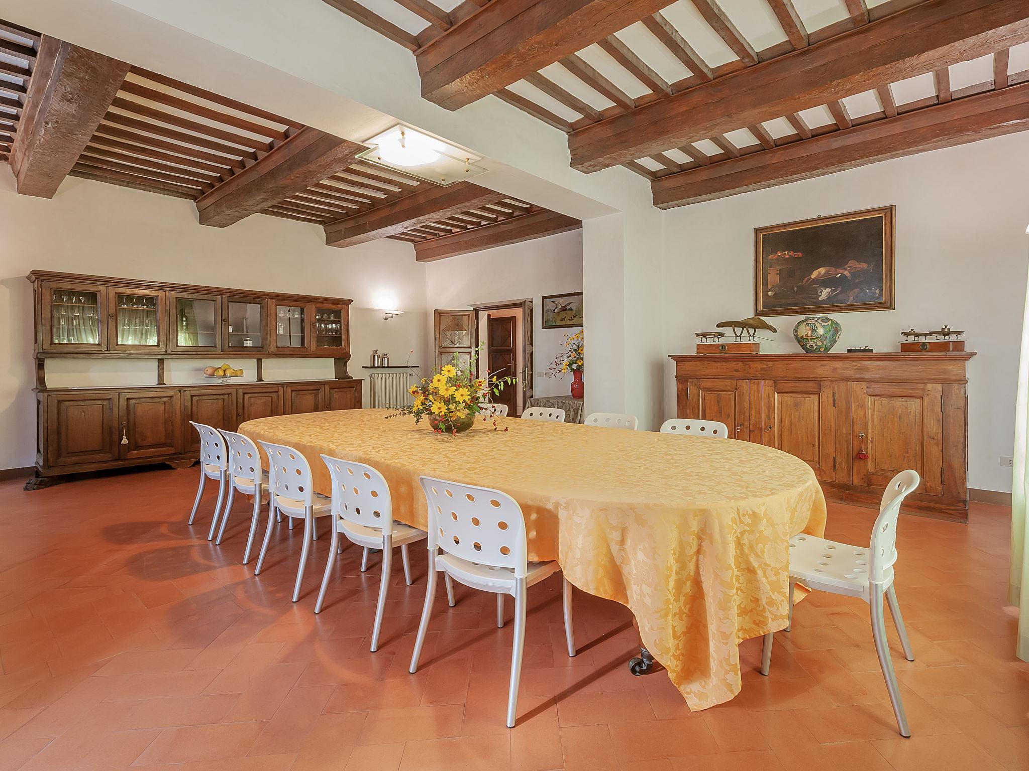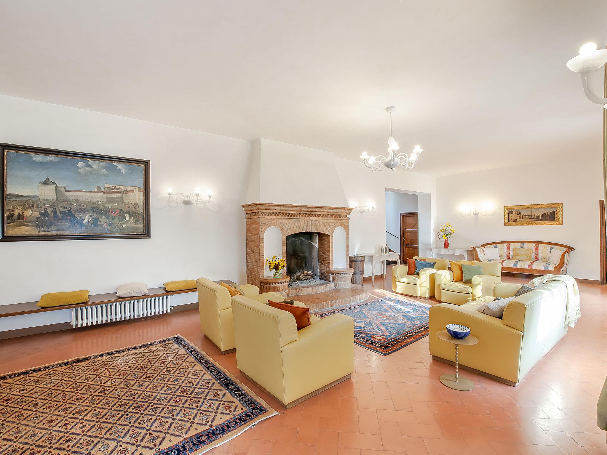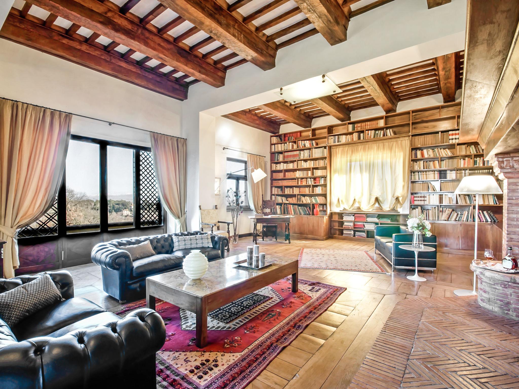 13-room villa 700 m2 on 3 levels. Spacious, tasteful and stylish furnishings: large entrance hall with open-hearth fireplace. Exit to the garden. Large dining room. Exit to the garden. Lounge with satellite TV (flat screen), DVD. Exit to the garden. Computer room 18 m2. Exit to the garden. Kitchen 37 m2 (6 hot plates, oven, dishwasher, microwave, freezer, electric coffee machine, Capsules for coffee machine (Segafredo)) with open-hearth fireplace, dining table and satellite TV (flat screen). Sep. WC. Upper floor: large lounge with panoramic window with open-hearth fireplace and library. Exit to the balcony. 1 large double bedroom 40 m2, window onto the living room with bath/bidet/WC and satellite TV (flat screen). 1 room 30 m2 with 2 beds, bath/shower/bidet/WC and satellite TV (flat screen). Exit to the balcony. 1 double bedroom 27 m2 with 2 beds and bath/shower/bidet/WC. 1 double bedroom 17 m2 with bath/shower/bidet/WC and satellite TV (flat screen). 2nd upper floor: 1 large double bedroom 35 m2 with panoramic window with open-hearth fireplace, shower/bidet/WC, double hand-basin and satellite TV (flat screen). 1 double bedroom 16 m2 with shower/bidet/WC and satellite TV (flat screen). 1 room 15 m2 with 2 beds and bath/shower/bidet/WC. 1 double bedroom 15 m2. 1 room 23 m2 with 2 beds and satellite TV (flat screen). Bath/bidet/WC. Gas heating (extra). Heating available only from 15.10. to 15.04. Panoramic view of the countryside. Facilities: washing machine, dryer, safe, iron, mosquito net, children's high chair, hair dryer, logs (free). Internet (WiFi, free). Parking (fenced). IT054039B902016521