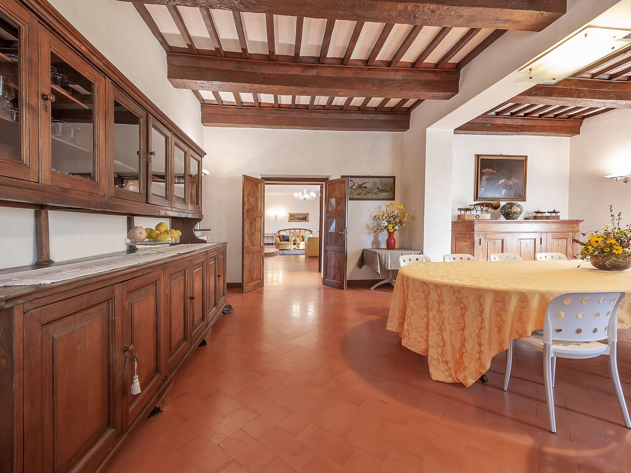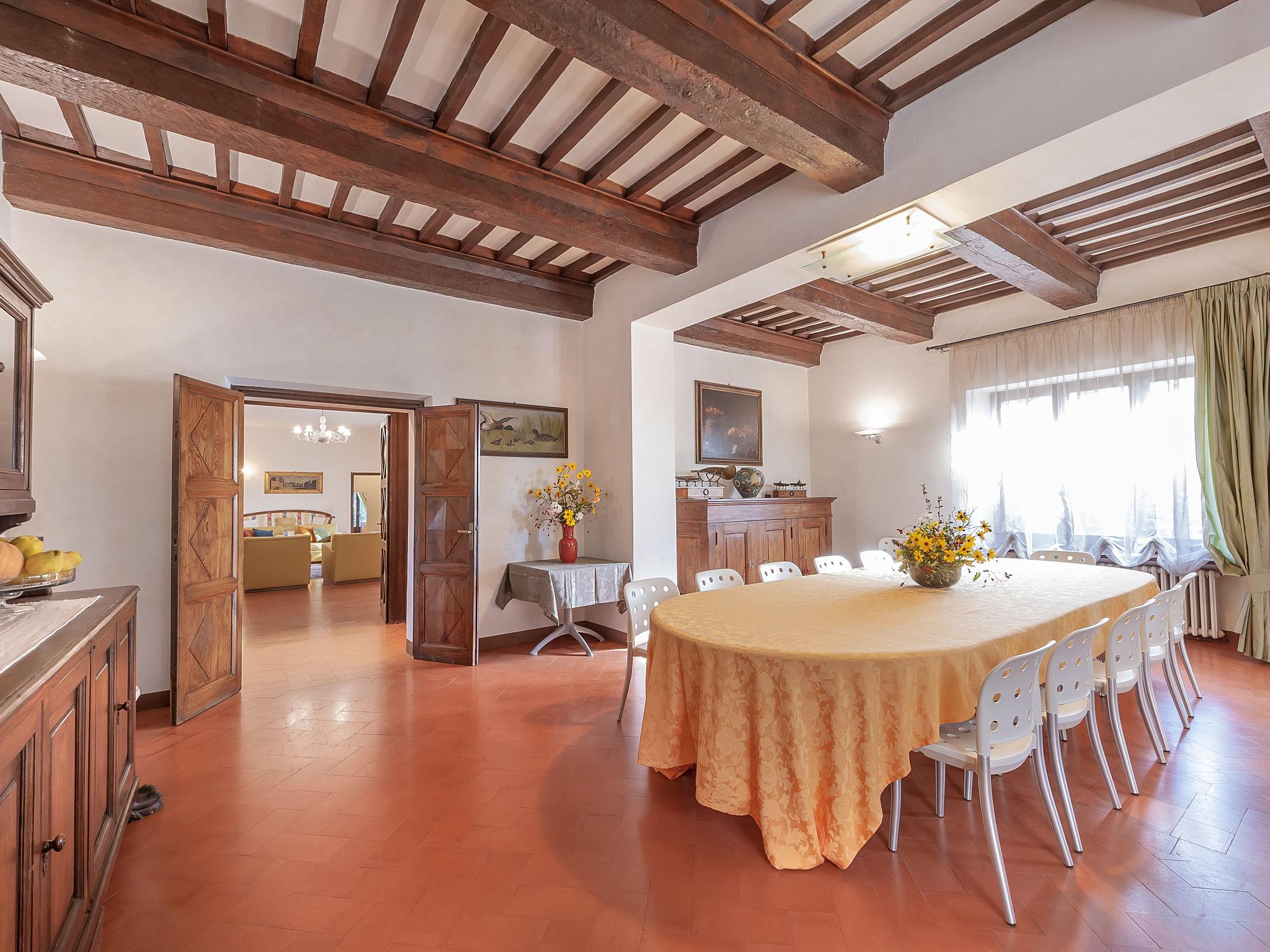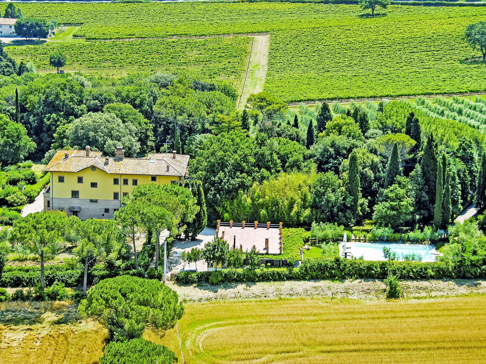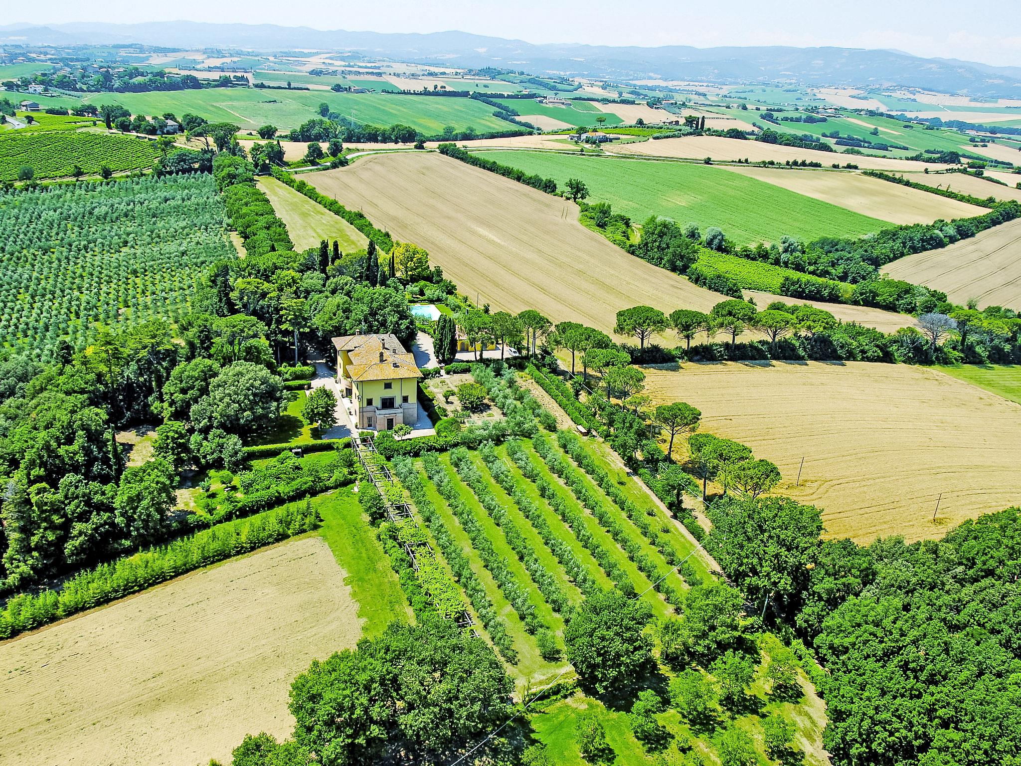 Exclusive 18th century villa immersed in a wonderful park luxurious villa "Angeli", renovated, surrounded by trees. In the hamlet Sant'Enea 10 km from the centre of Perugia, in a quiet, sunny position, 24 km from the lake, in the countryside. Private: property 17 ha (fenced), park, beautiful garden to relax, swimming pool with privacy (6 x 14 m, depth 120 - 140 cm, seasonal availability: 01.May. - 30.Sep.). Unconventional pool shape. Shower/WC in the pool area, outdoor shower, pergola, garden furniture, barbecue house. In the house: WiFi, solarium, washing machine, tumble dryer, heating available only from 15.Oct. - 15.Apr. (extra). Linen change weekly (suppl. charge extra). Room cleaning (extra). Cook on request. Breakfast on request. Pre-arrival grocery service. Motor access (500 m via unmade road). Parking. Grocery 1 km, supermarket 8 km, restaurant 1 km, bathing lake "Trasimeno" 24 km. Golf course (18 hole) 13 km, tennis 10 km, riding stable 10 km. Nearby attractions: Panicale 27 km, Bevagna 30 km, Todi 33 km, Passignano sul Trasimeno 35 km, Assisi 35 km, Città Della Pieve 37 km. Groups of teenagers on request only. Suitable for events. The Villa has its own chapel, covered barbecue area equipped with wood-burning brazier, pizza oven, gas hob, sink and refrigerator.