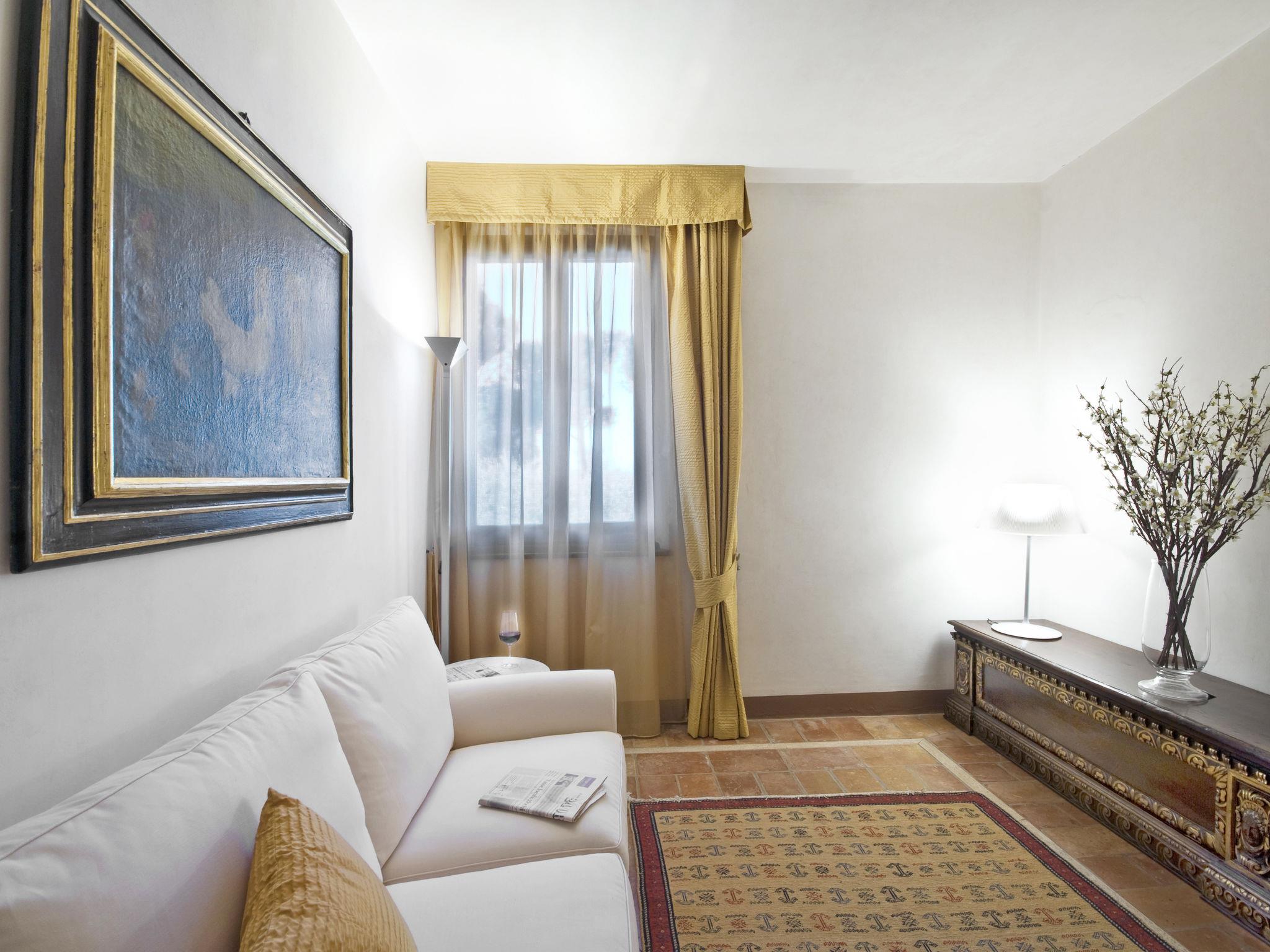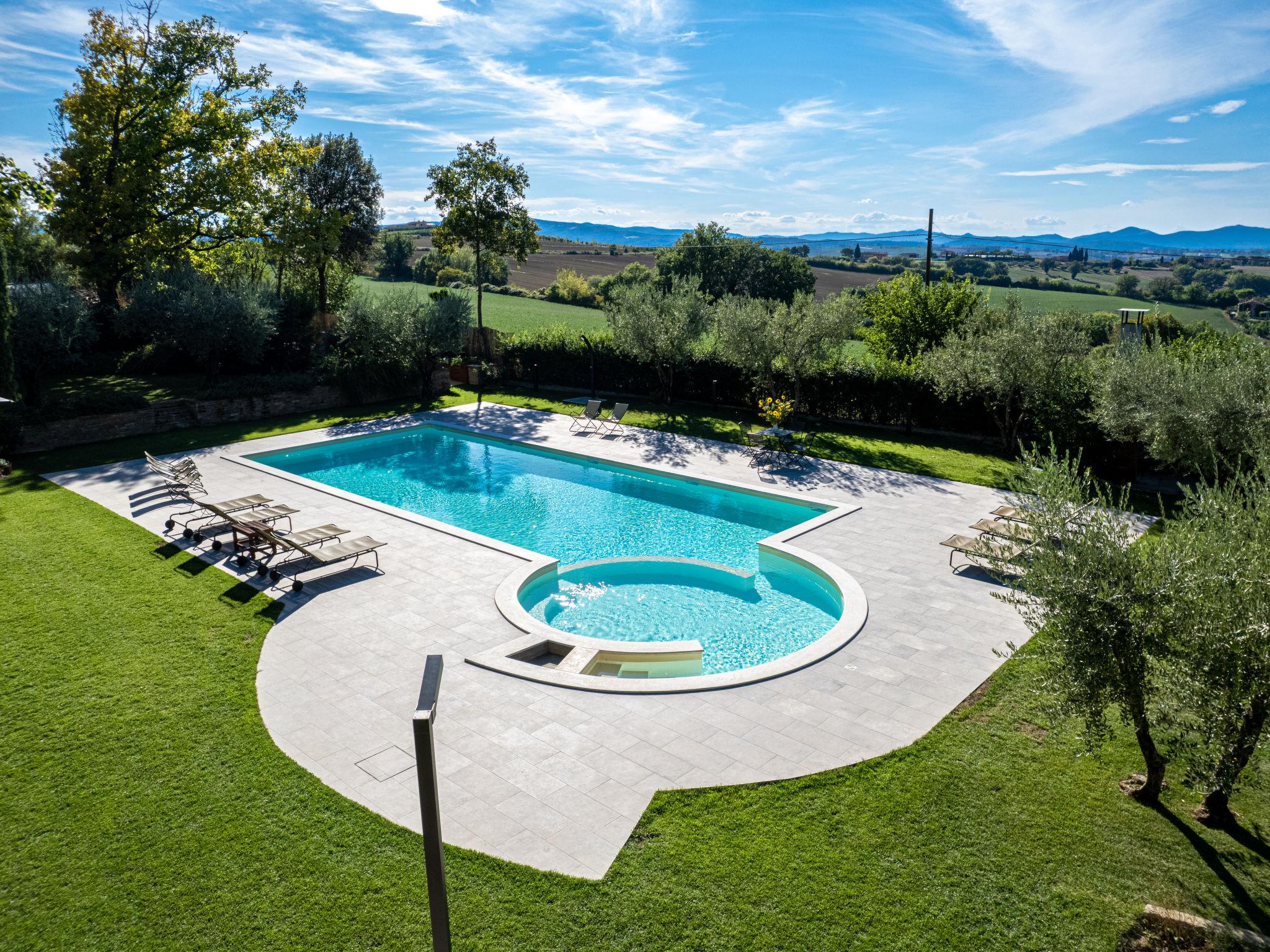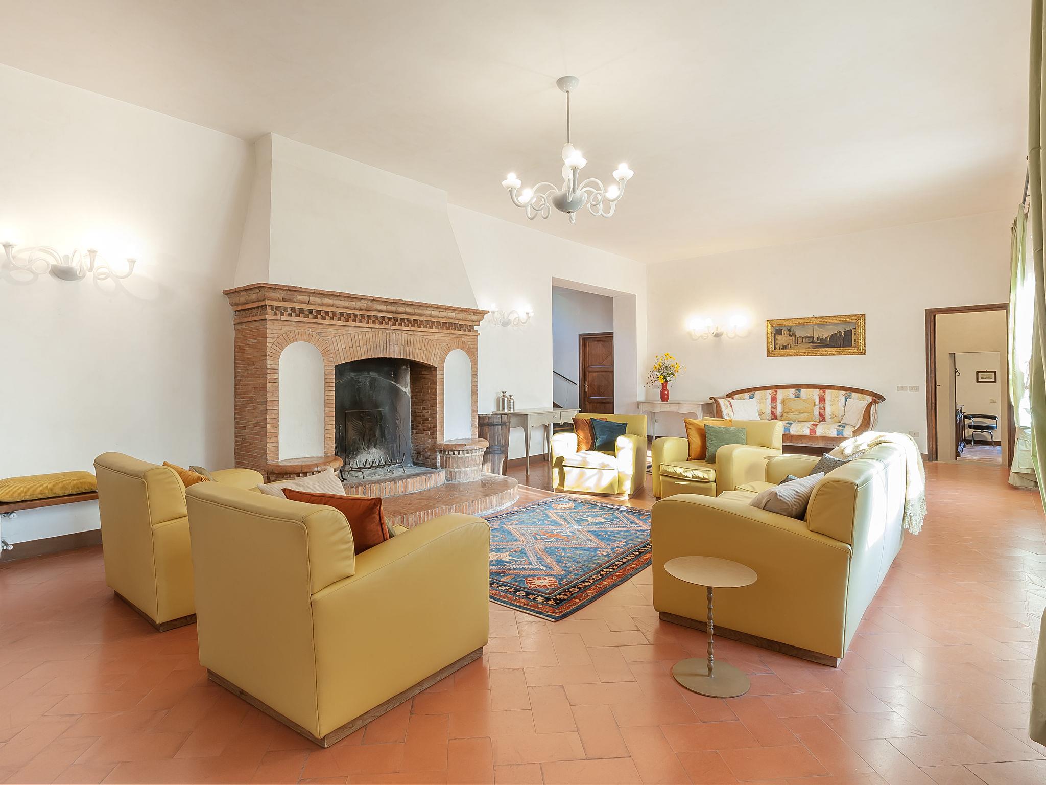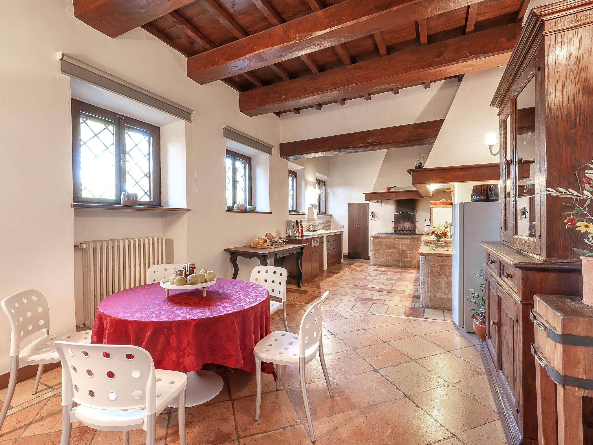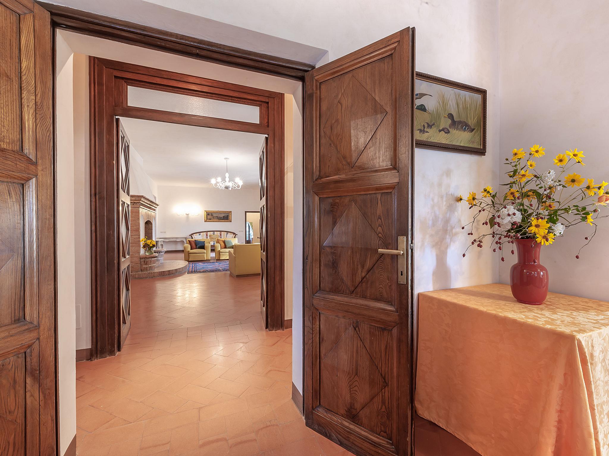 Exclusive 18th century villa immersed in a wonderful park luxurious villa "Angeli", renovated, surrounded by trees. In the hamlet Sant'Enea 10 km from the centre of Perugia, in a quiet, sunny position, 24 km from the lake, in the countryside. Private: property 17 ha (fenced), park, beautiful garden to relax, swimming pool with privacy (6 x 14 m, depth 120 - 140 cm, seasonal availability: 01.May. - 30.Sep.). Unconventional pool shape. Shower/WC in the pool area, outdoor shower, pergola, garden furniture, barbecue house. In the house: WiFi, solarium, washing machine, tumble dryer, heating available only from 15.Oct. - 15.Apr. (extra). Linen change weekly (suppl. charge extra). Room cleaning (extra). Cook on request. Breakfast on request. Pre-arrival grocery service. Motor access (500 m via unmade road). Parking. Grocery 1 km, supermarket 8 km, restaurant 1 km, bathing lake "Trasimeno" 24 km. Golf course (18 hole) 13 km, tennis 10 km, riding stable 10 km. Nearby attractions: Panicale 27 km, Bevagna 30 km, Todi 33 km, Passignano sul Trasimeno 35 km, Assisi 35 km, Città Della Pieve 37 km. Groups of teenagers on request only. Suitable for events. The Villa has its own chapel, covered barbecue area equipped with wood-burning brazier, pizza oven, gas hob, sink and refrigerator.