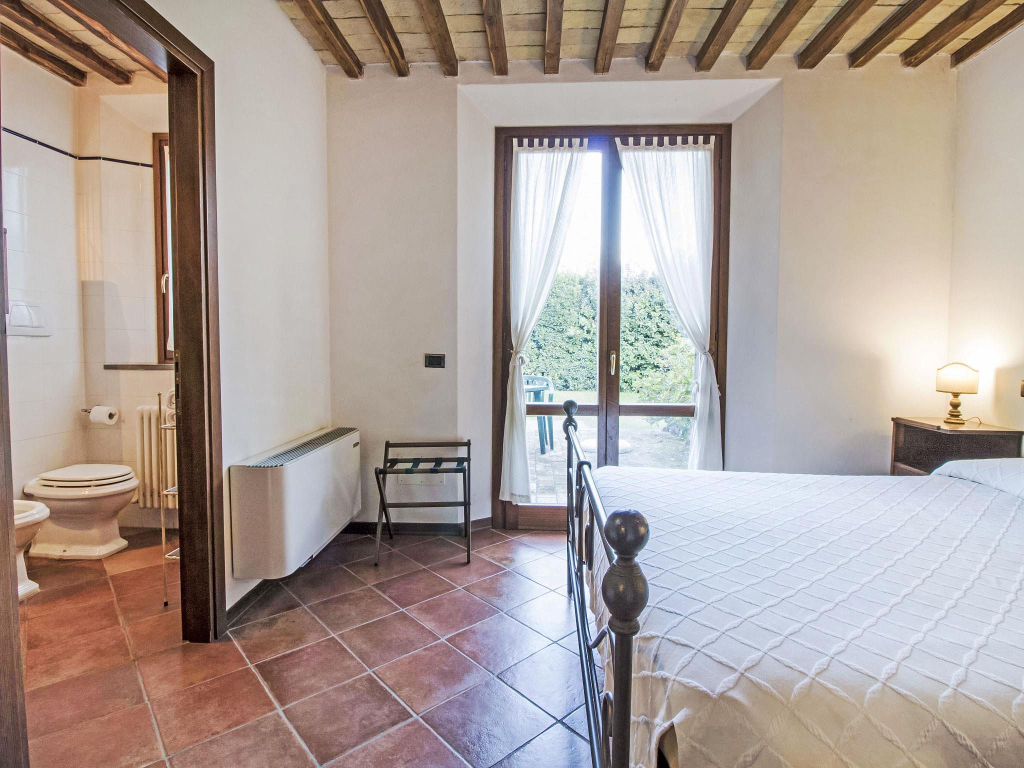 Country house "Montecorneo", surrounded by trees. 14 apartments in the property. 5 km from the centre of Perugia. For shared use: park 500 m2, swimming pool with privacy (15 x 7 m, seasonal availability: 15.May. - 30.Sep.). Outdoor shower, children's playground. In the house: reception, breakfast room, WiFi, sauna, fitness room, table tennis, table football, washing machine (for shared use, extra), heating available only from 15.Oct. - 15.Apr. (extra). Parking on the premises. Grocery 1 km, supermarket 2 km, restaurant 200 m, railway station "Perugia Ponte San Giovanni" 3 km. Tennis 3 km, riding stable 5 km. Nearby attractions: Assisi 20 km, San Feliciano 30 km, Panicale 35 km, Todi 35 km, Città Della Pieve 42 km, Cortona 53 km. Well-known lakes can easily be reached: Trasimeno 30 km.