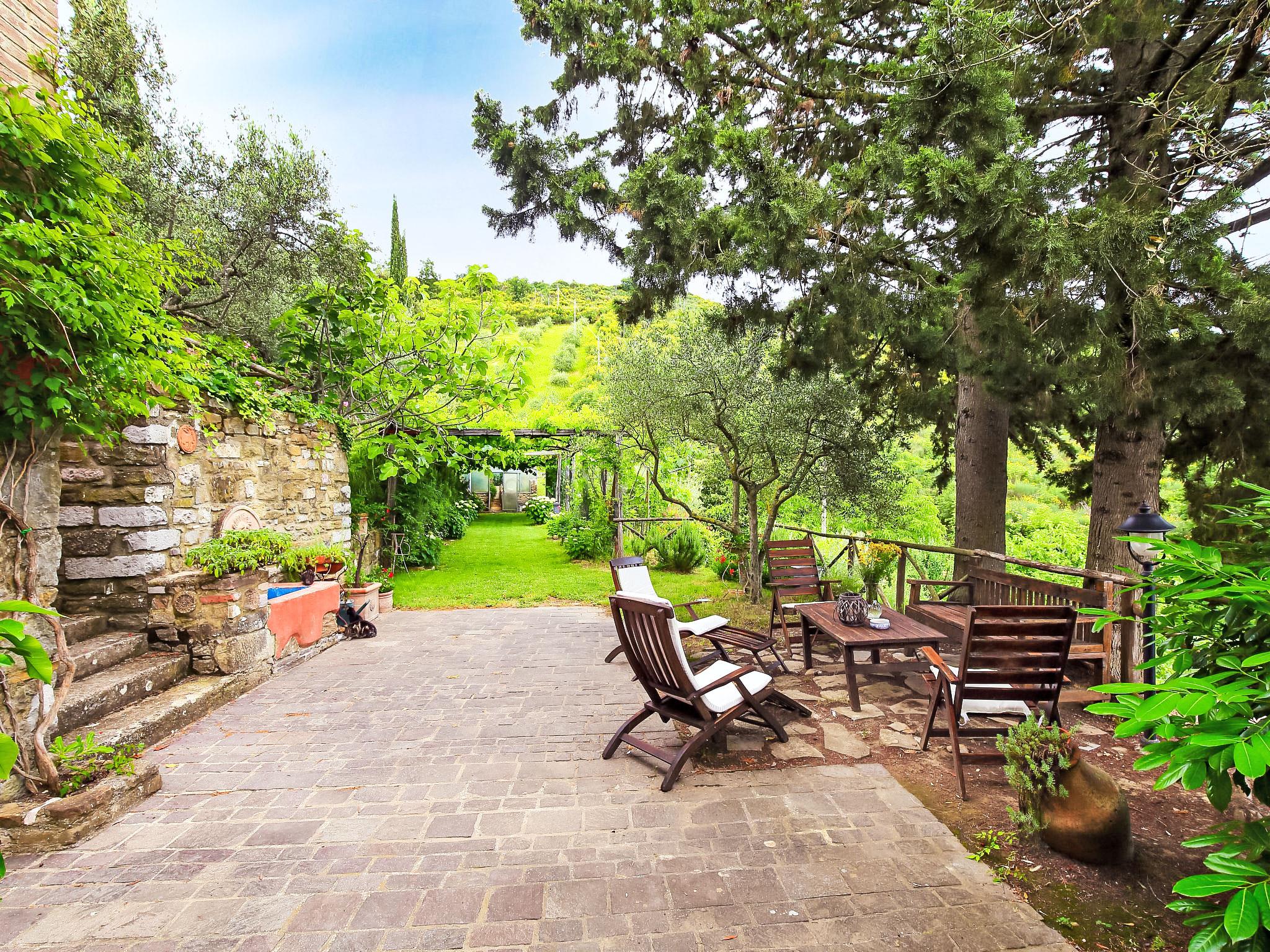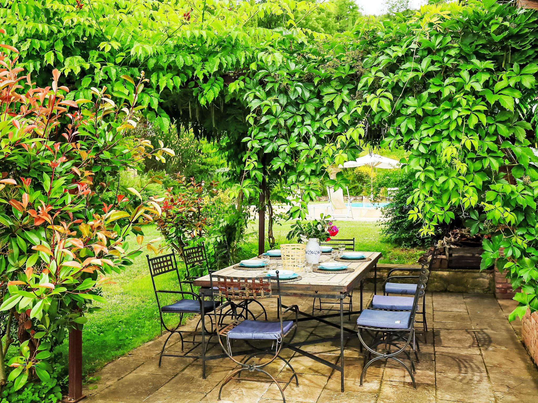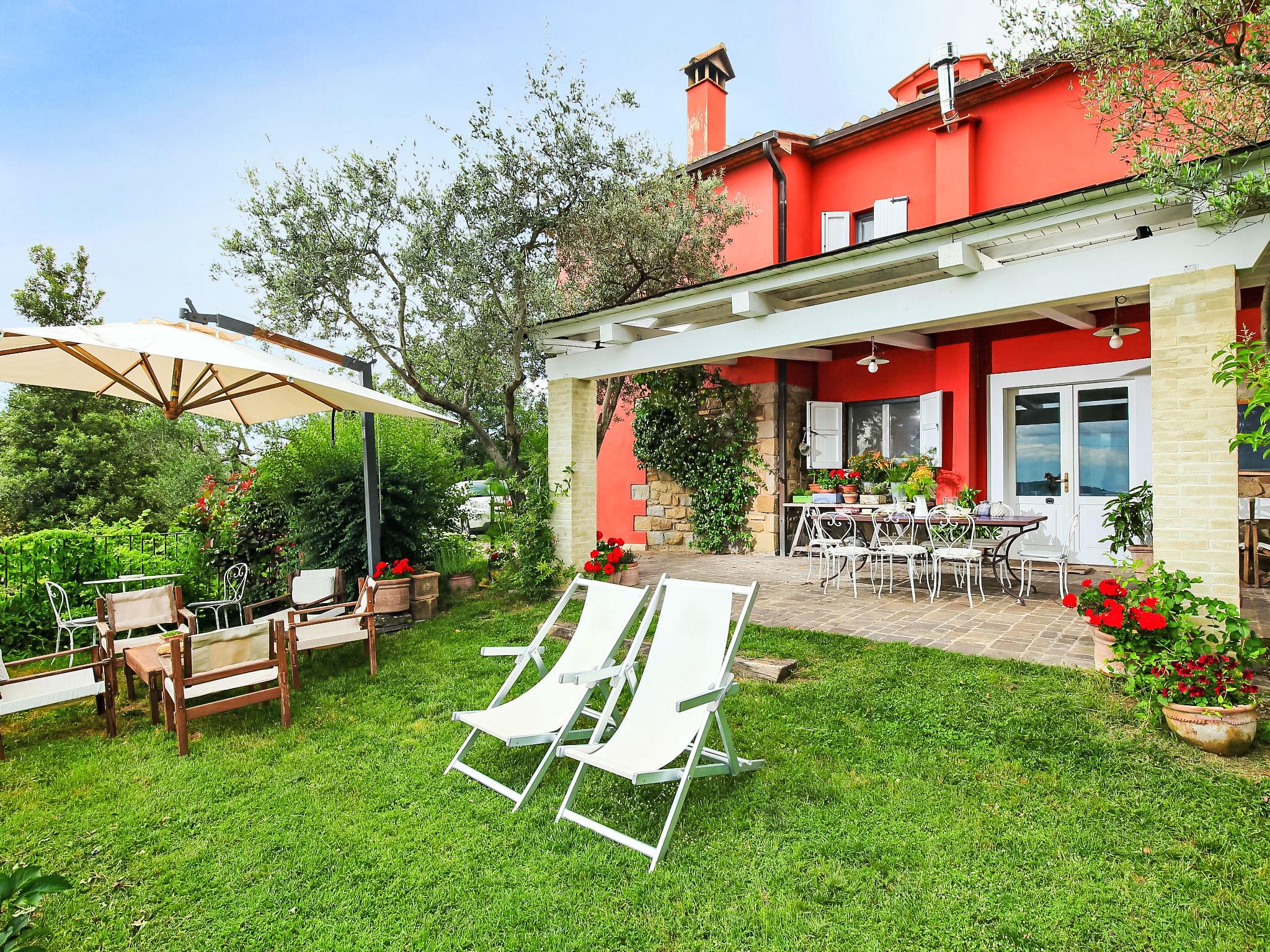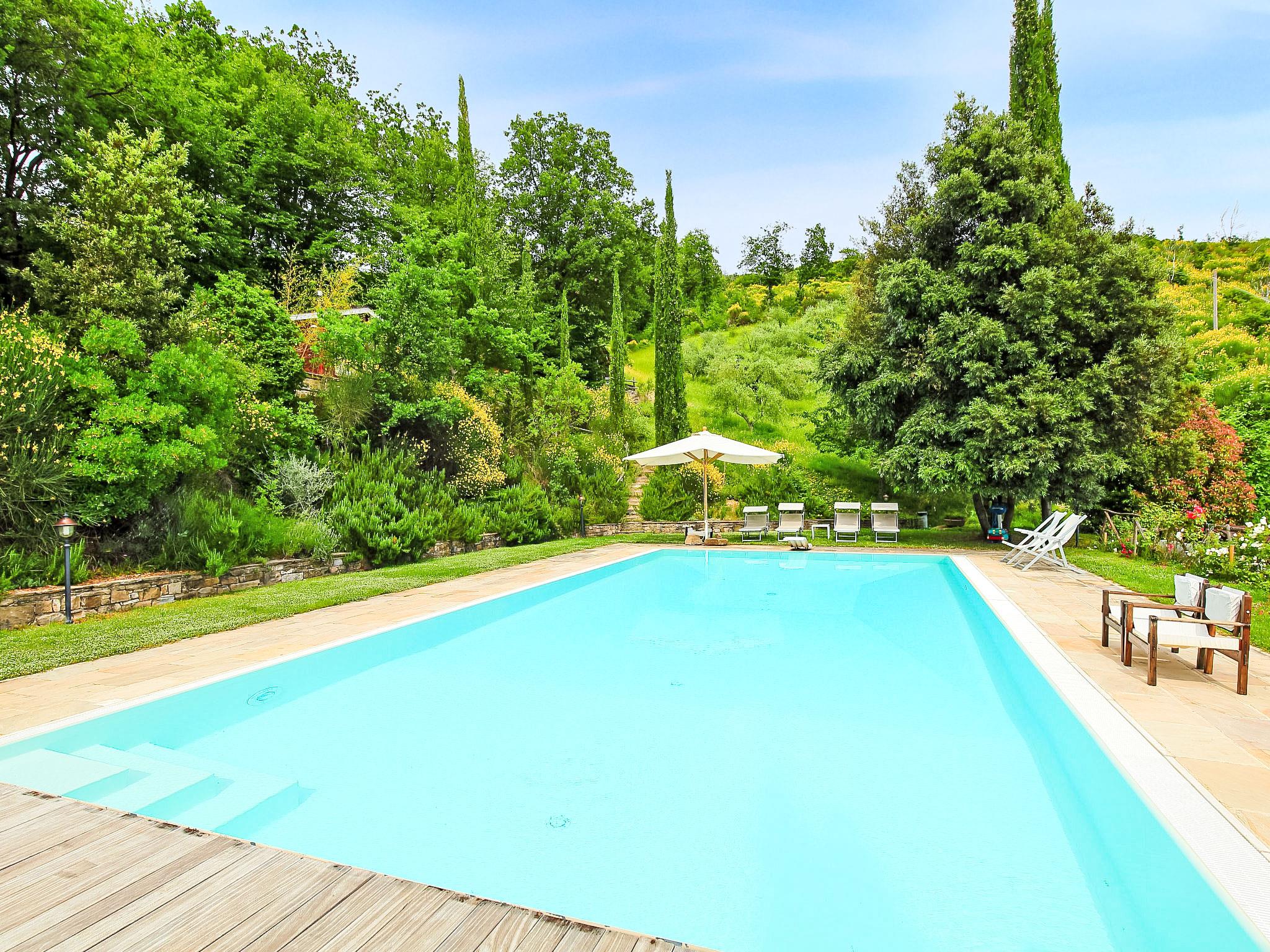 Situated at the top of a beautiful hill in the heart of Umbria, well connected to the main service centers, this house has an incomparable view of the valley. Ideal for relaxing holiday and with beautiful nature, without lacking of any kind of comfort. Villa " Paradiso", 330 m a.s.l., detached, surrounded by trees, meadows and fields. Property composed of main house and outbuilding 24 km from the centre of Perugia, in a secluded, sunny, elevated position, 36 km from the lake. Private: property 3 ha, wildlife garden and flowers, beautiful garden to relax, swimming pool (6 x 14 m, depth 120 - 250 cm, seasonal availability: 01.May. - 30.Sep.). Outdoor shower, garden furniture, barbecue, pool maintenance by the owner/gardener. In the house: WiFi. Parking at the house. E-charging station. Grocery 5 km, restaurant 5 km, bar 4 km, thermal baths "Terme Francescane" 40 km, bathing lake "Trasimeno" 36 km. Golf course (18 hole) 12 km, riding stable 7 km. Nearby attractions: Gubbio 35 km, Città di Castello 40 km, Assisi 40 km, Passignao sul Trasimeno 40 km, Arezzo 75 km. Please note: car recommended. Groups of teenagers on request only. Inside the park under the pergola there is a barbecue area with a refrigerator, wood oven, oven, gas stove and a large dining table. According to the season it is possible to taste the vegetable garden products.